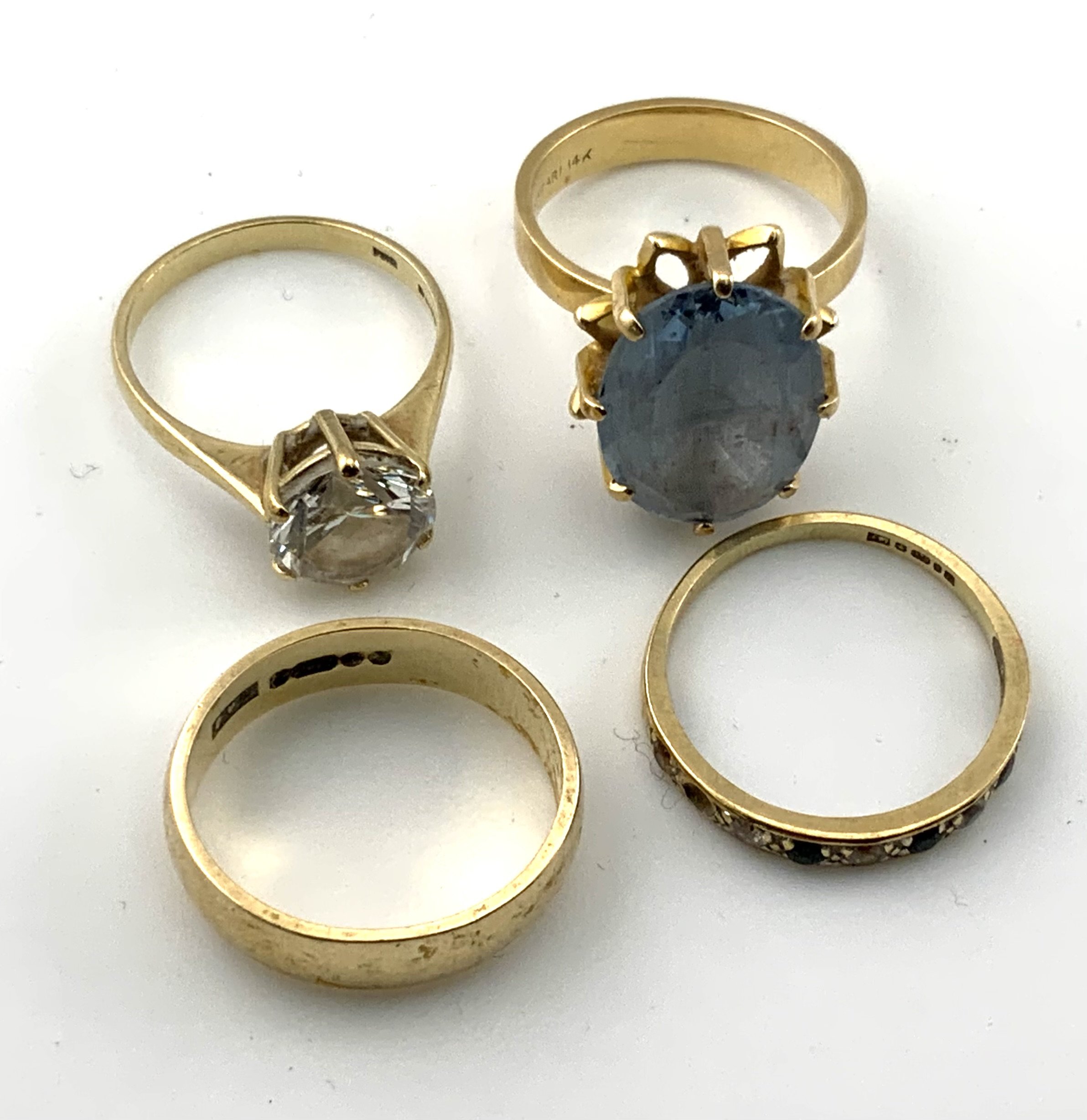 4 gold and stone set rings. 15.37g (A)Condition Report