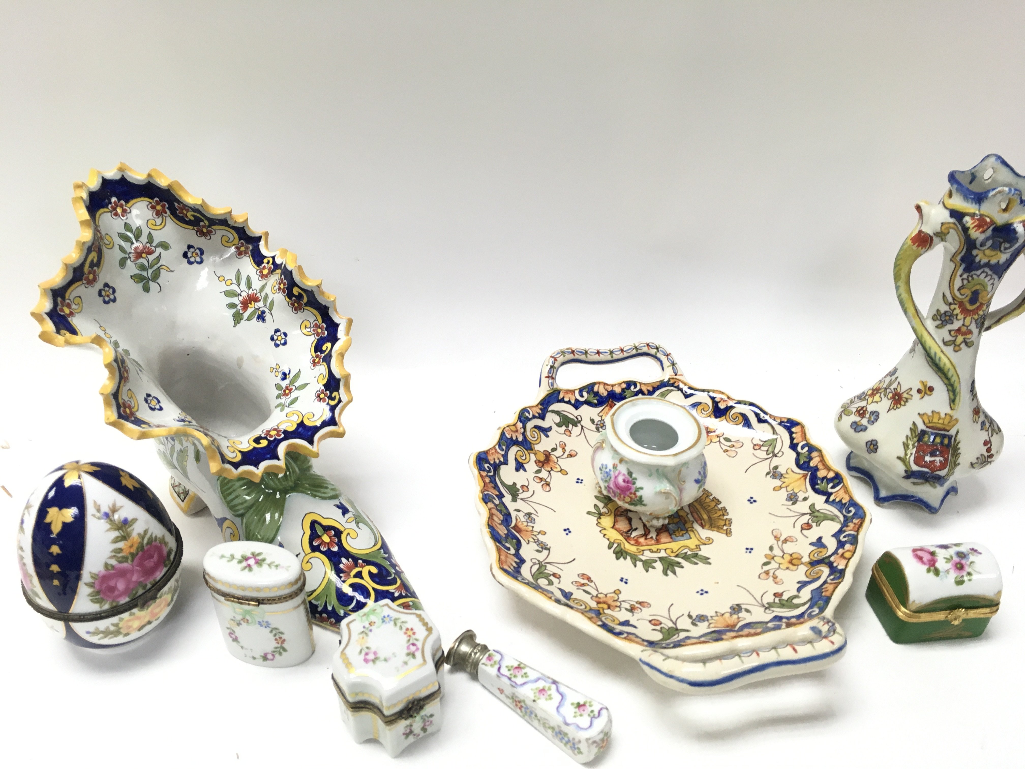 French faience rouen Desves and hand painted Limoges items. This lot cannot be posted