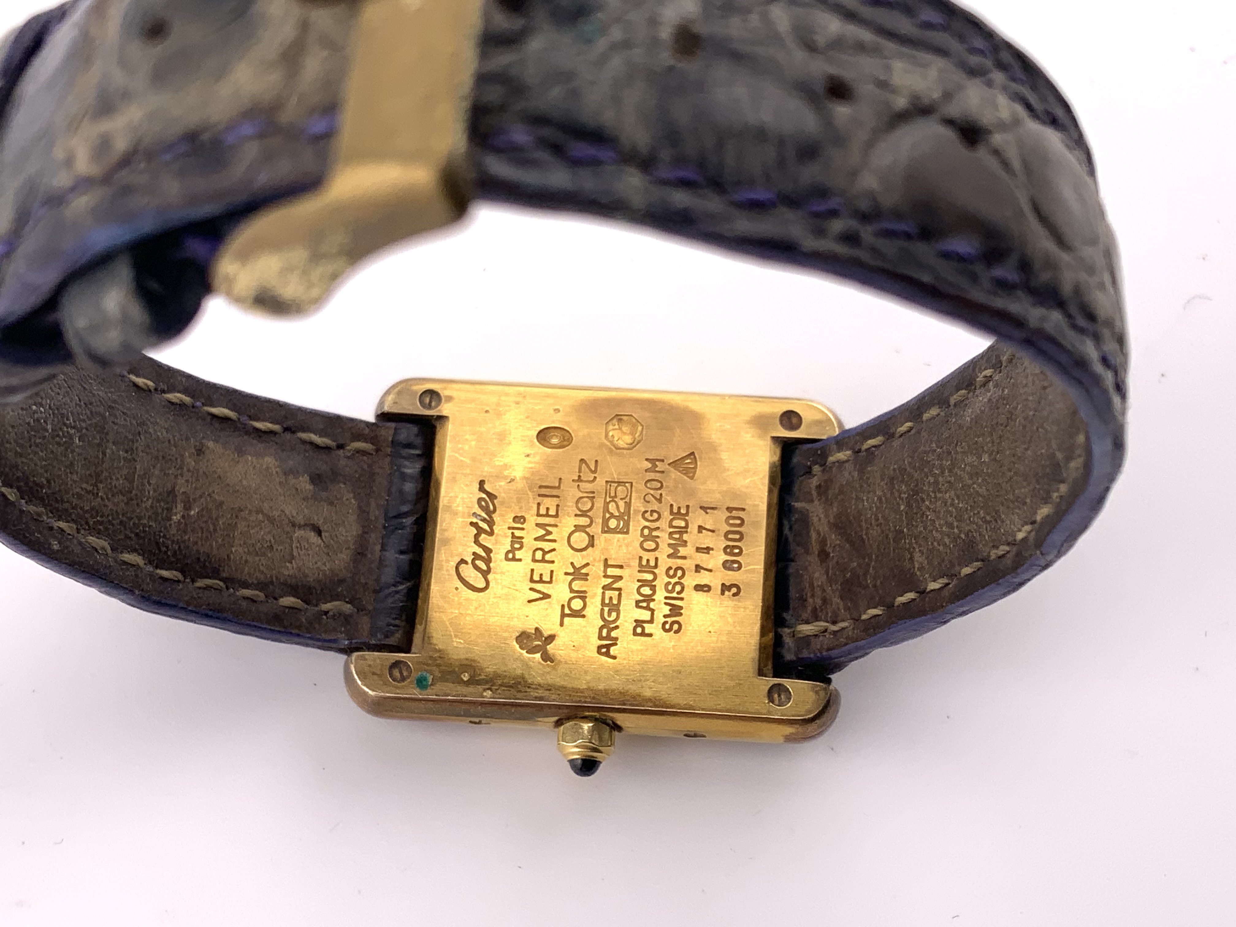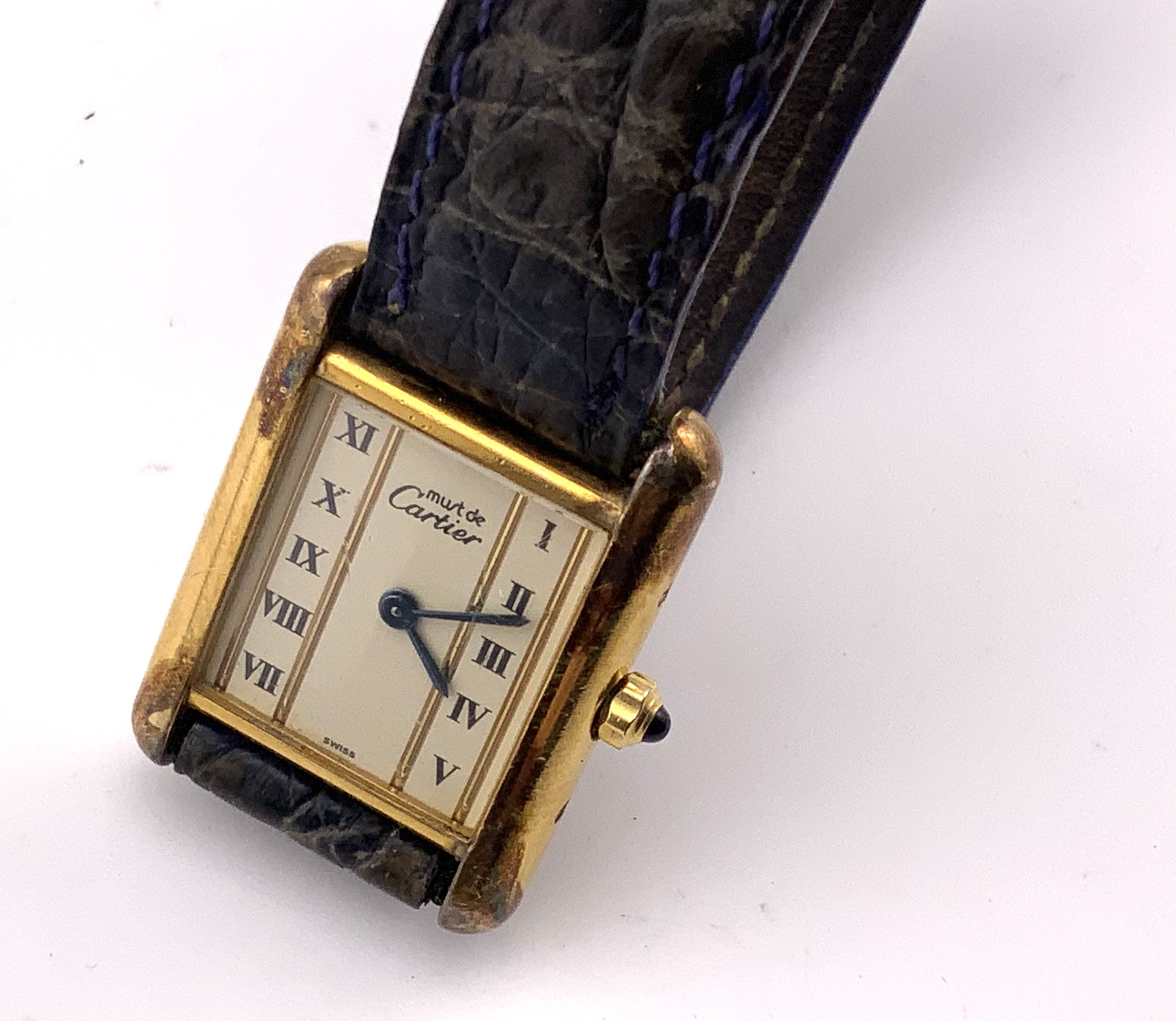 A vintage Ladies Must De Cartier Vermeil silver tank Quartz wrist watch, model 87471. Quartz. Not seen working, obvious signs of wear. (A)
