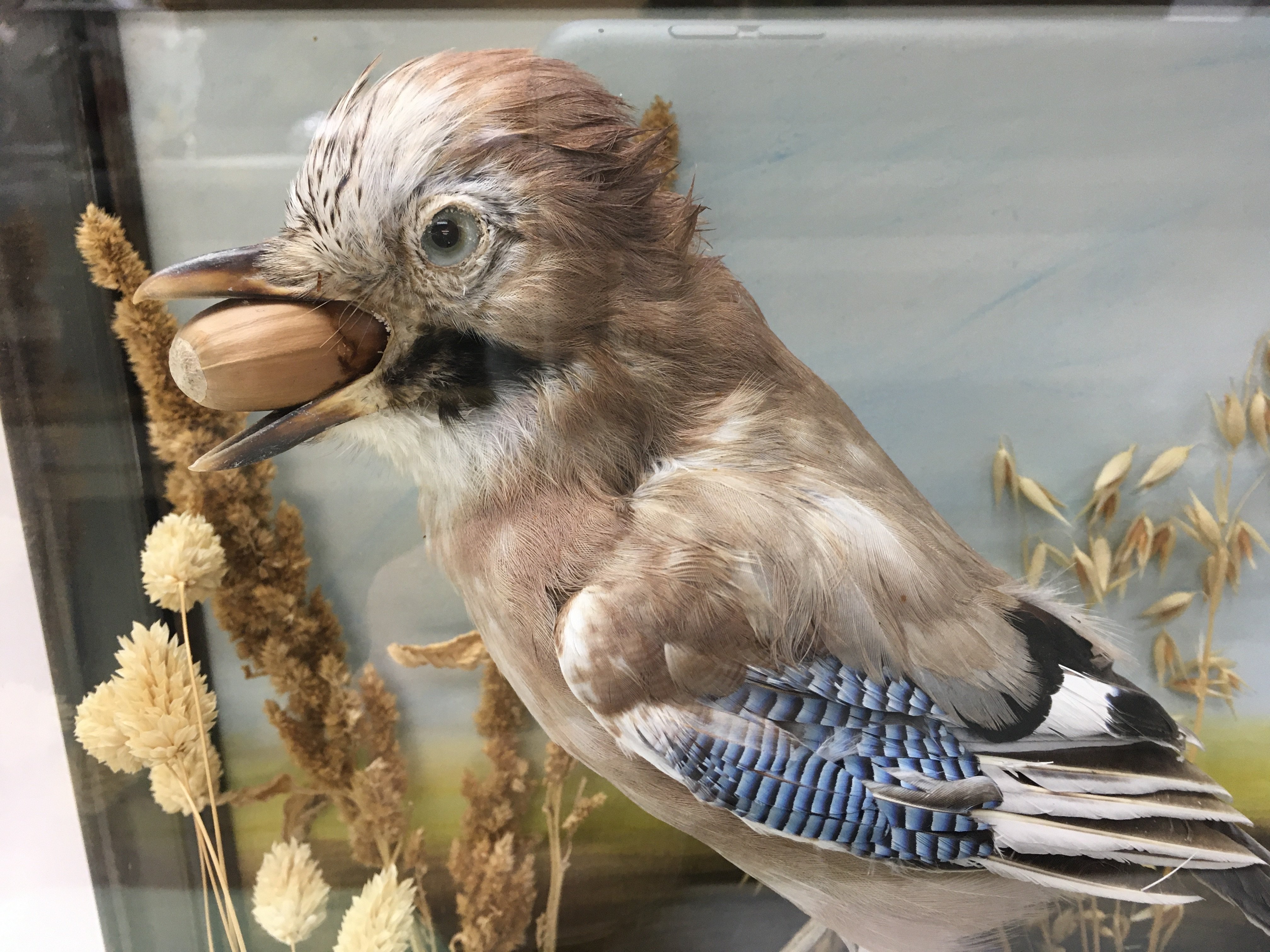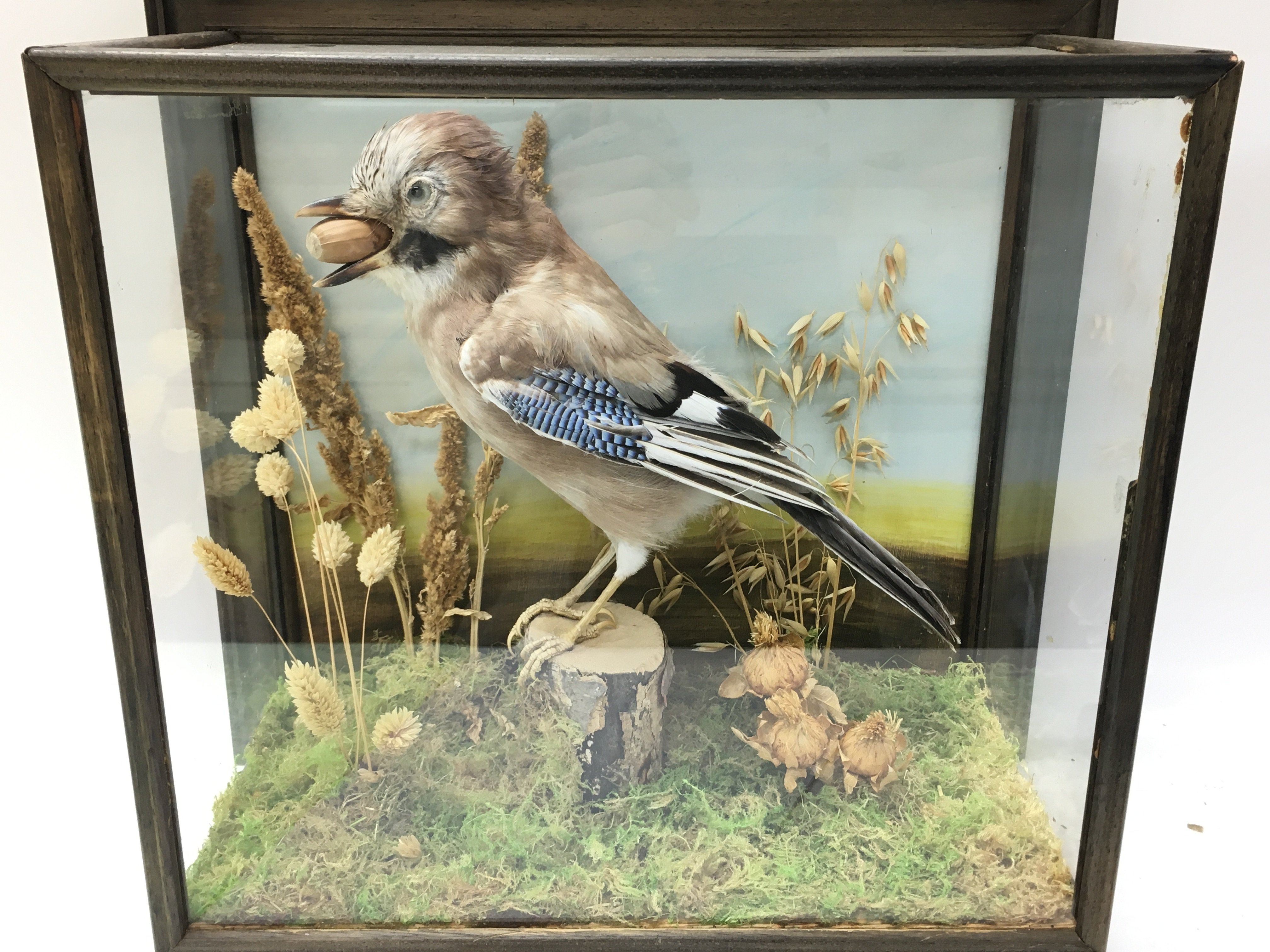 A cased taxidermy Jay in a naturalist setting 20x35x36cm. This lot cannot be posted