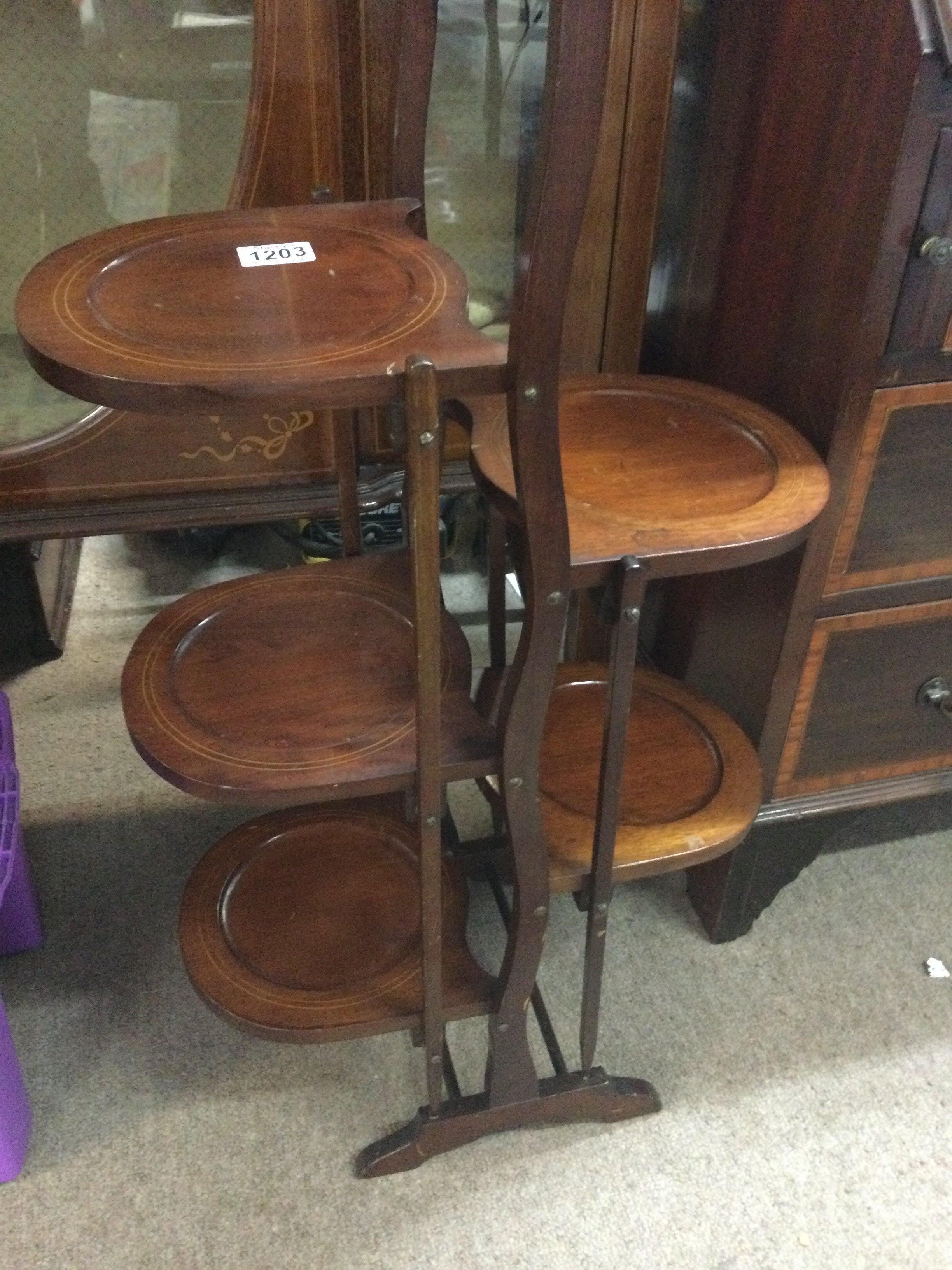 A Edwardian mahogany cake stand with five tiers .