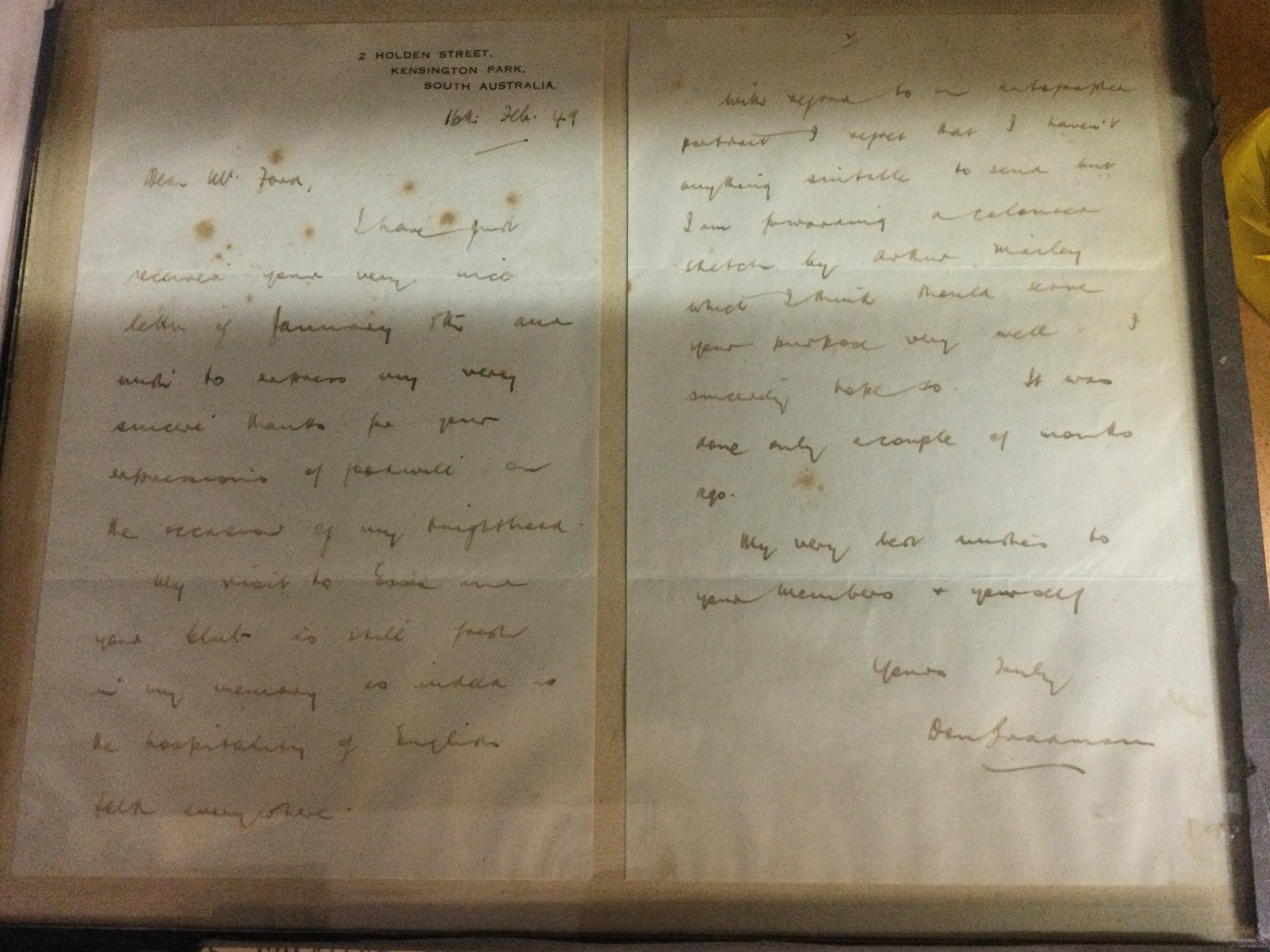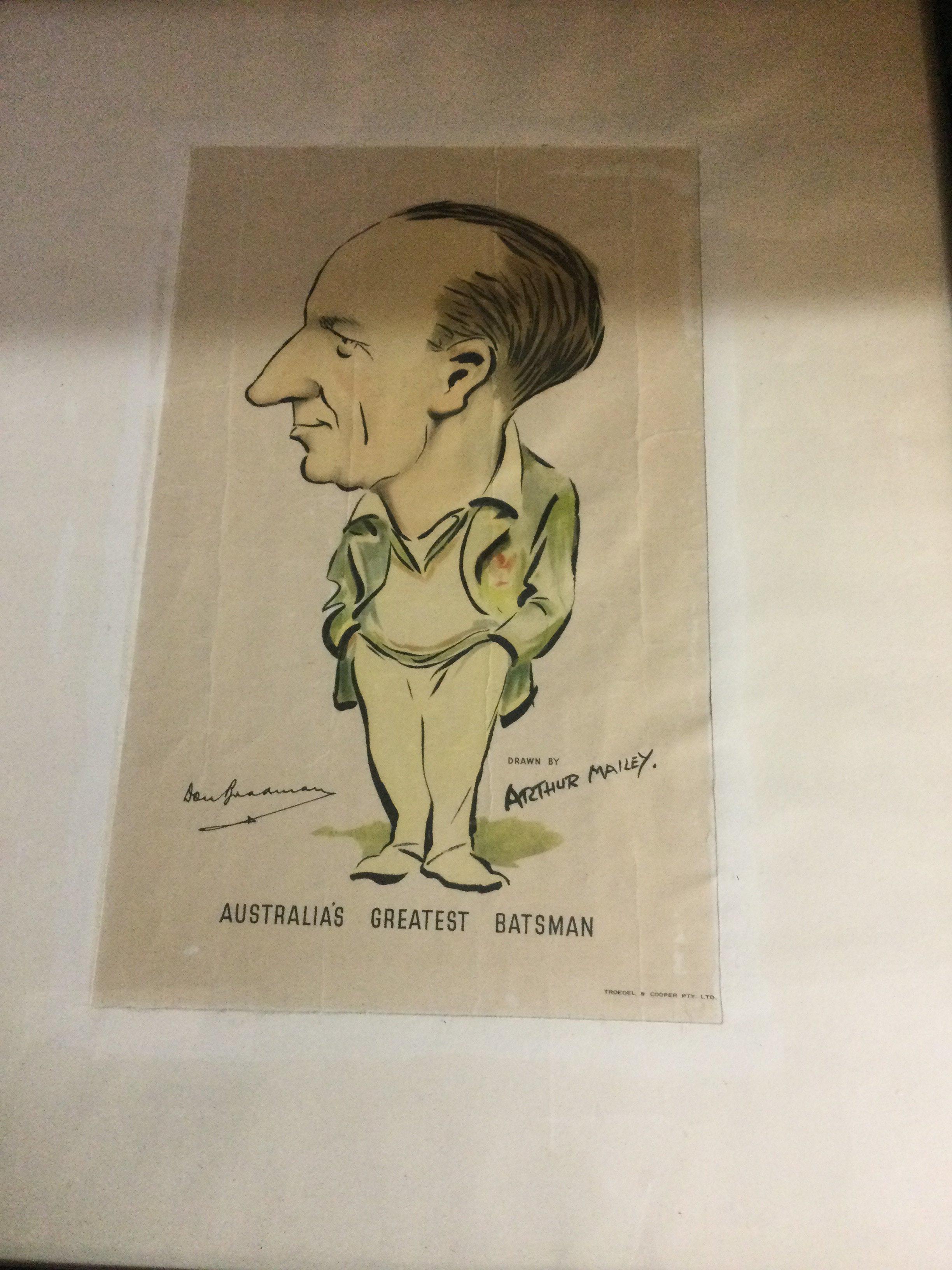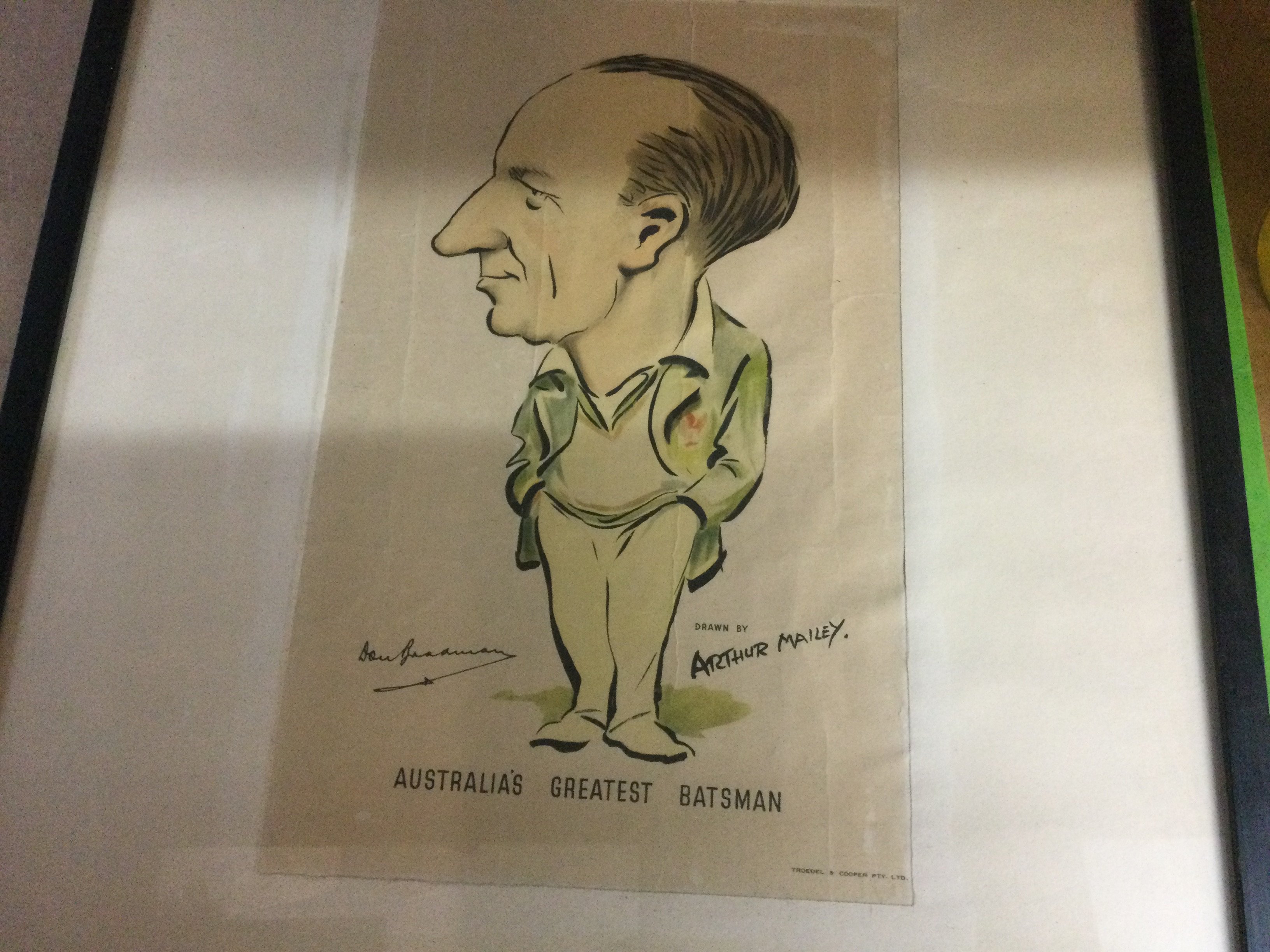 A framed letter signed by Don Bradman , together with score card And spy print .