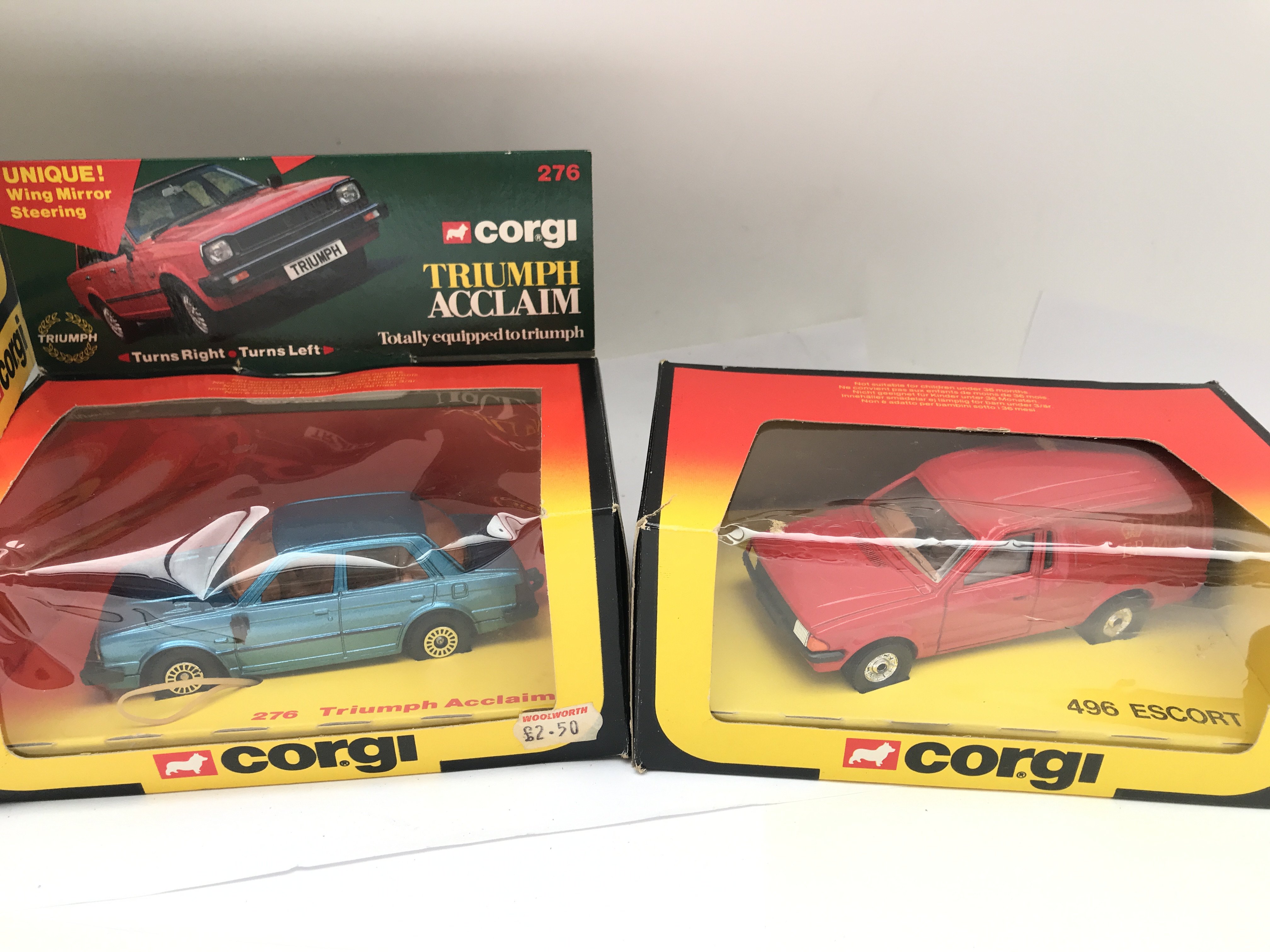 4 X Boxed Corgi Diecast Vehicles. A Ford Escort #498. A Triumph Acclaim #276 and a Escort #496.