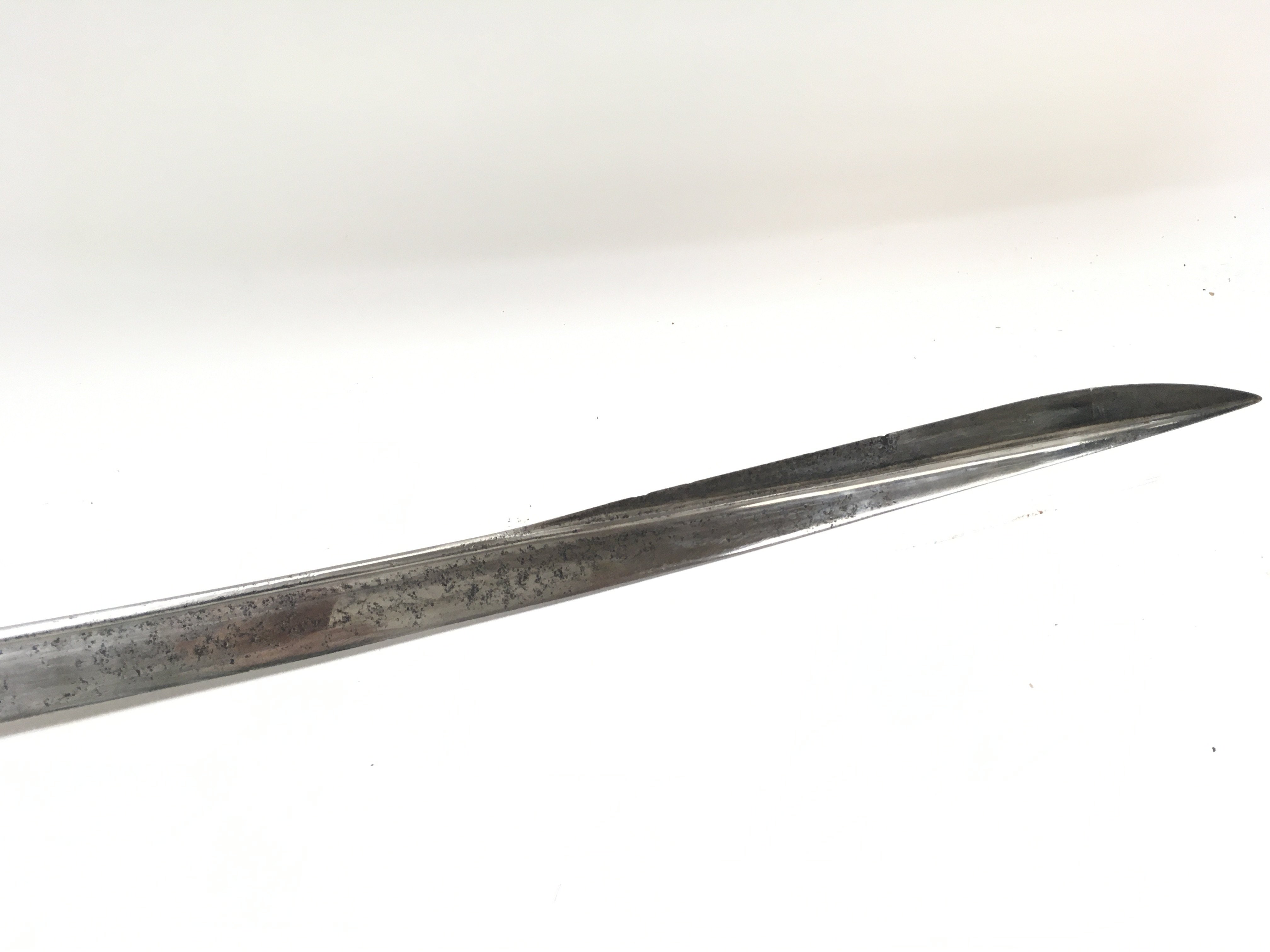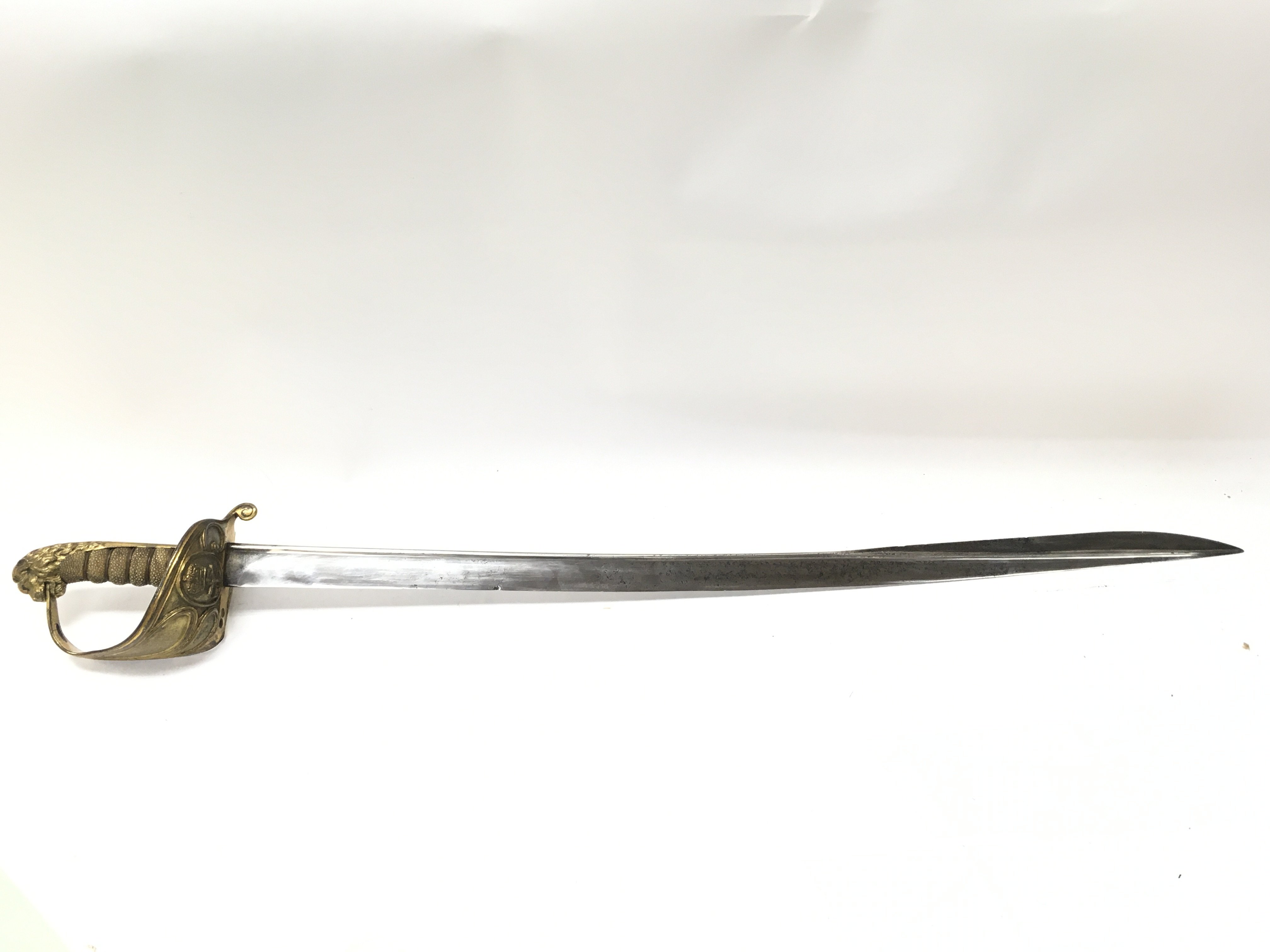 A naval officers dress sword with shagreen grip, brass hilt, lion heads pommel and a double fullered blade. 95cm long in total, blade length 80cm. This lot cannot be posted