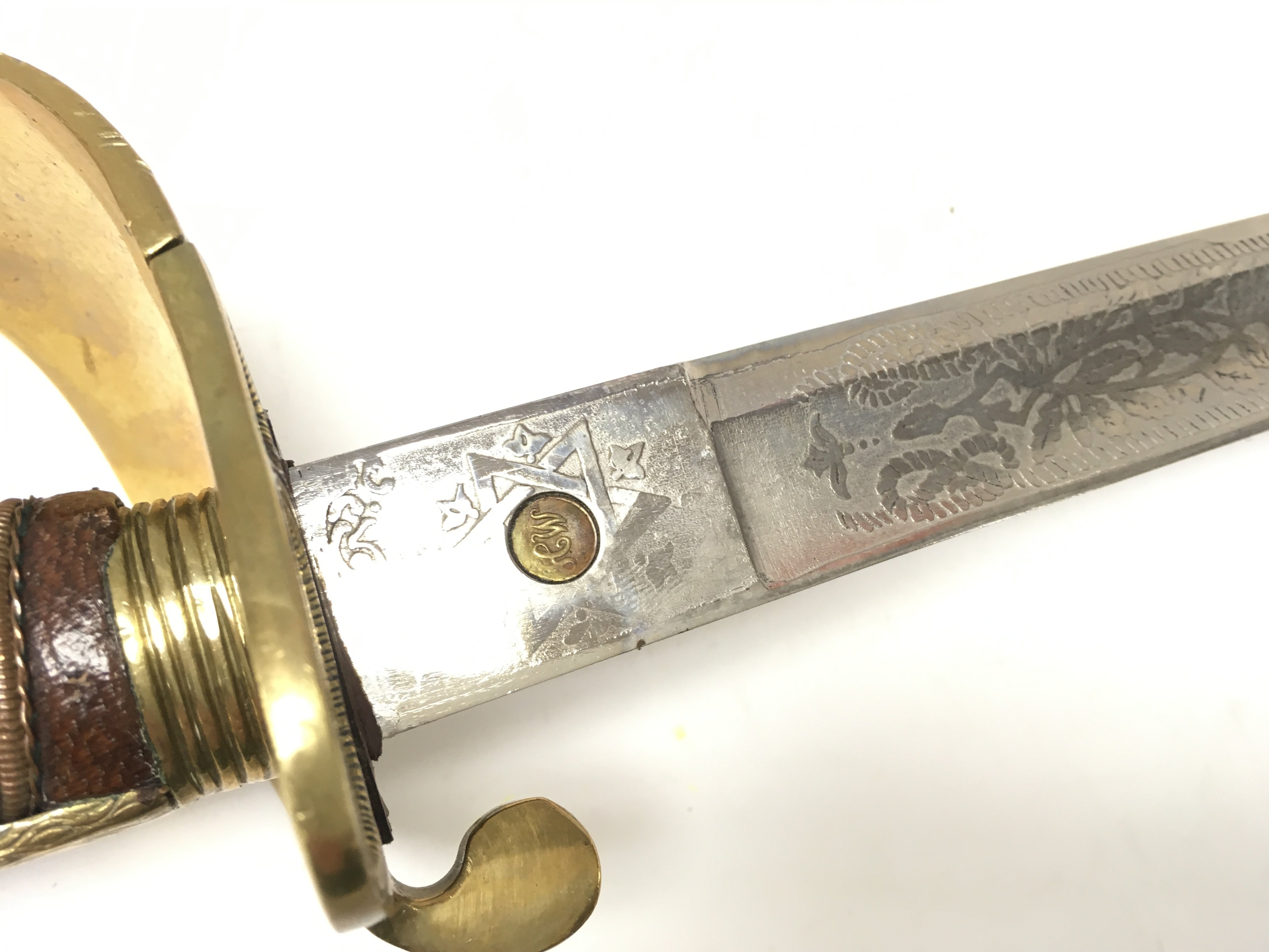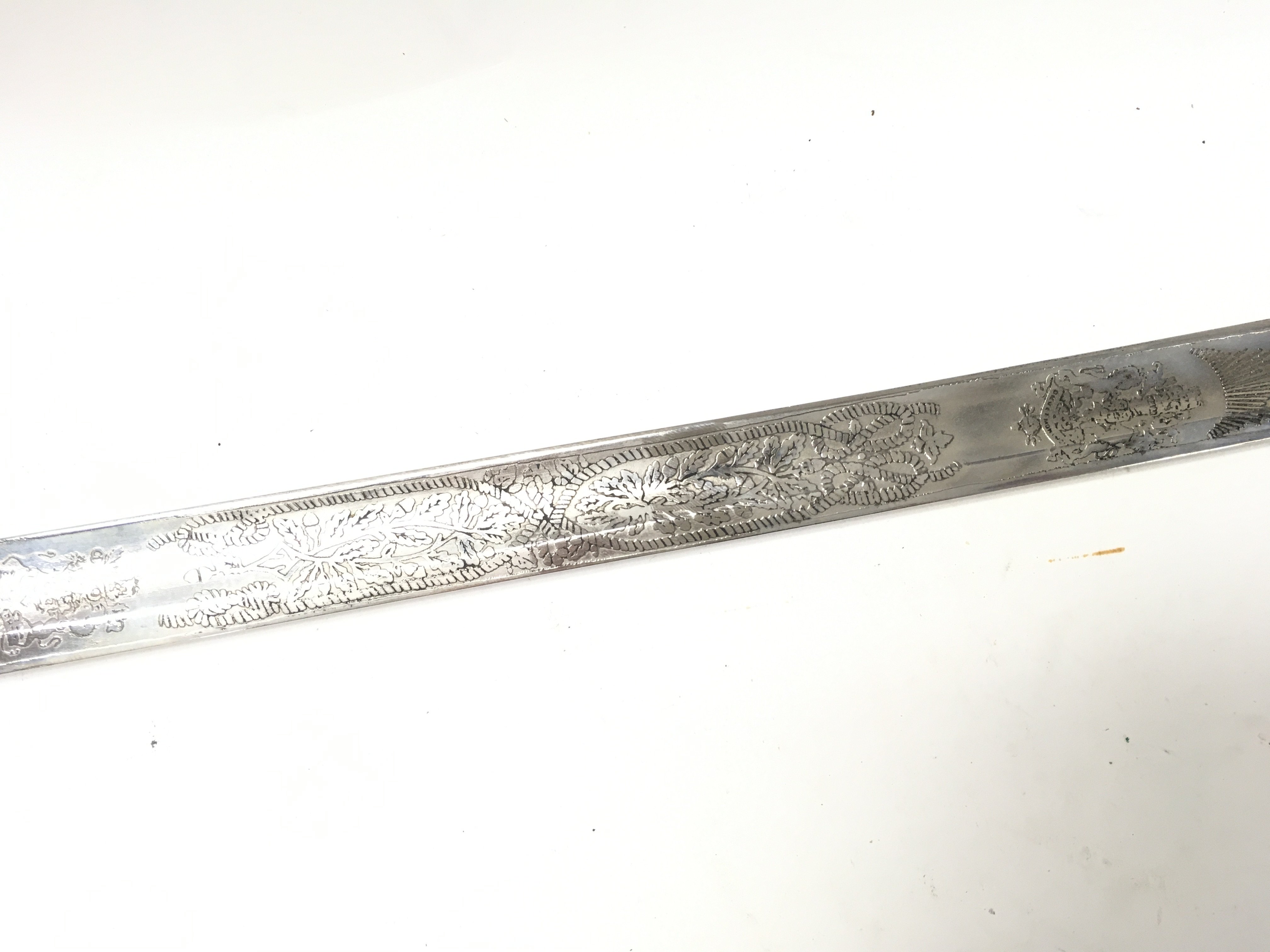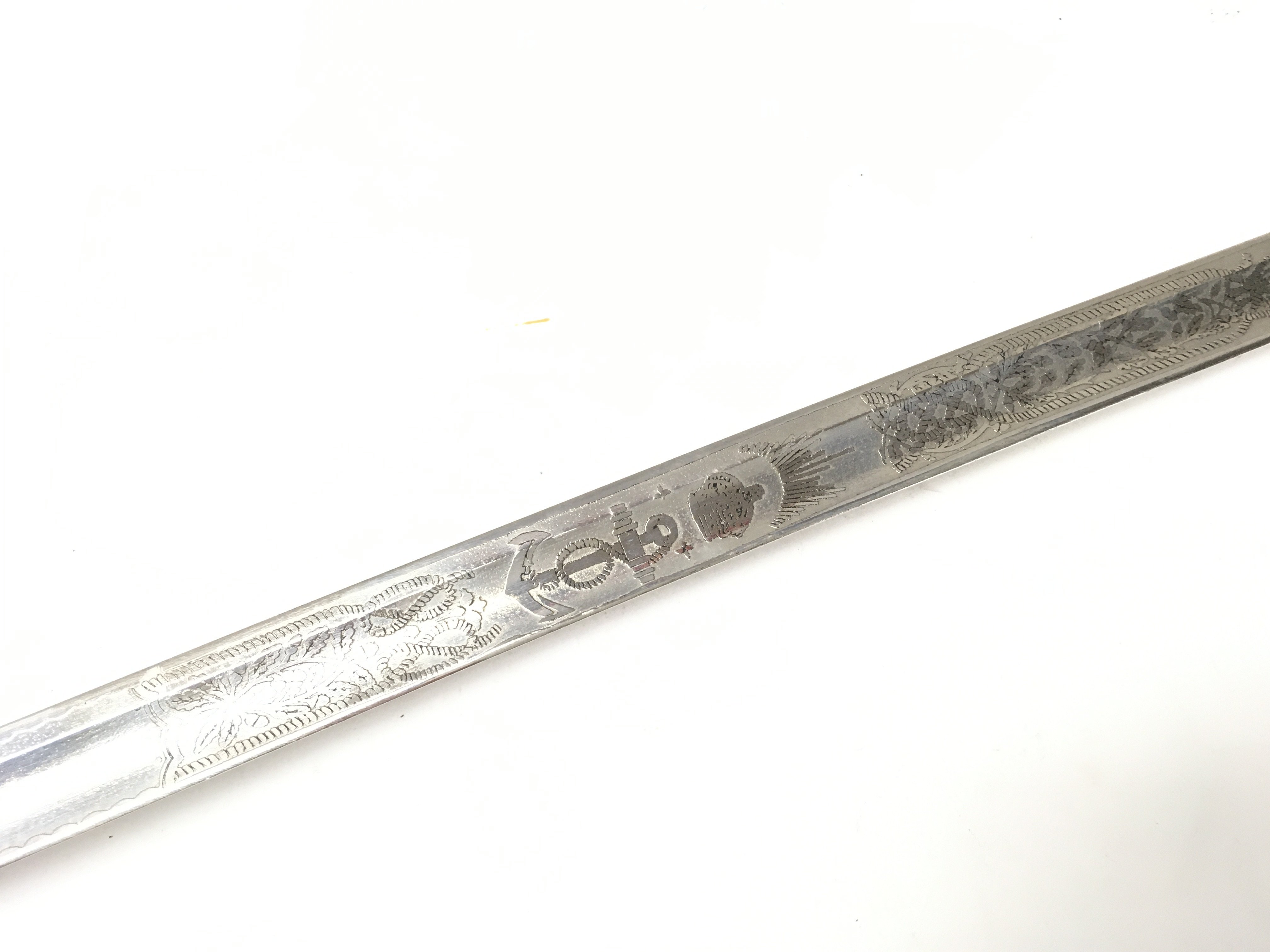 A 20th century naval officers sword with a brown leather grip. Blade 80cm long. 95cm long in total. This lot cannot be posted