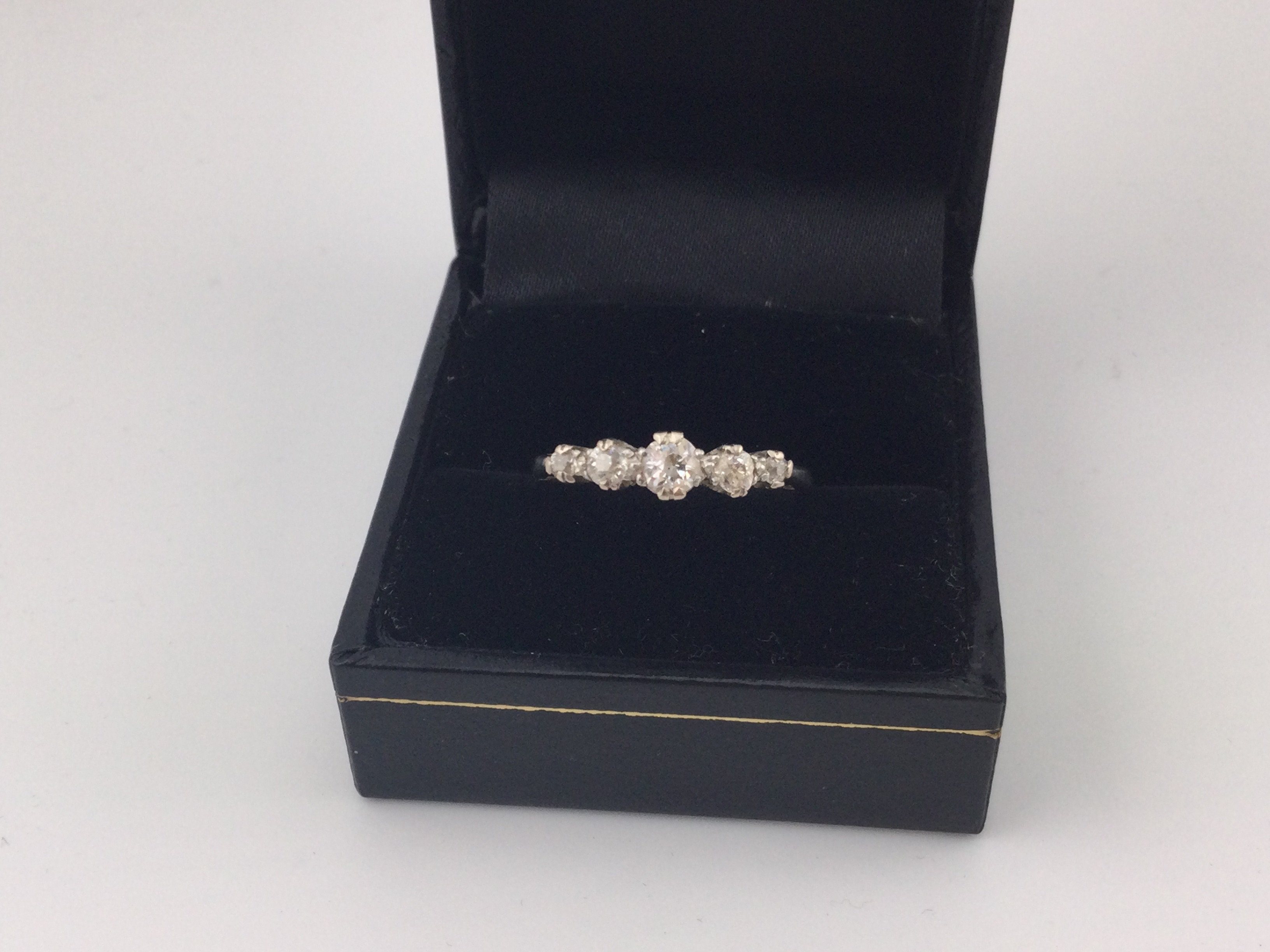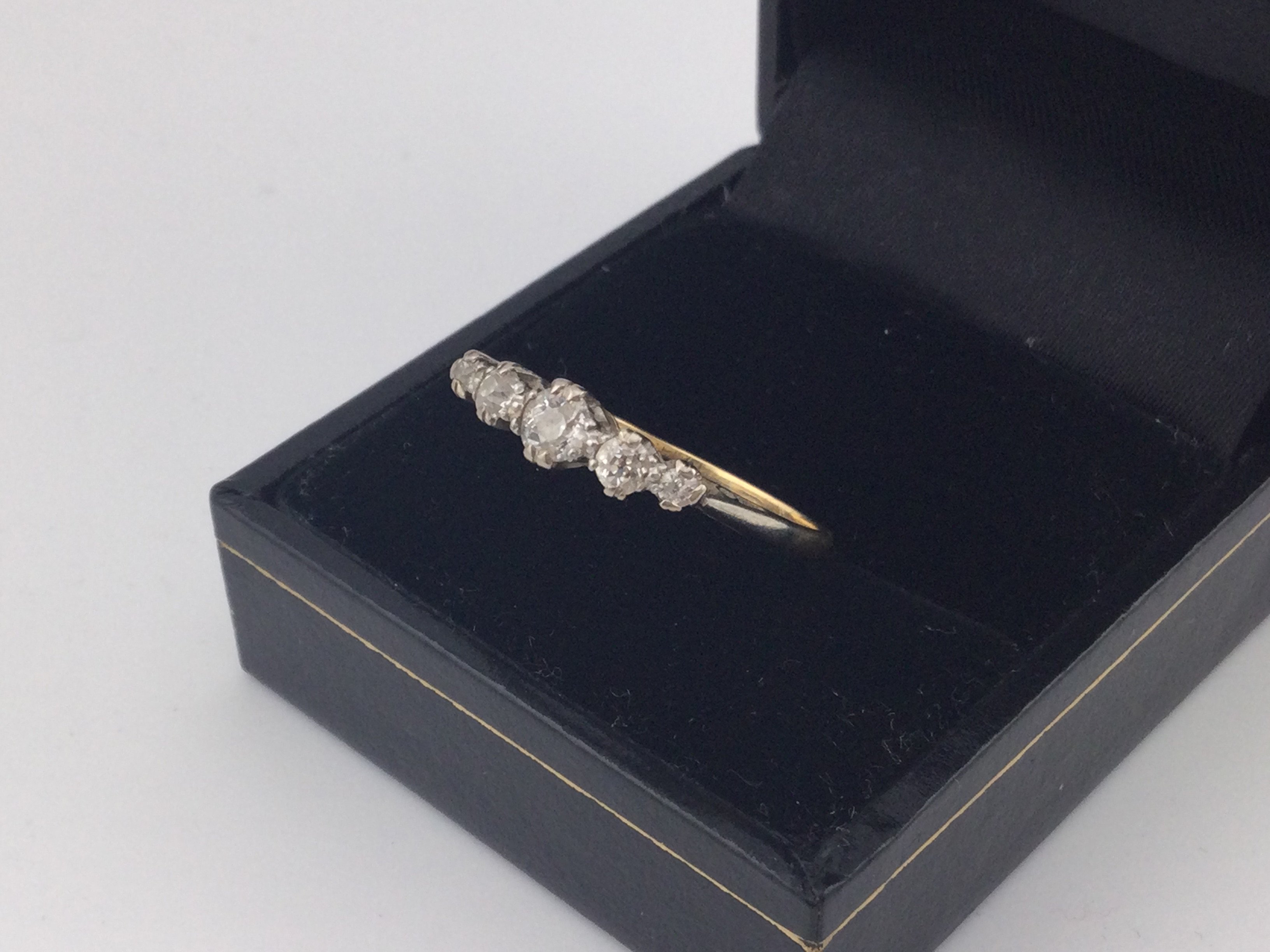 An 18ct five stone diamond set ring. Approx 2.2 grams, size P.