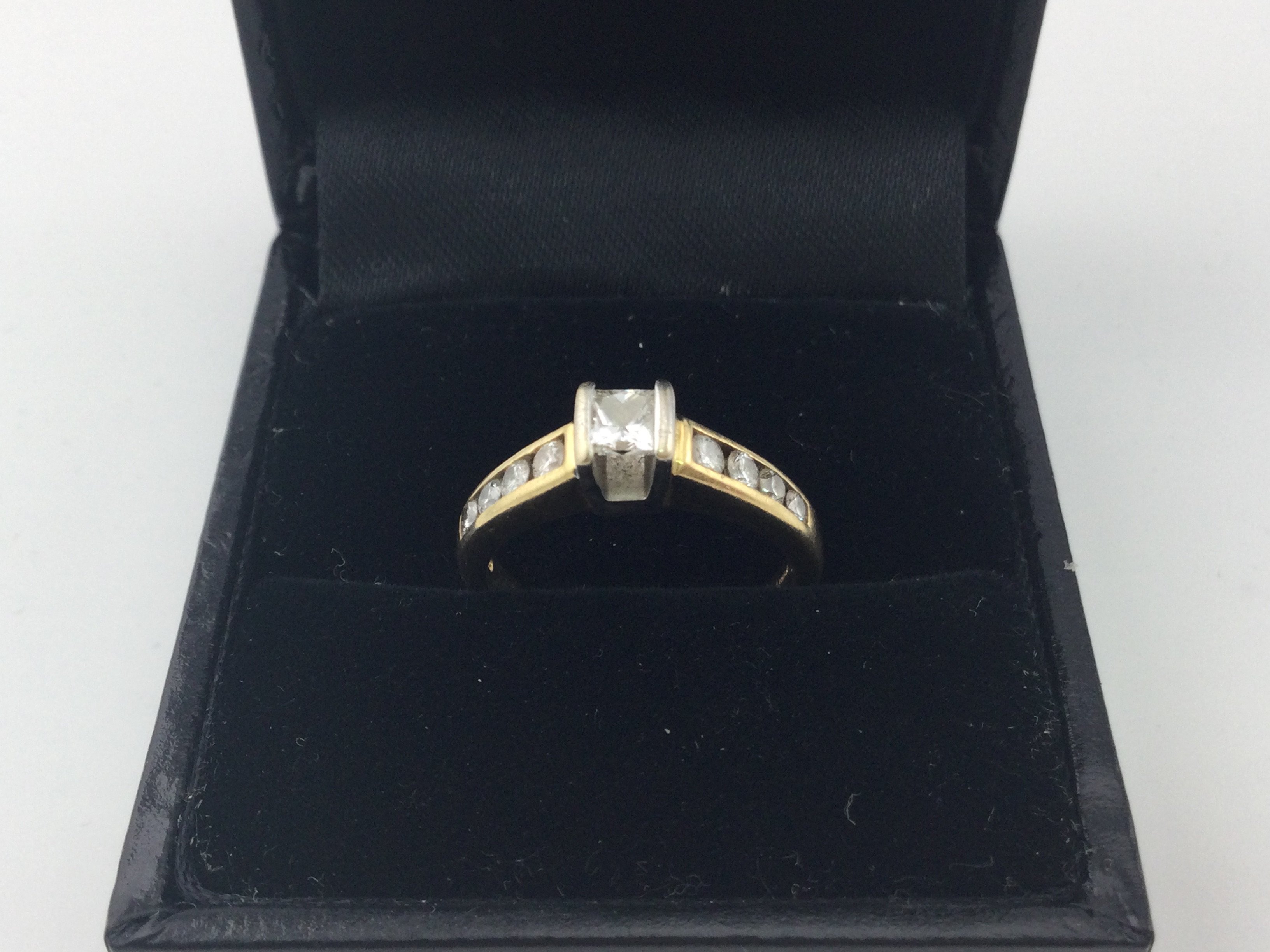 An 18ct gold princess cut diamond ring. Approx weight 3.7 grams, approx size I.