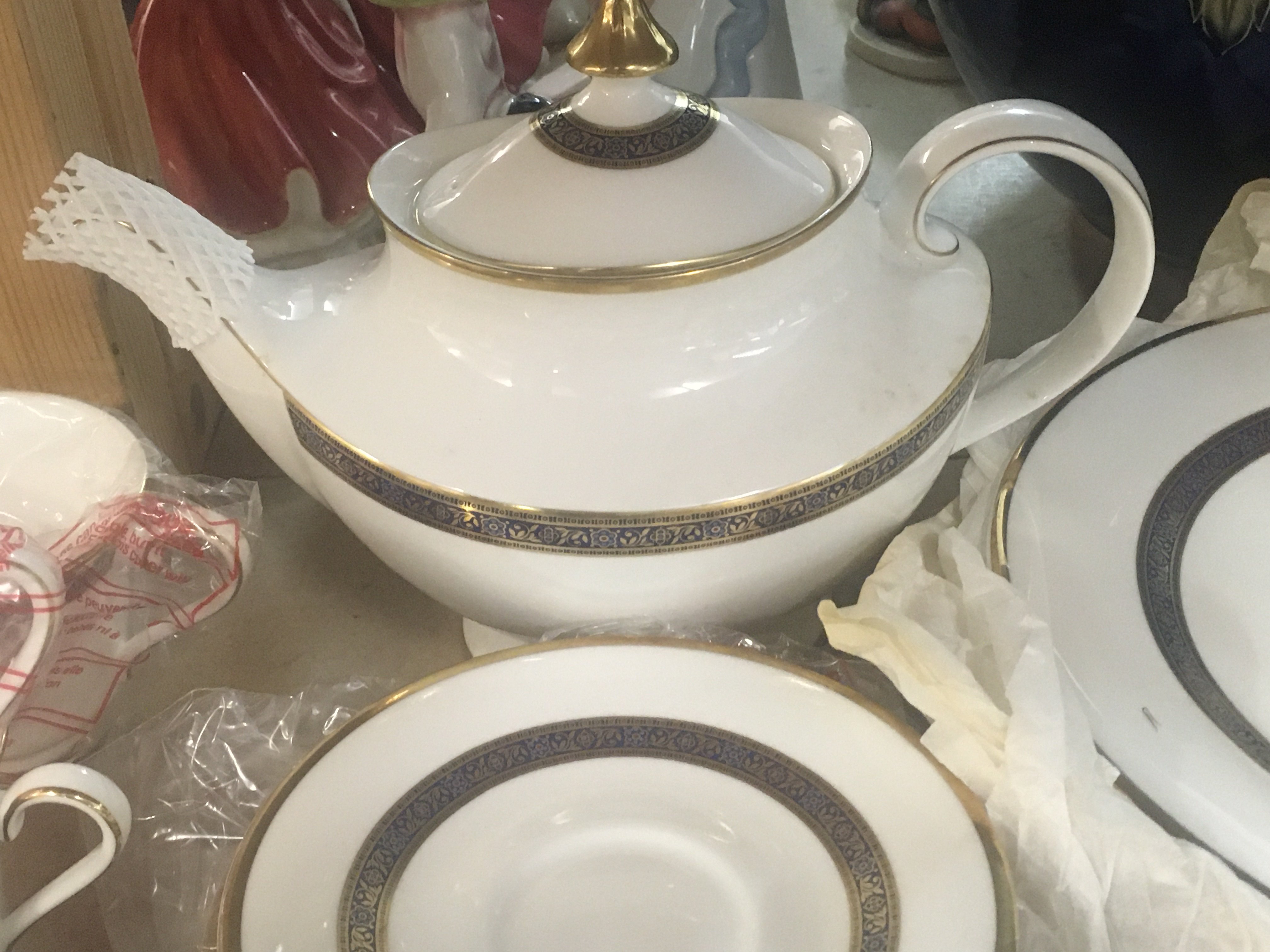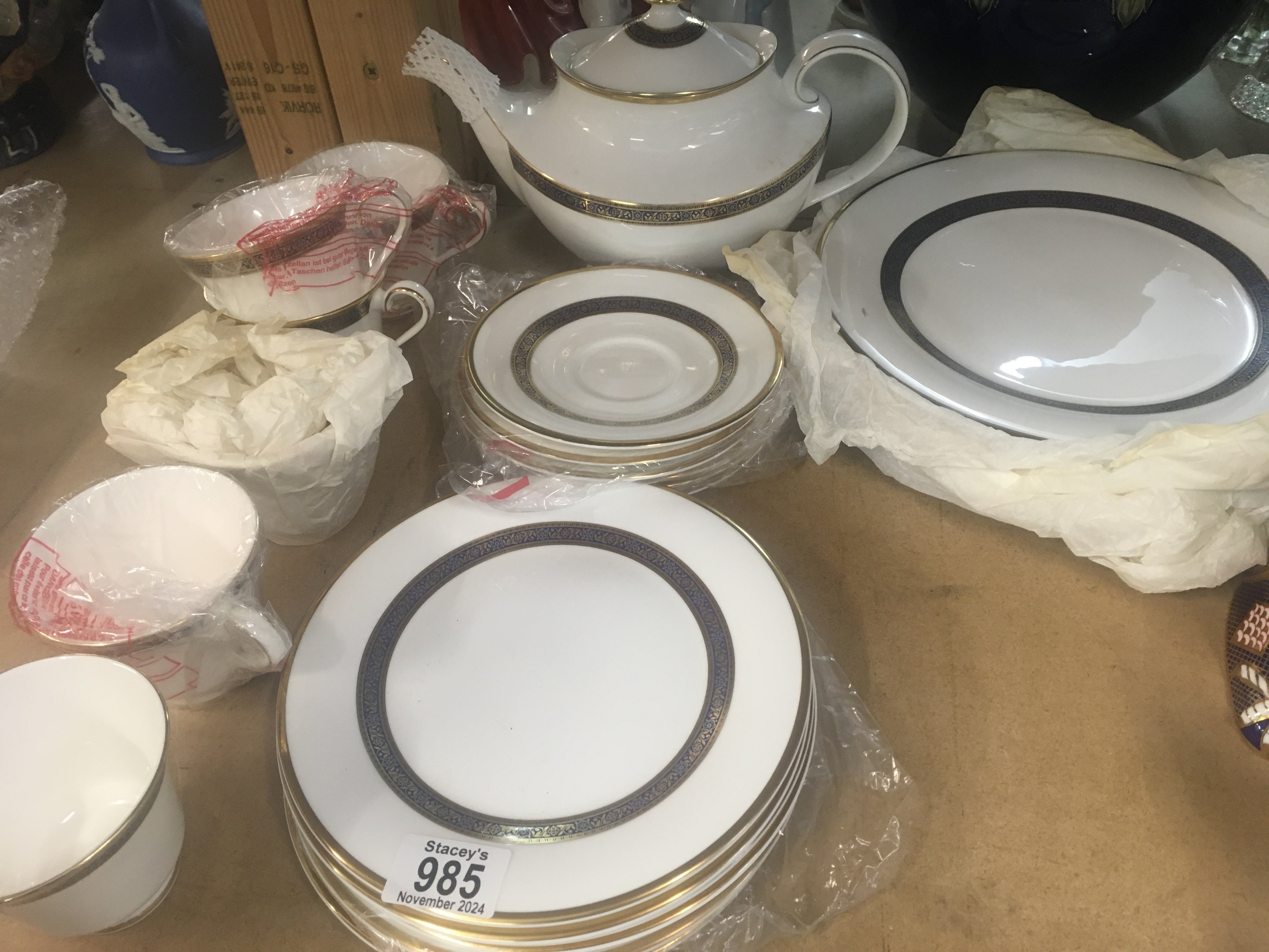A Royal Doulton Harlow tea dinner service comprising cups saucers, teapot and dinners plates .
