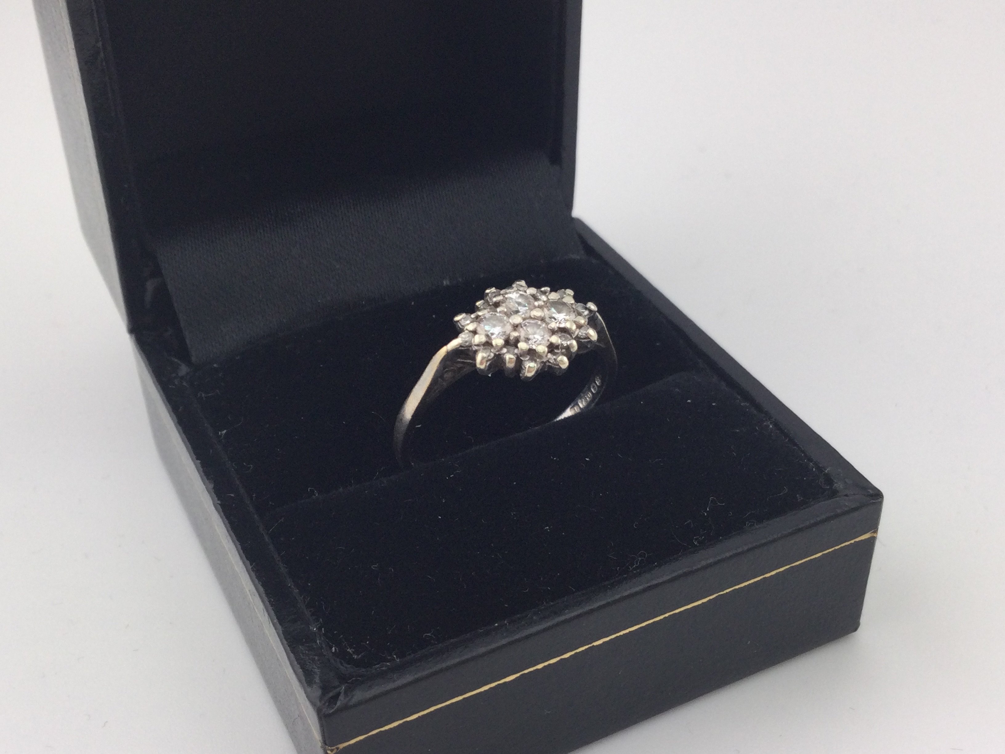An 18ct white gold diamond cluster ring. Approx weight 2 grams, approx size N.