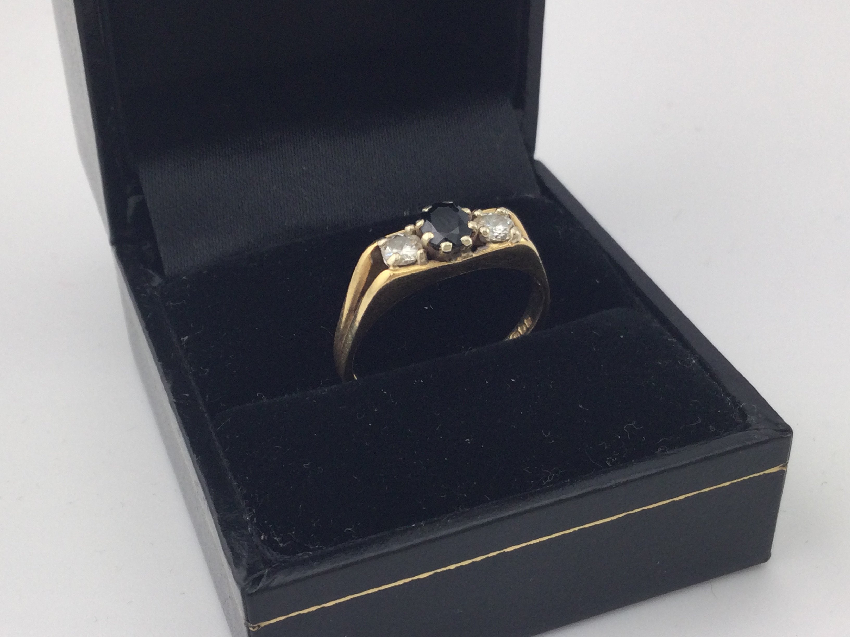 An 18ct diamond and sapphire ring. Approx weight 2.9grams, approx size M.