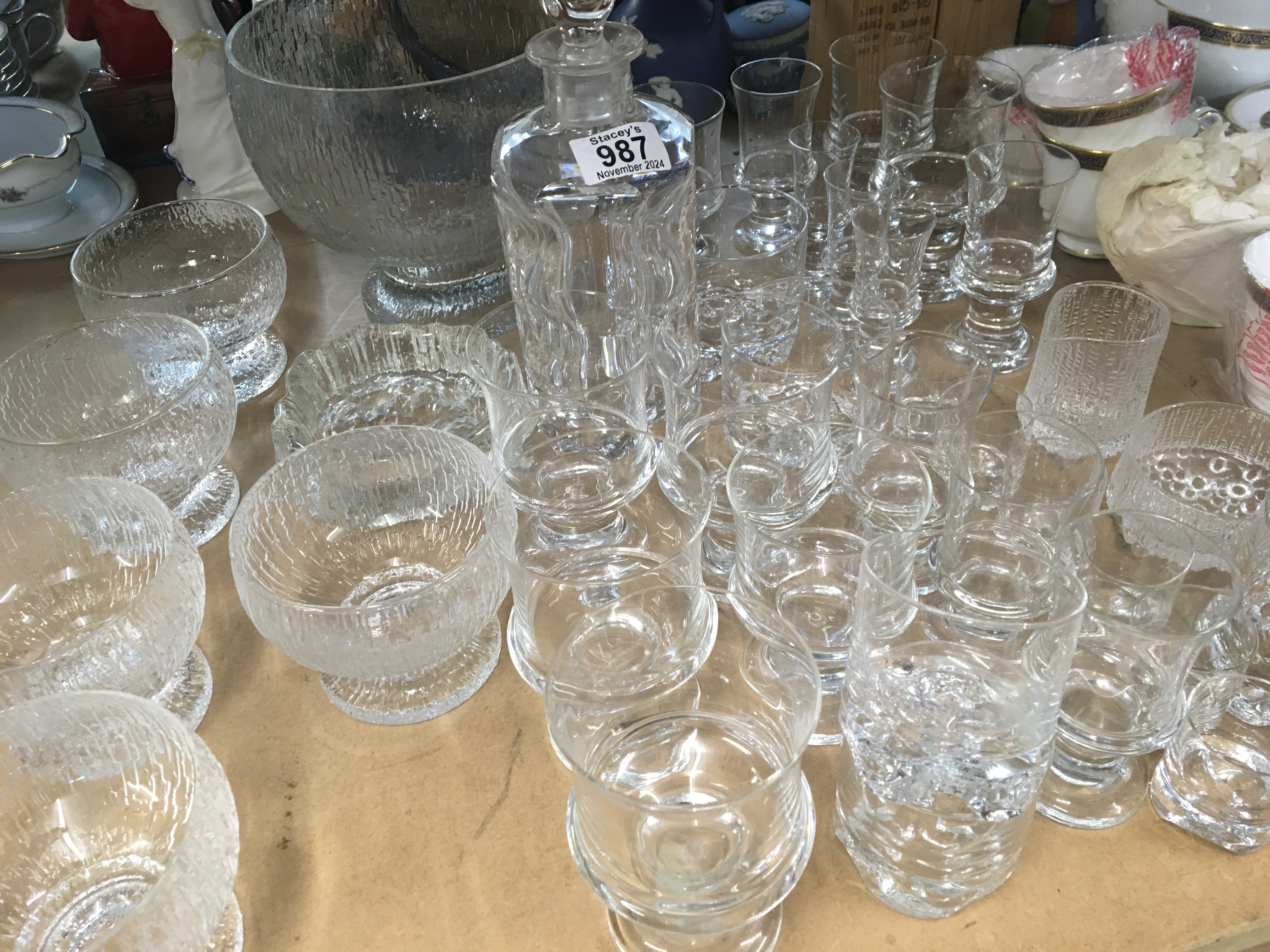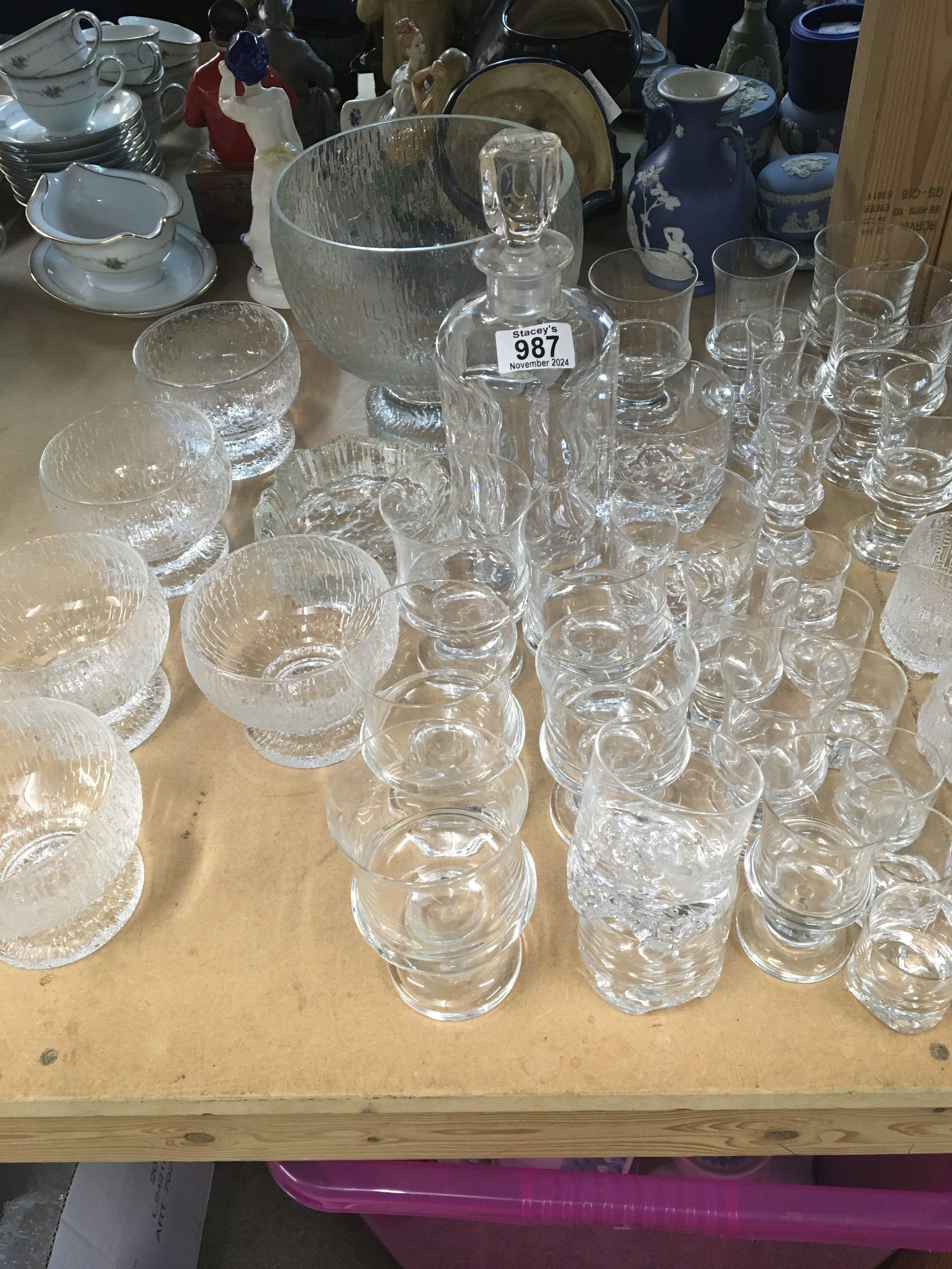 A collection of modern design Iittala drinking glasses and a desert set with bowl.