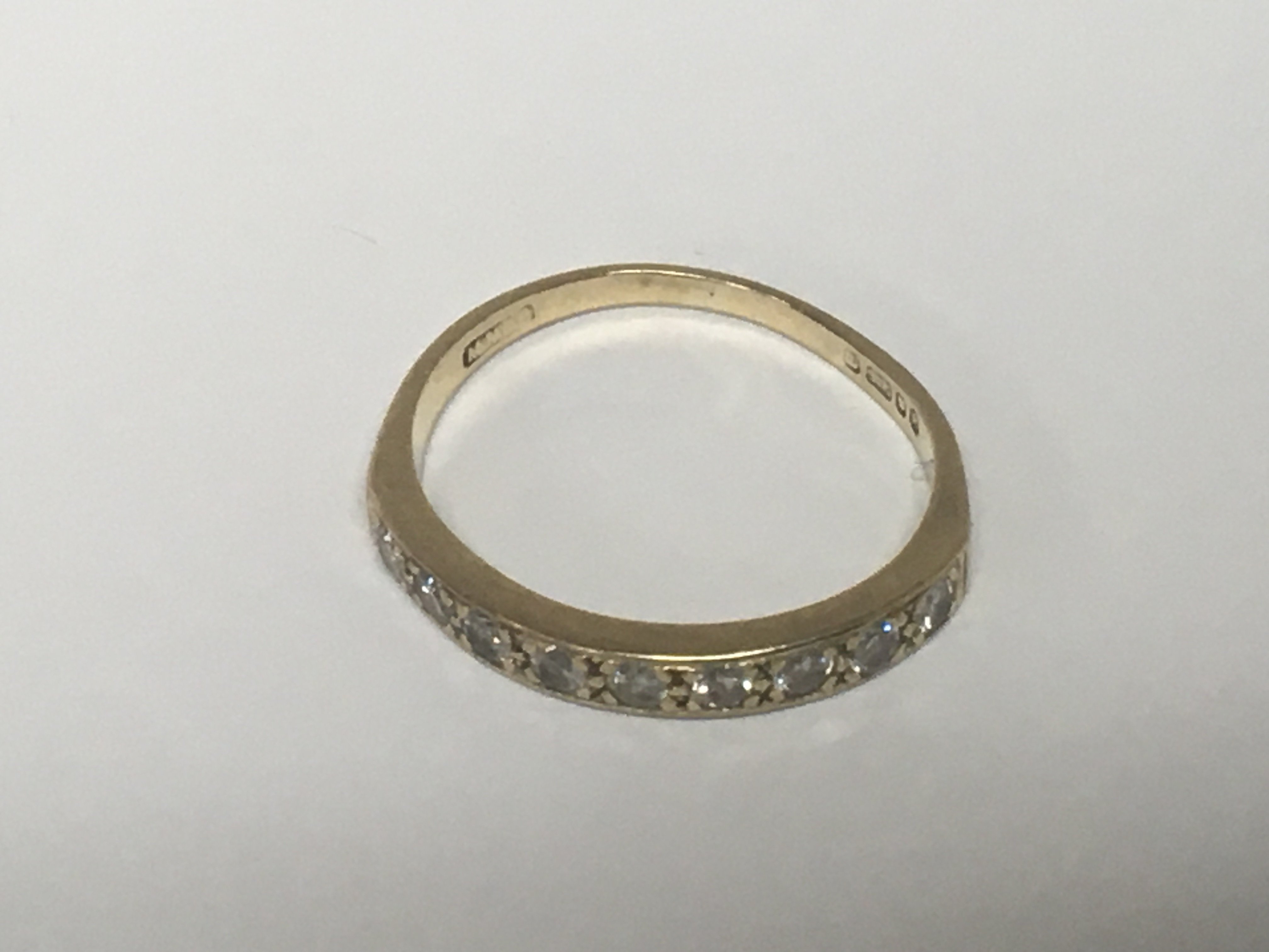 A 9carat gold half hoop eternity ring set with a row of nine brilliant cut diamonds. Weight 2g