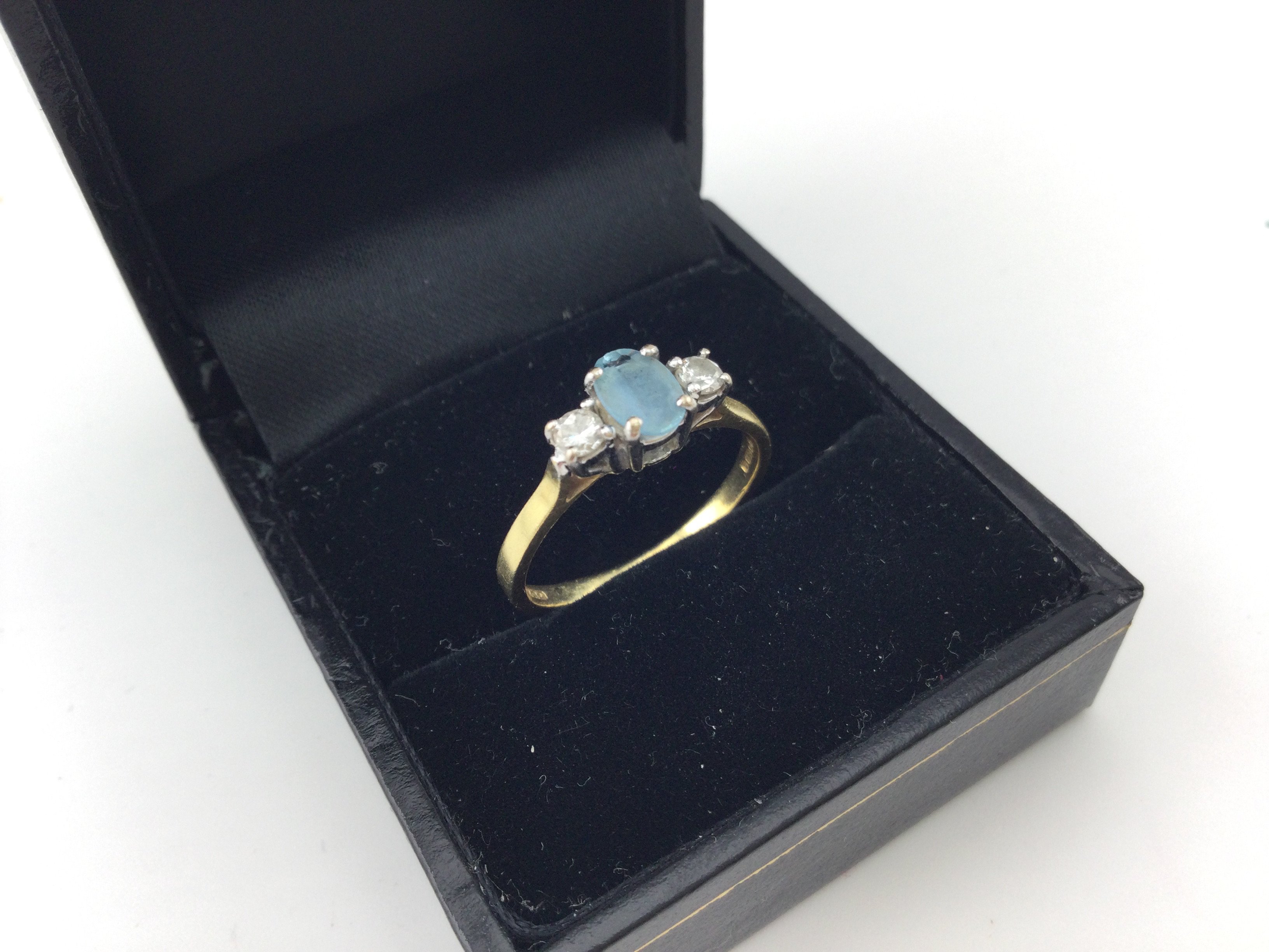 An 18ct gold blue and diamond stone set ring.approx weight 2.6 grams, approx size M.