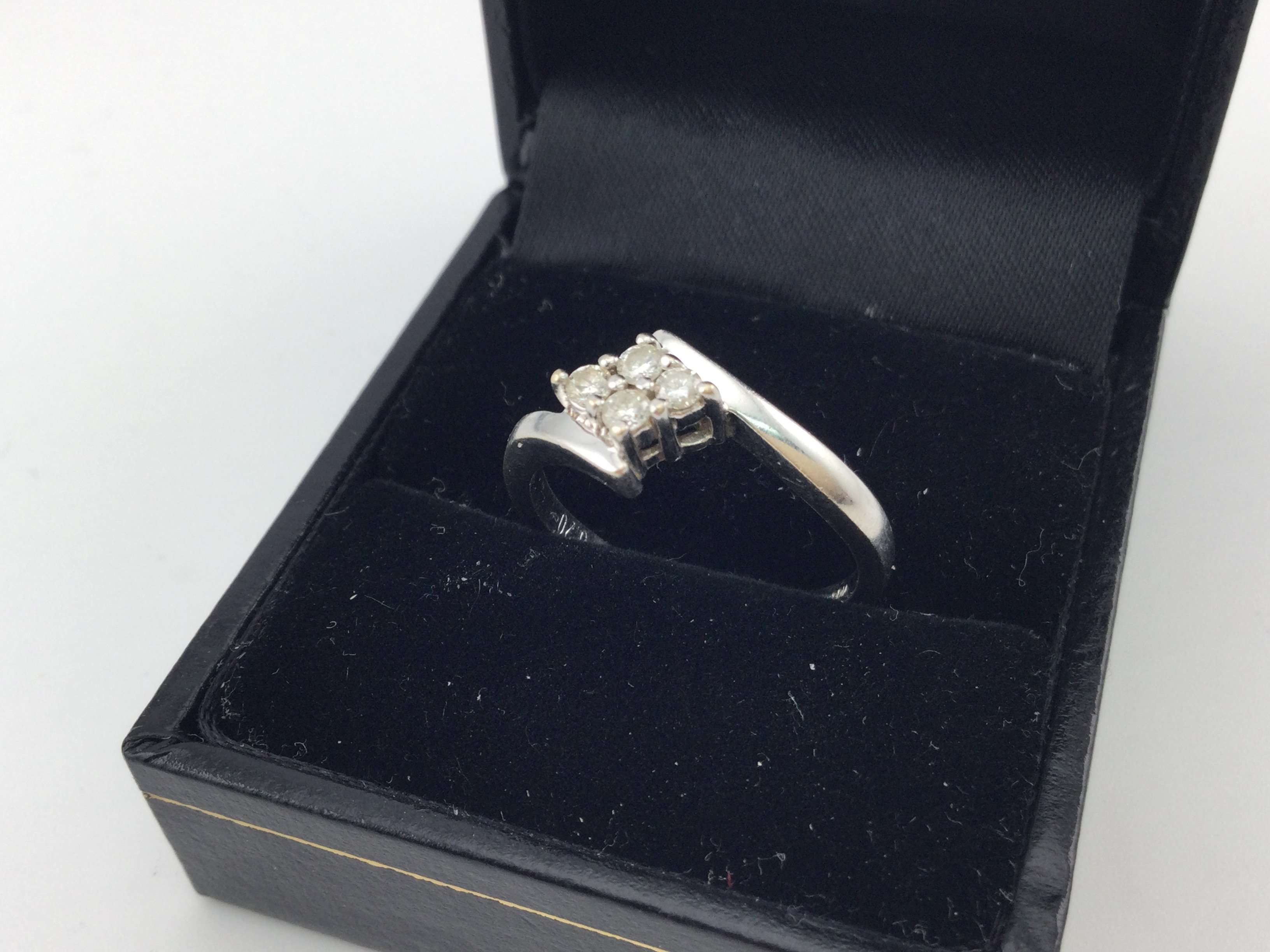 A 9ct white gold diamond ring. Approx weight 3.3 grams, size P.