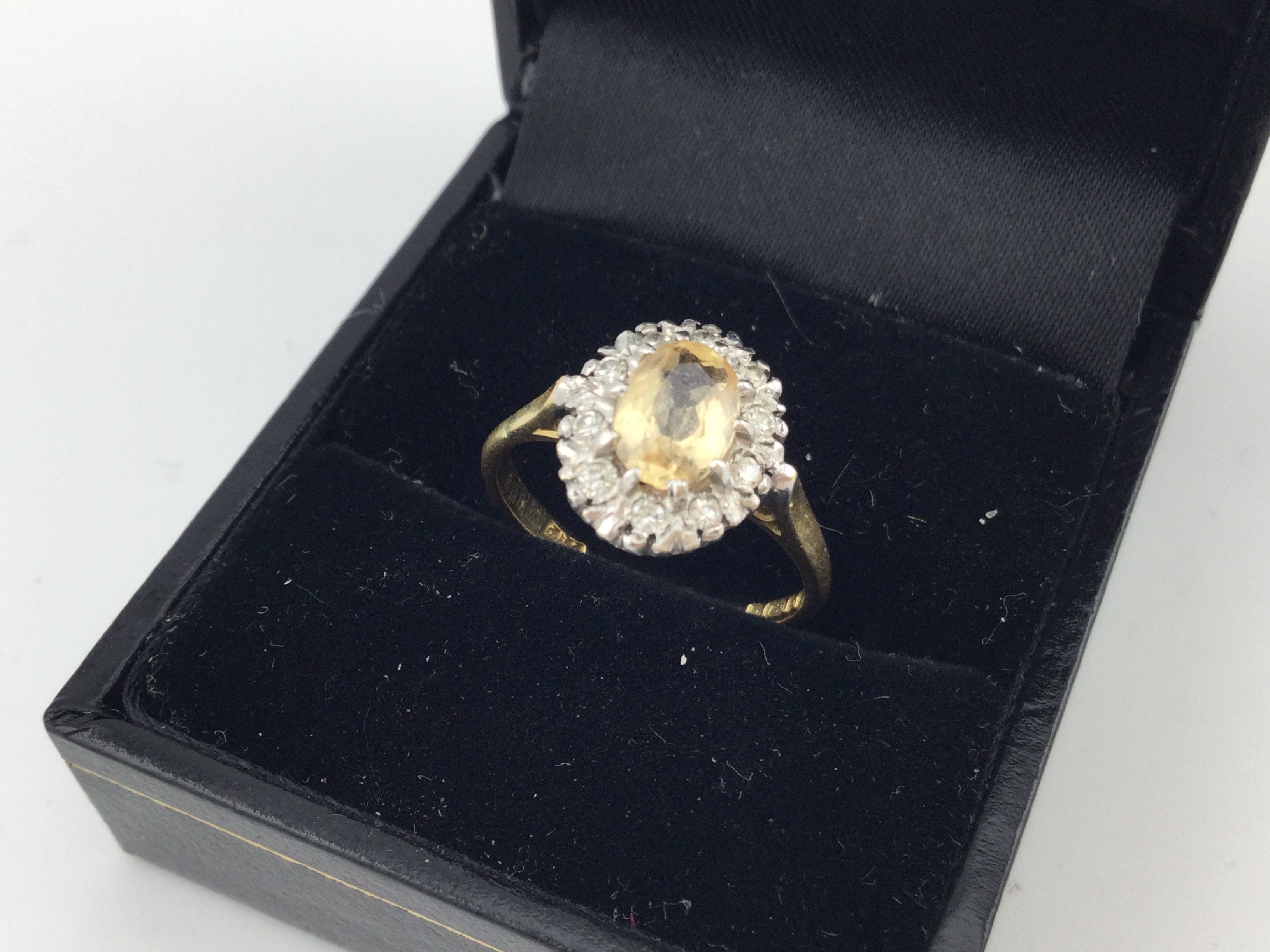 An 18ct gold stone set ring. Approx weight 3.5 grams, size M.