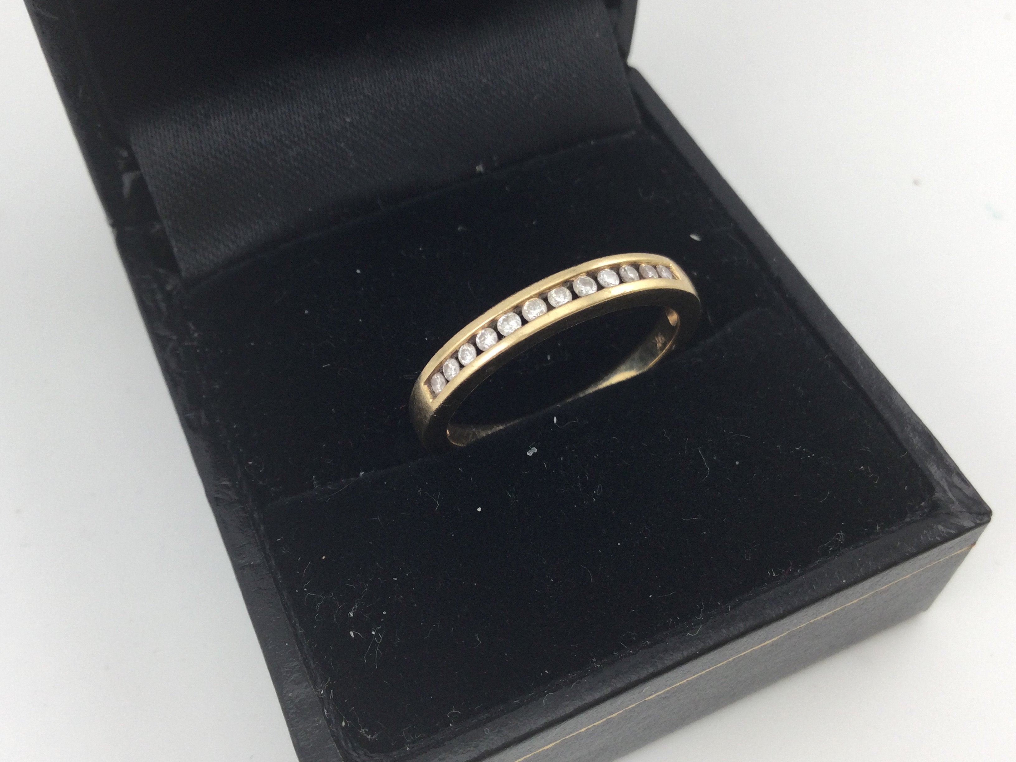 A 9ct gold and diamond ring. Approx weight 2.2 grams.
