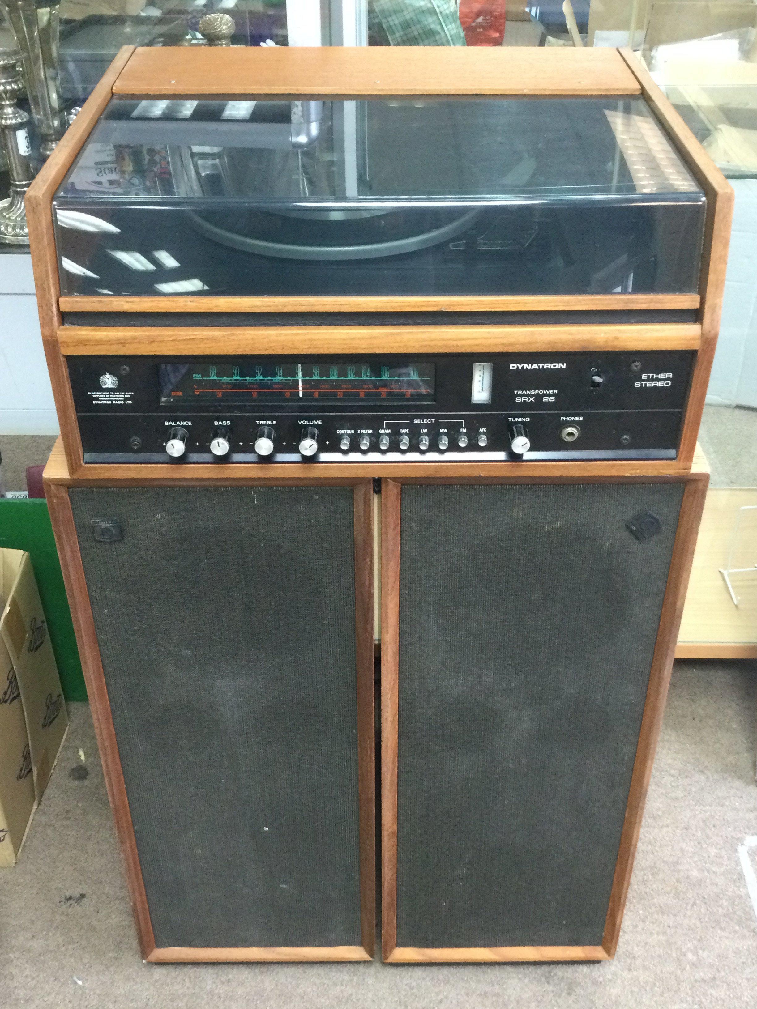 A 1970s Dynatron SRX26 record deck and tuner with a pair of L52034 floor standing speakers (3).