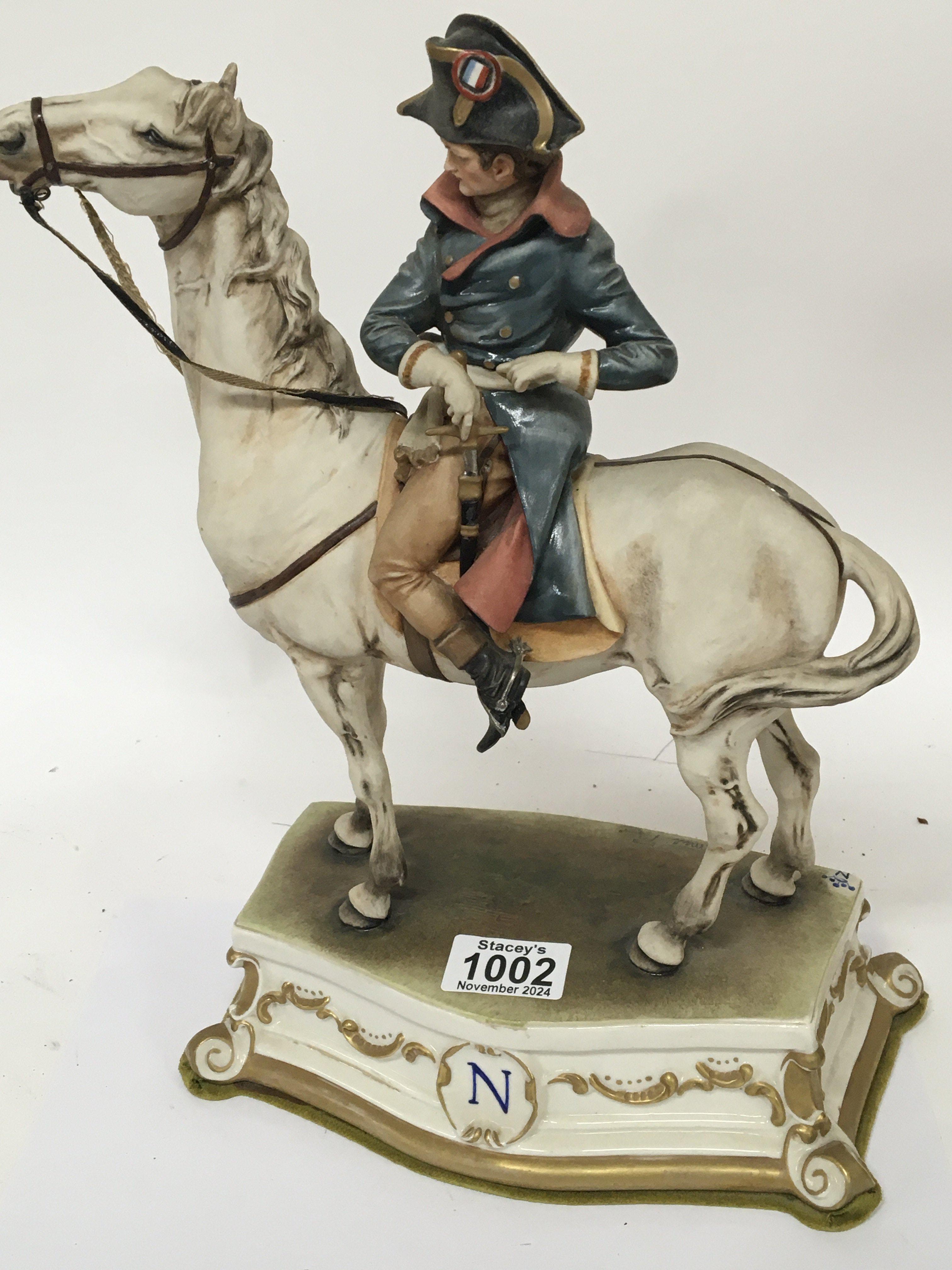 A Capodimonte ceramic figure of Napoleon mounted on his horse. No obvious damage height 34cm