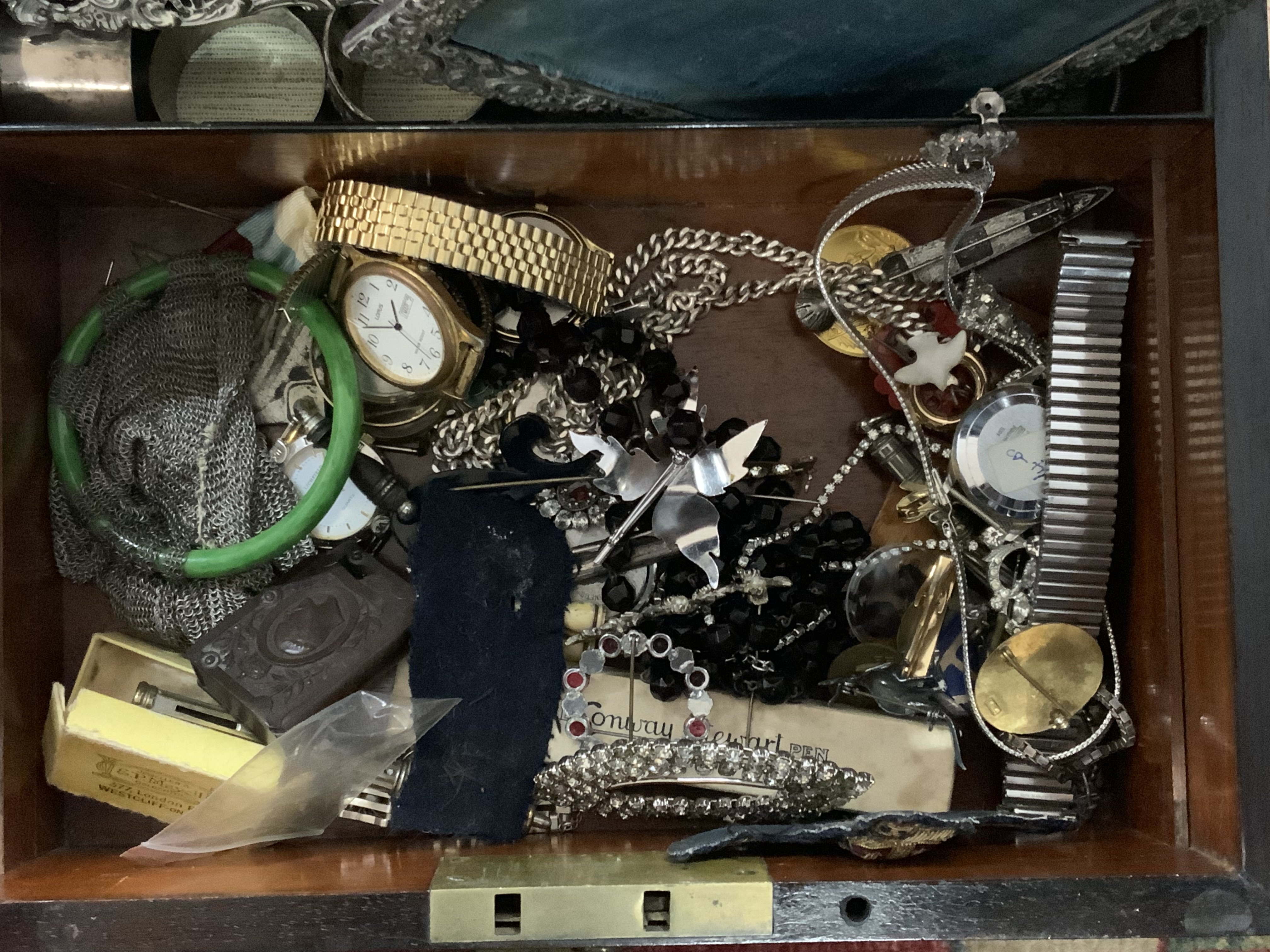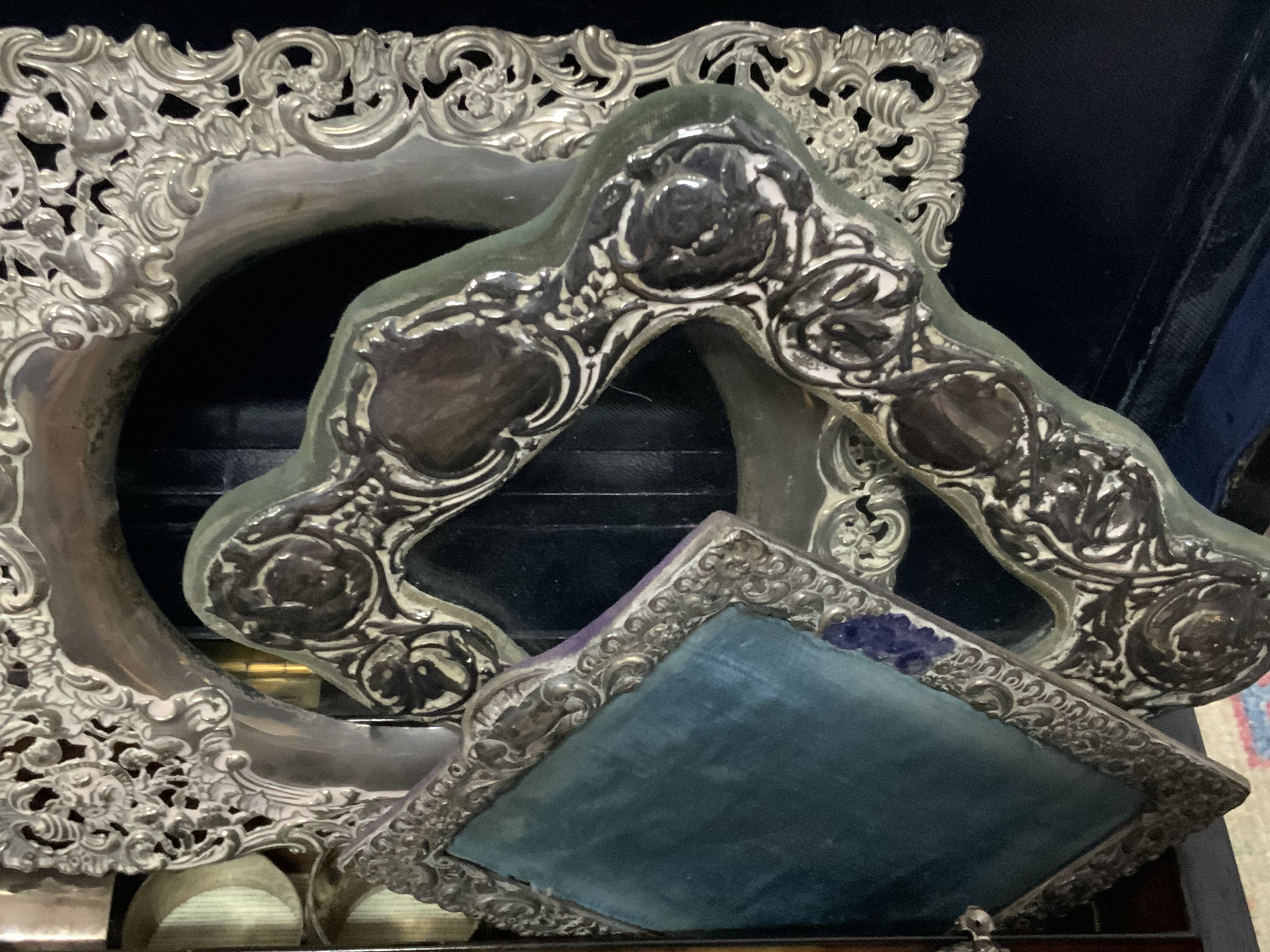 A mixed collection of costume jewellery, silver photo frames and small articles. (D)