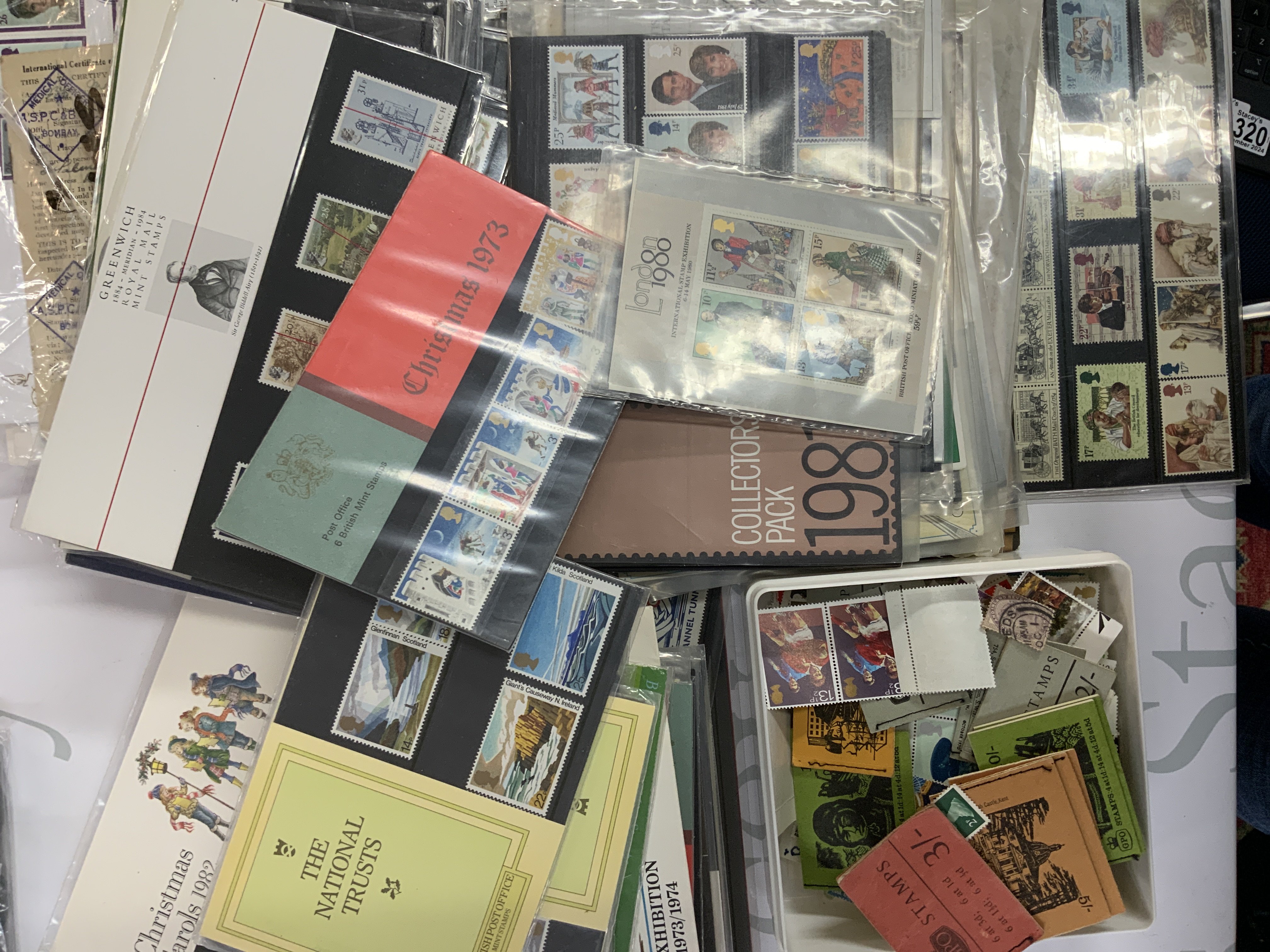 A large collection of stamp presentation packs, books and loose unused stamps.