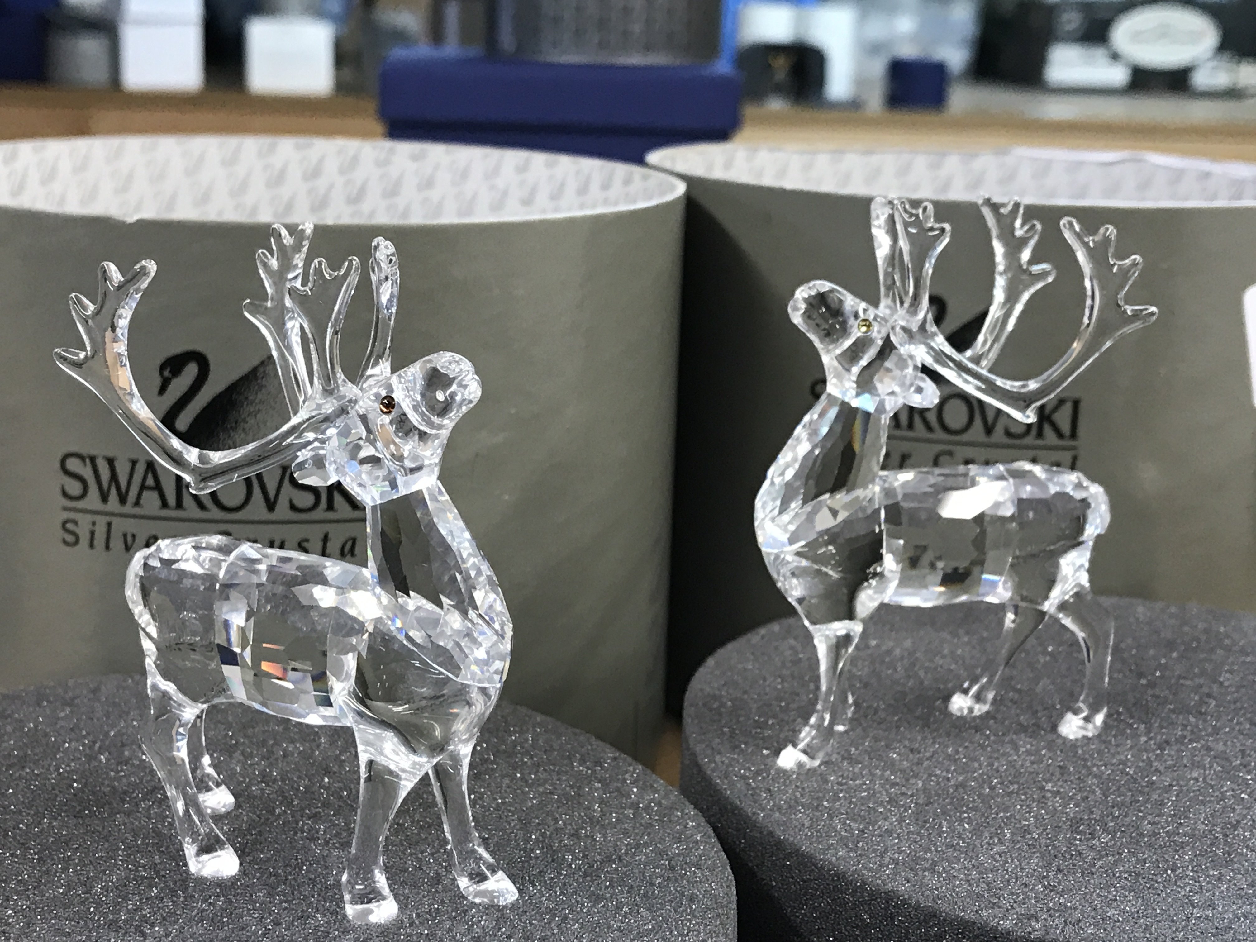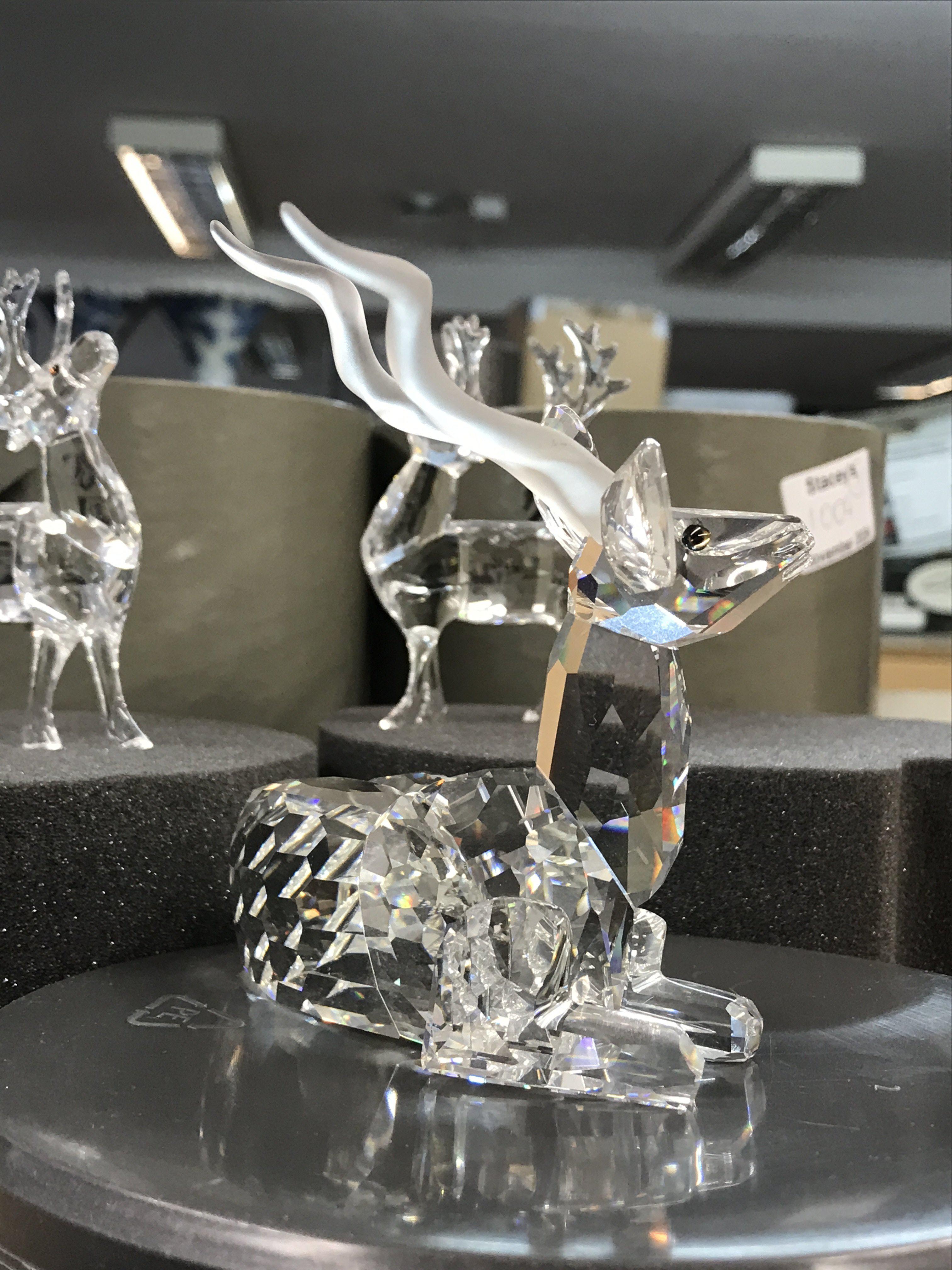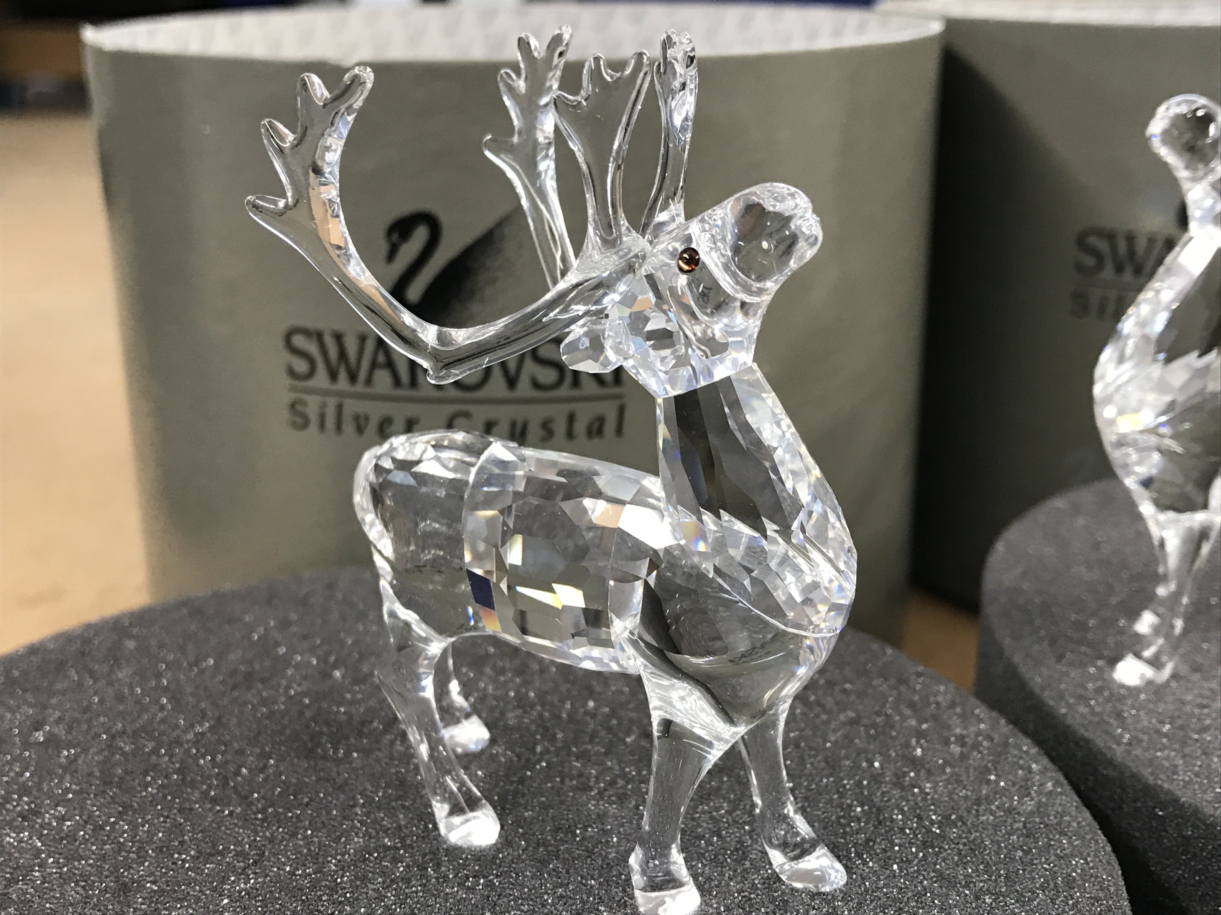 A Swarovski "Inspiration Africa-The Kudu" figure together with two Reindeer figures and Santa Sleigh