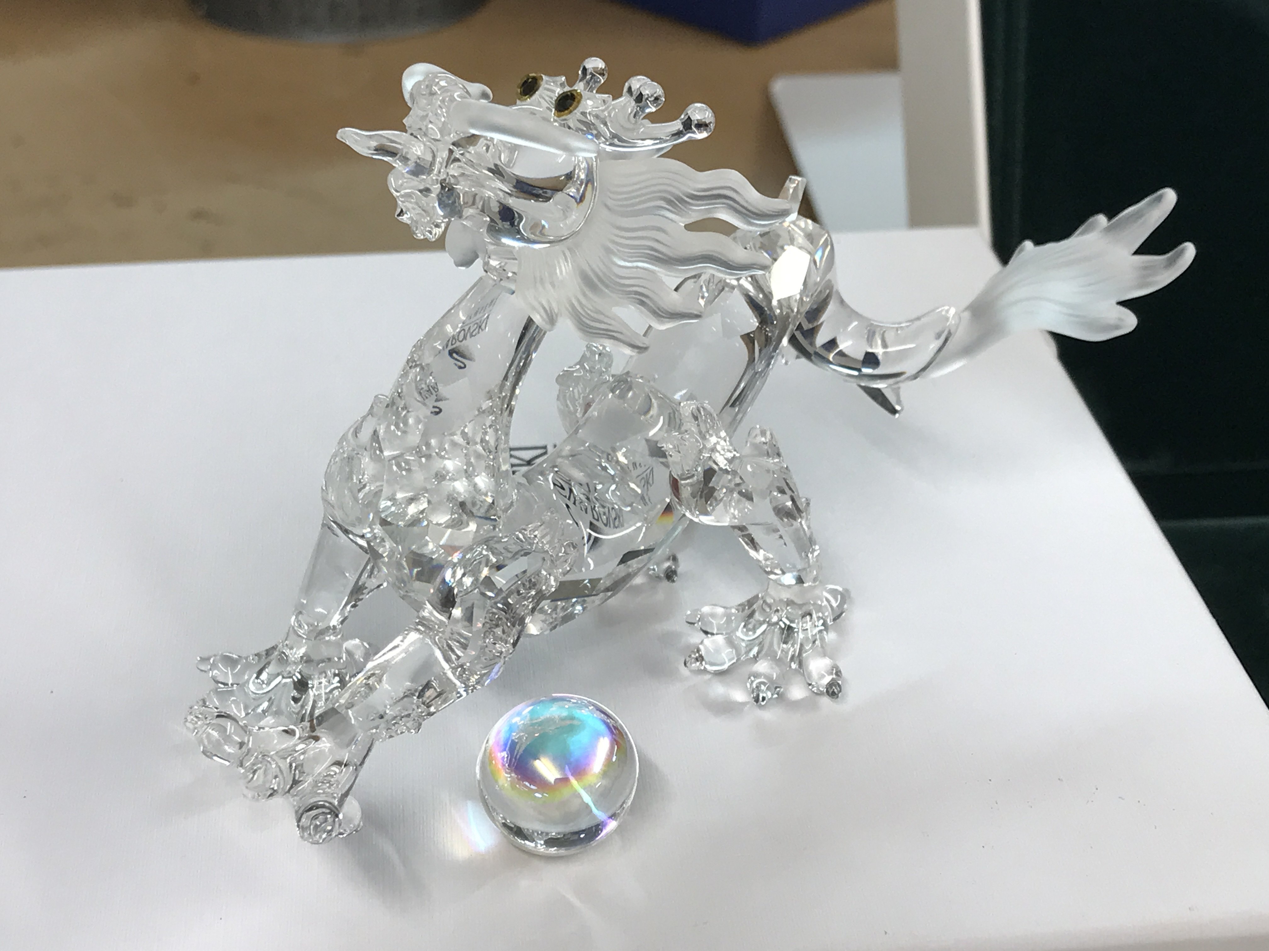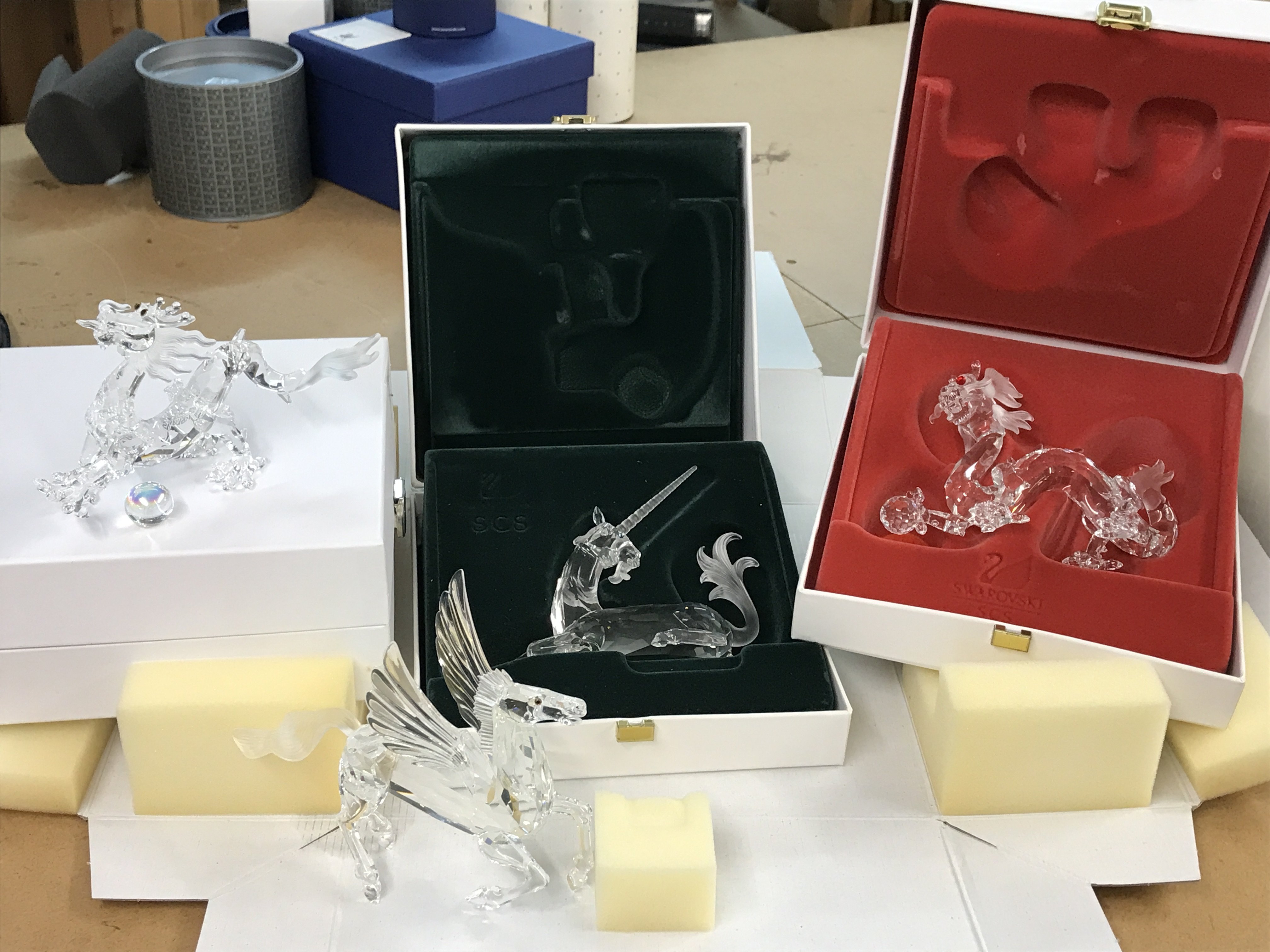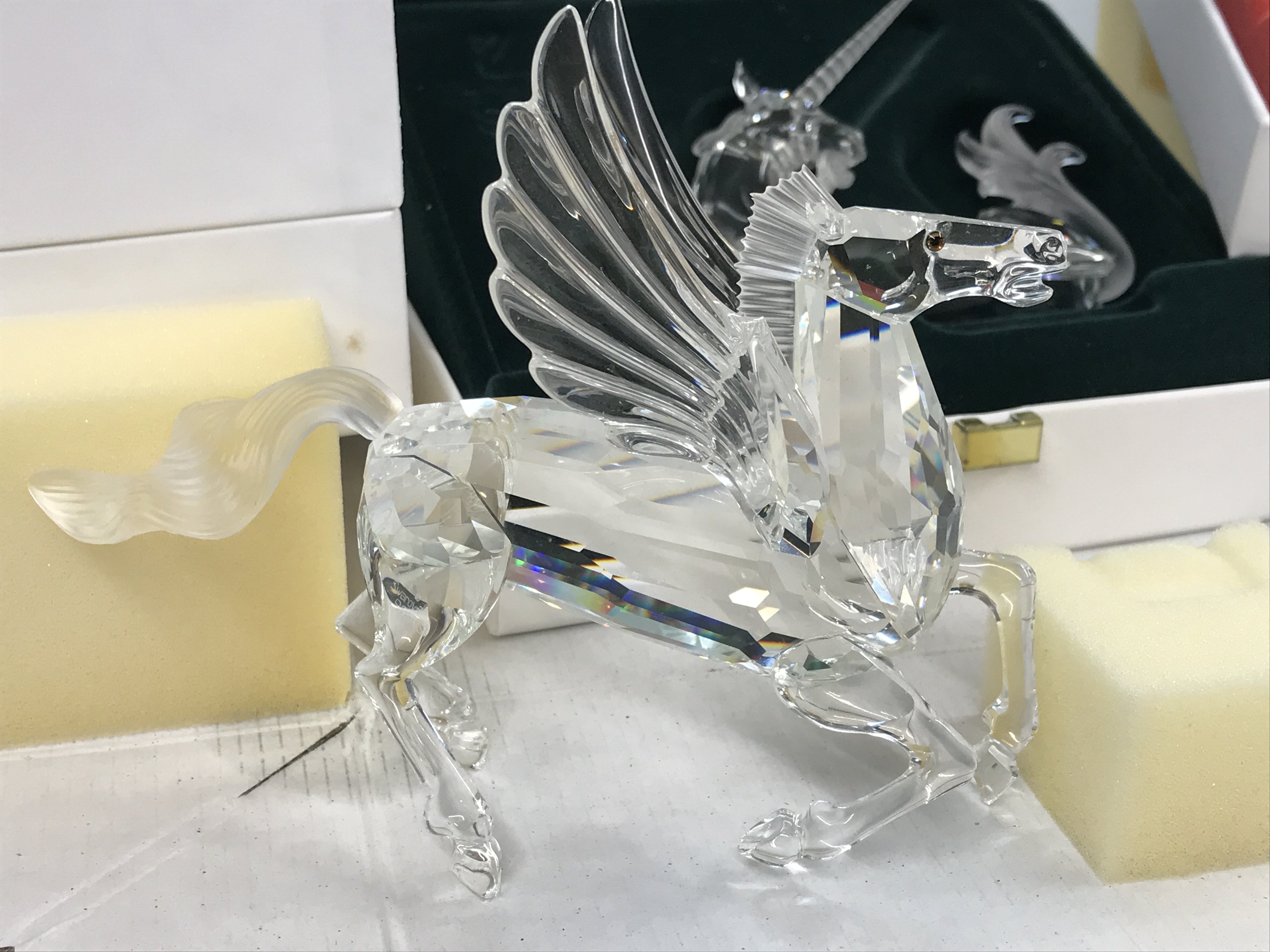 Four Swarovski figures including "Fabulous Creatures" Unicorn, Pearl Dragons and Pegasus- all boxed