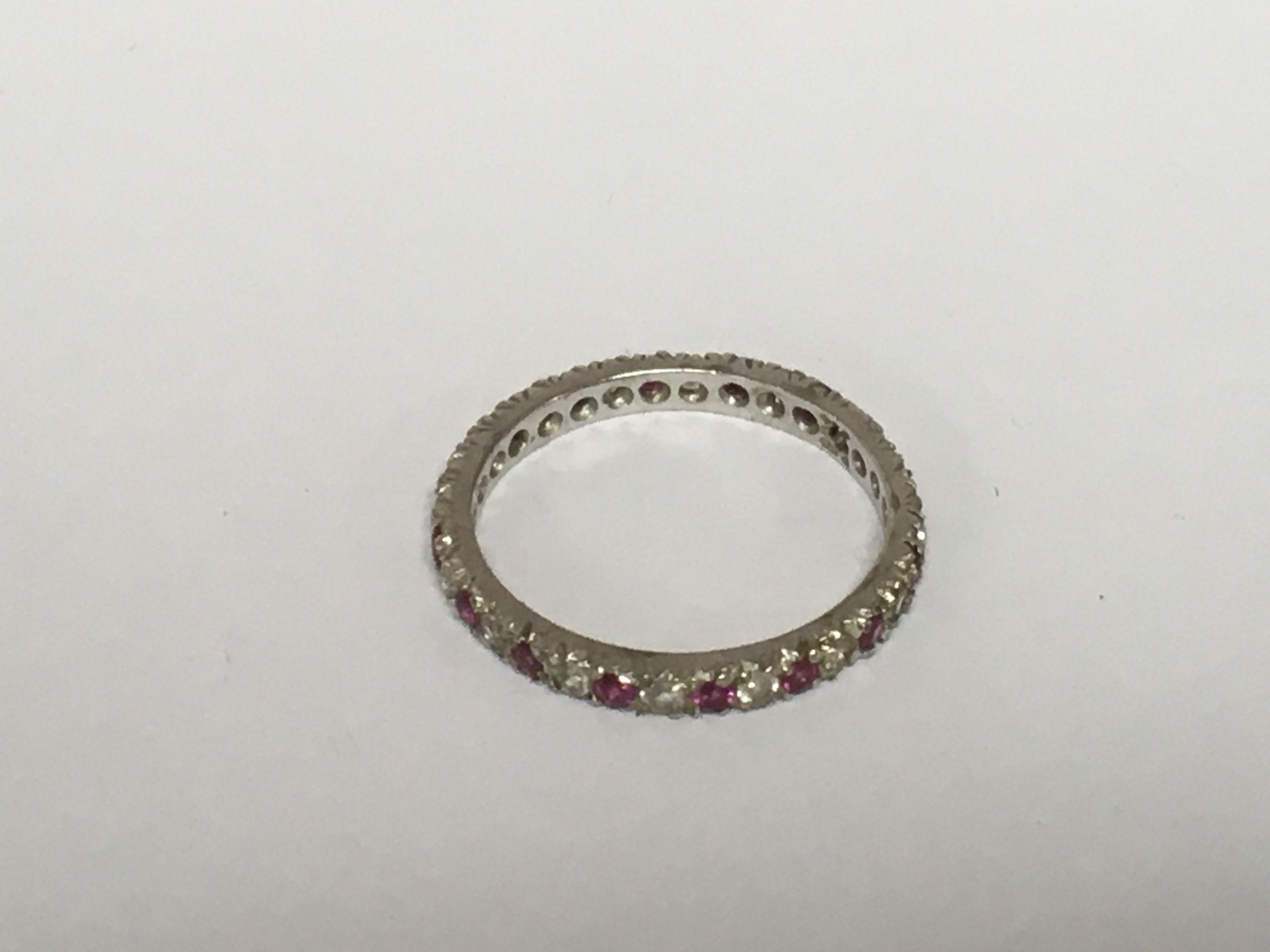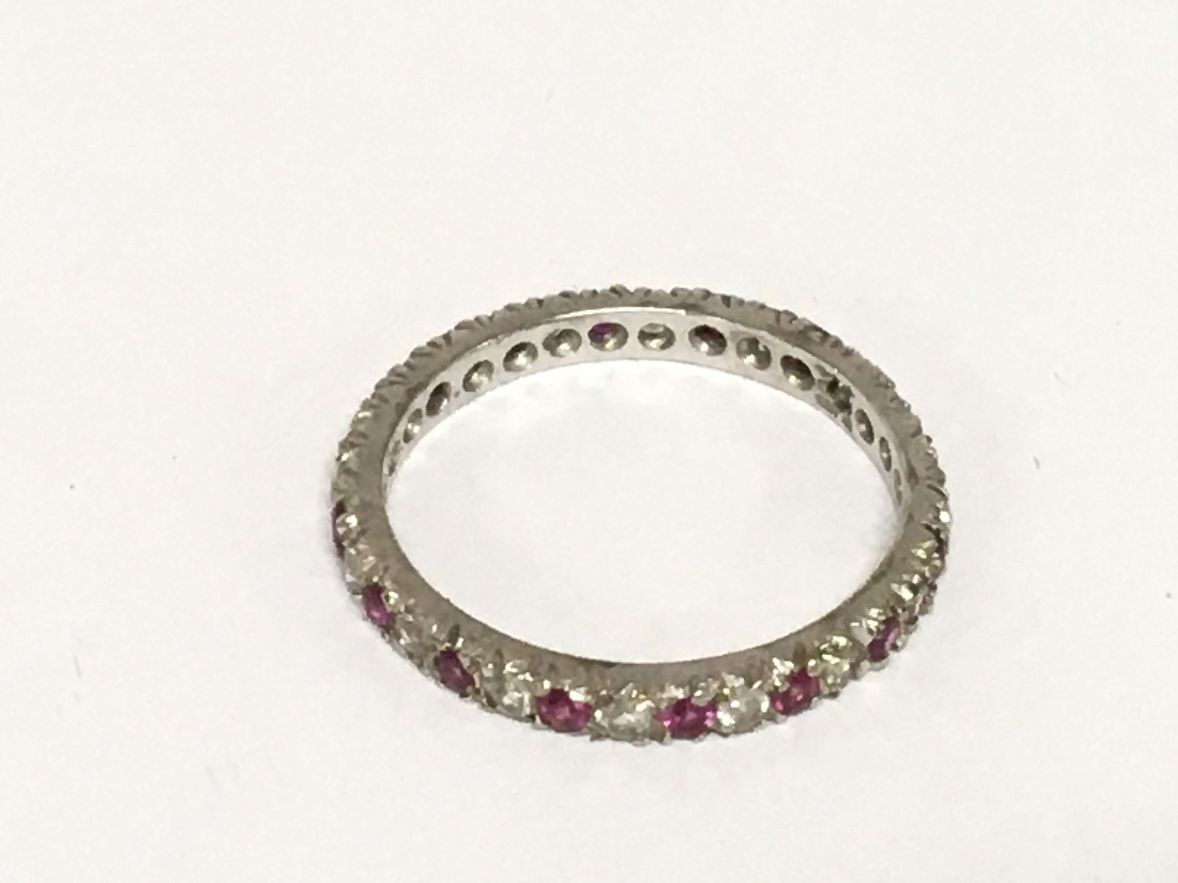A white gold eternity ring set with alternating stones ring size O. Weight 1.8g