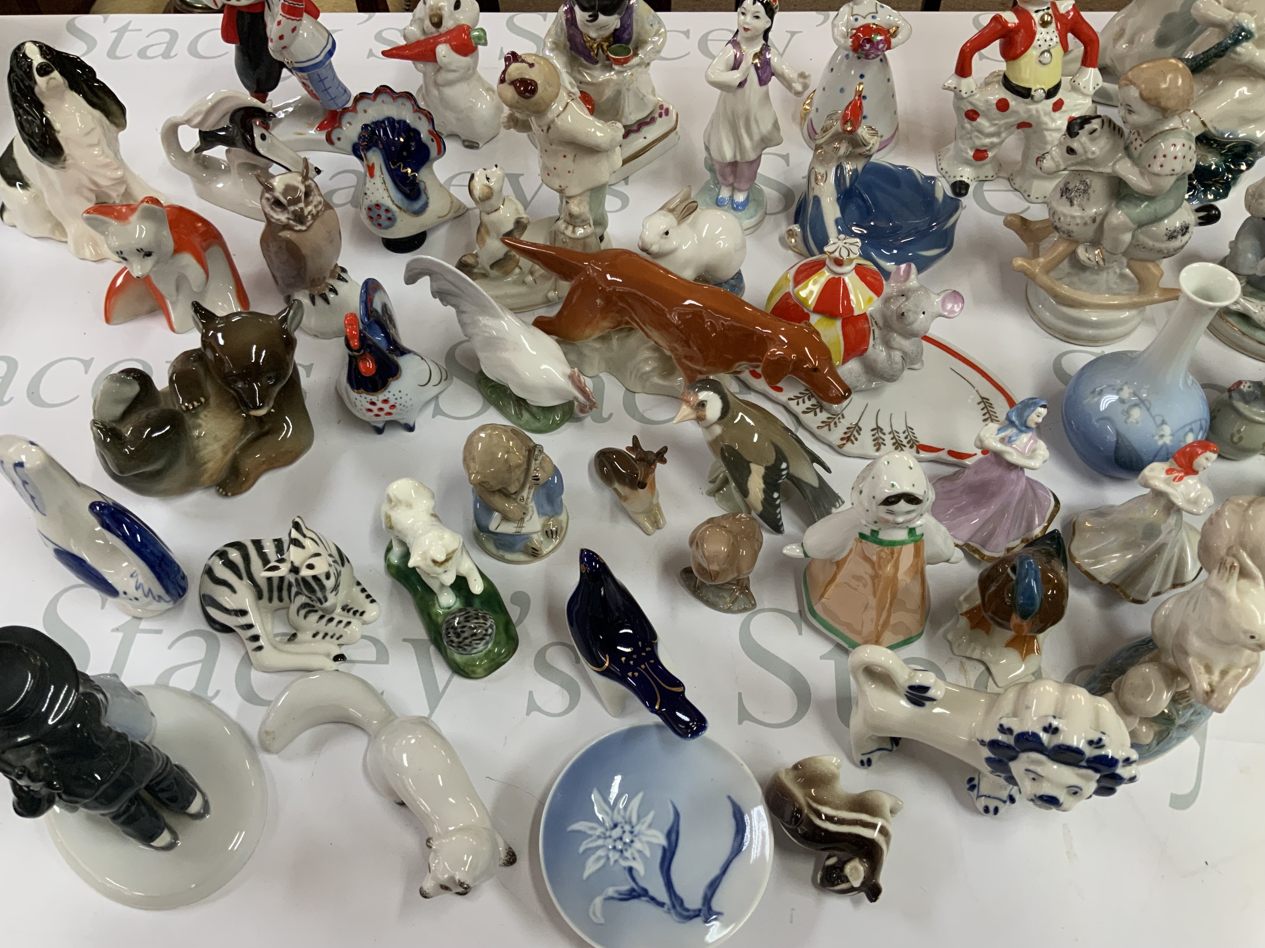 A large and extensive collection of USSR and Lomonosov porcelain figurines. Approx 100 figures (D)