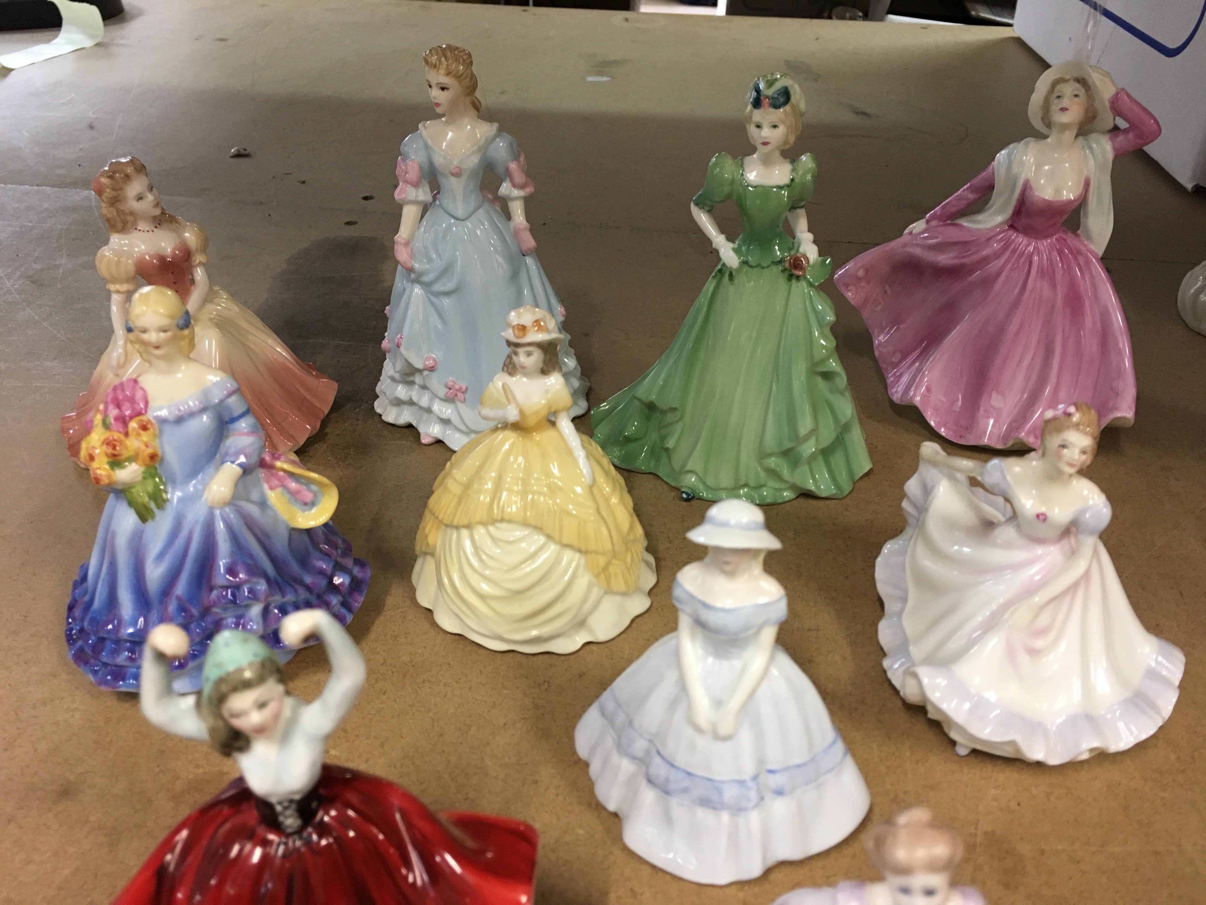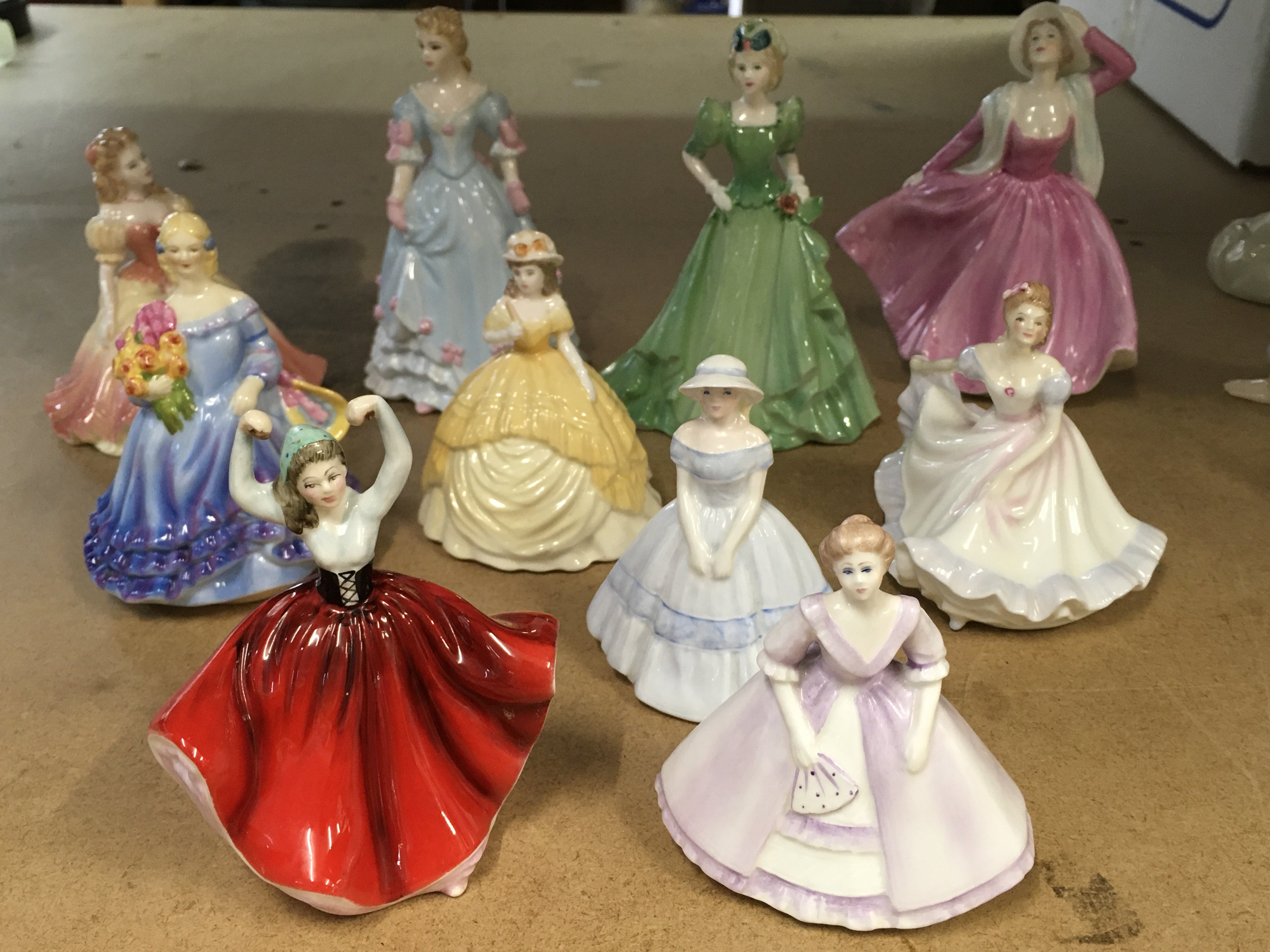 A collection of small ceramic lady figures including Royal Doulton, Royal Worcester and Coalport
