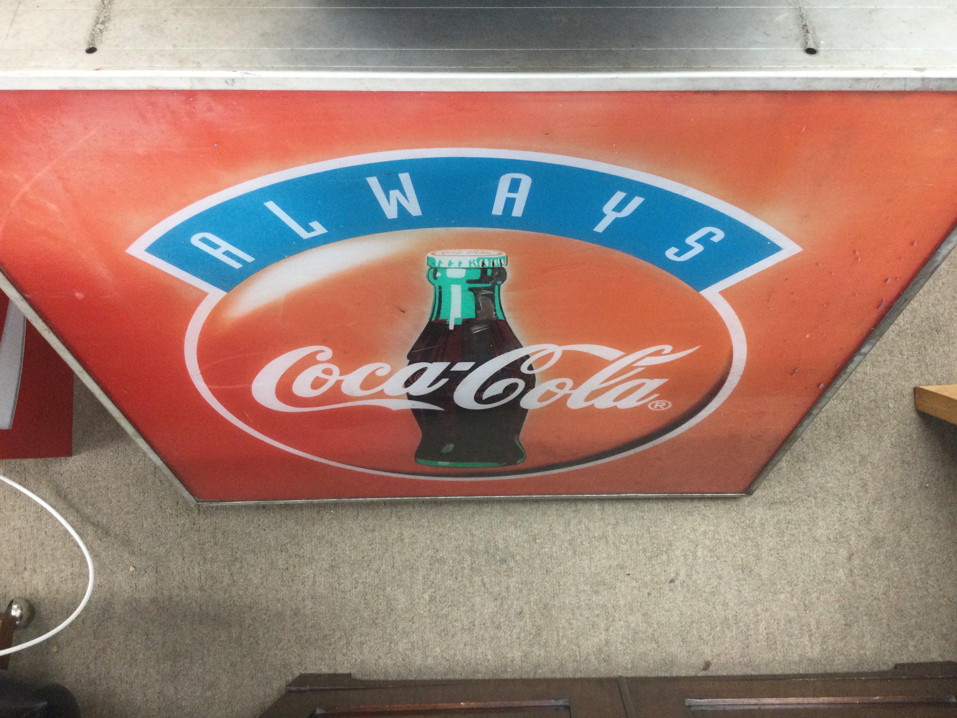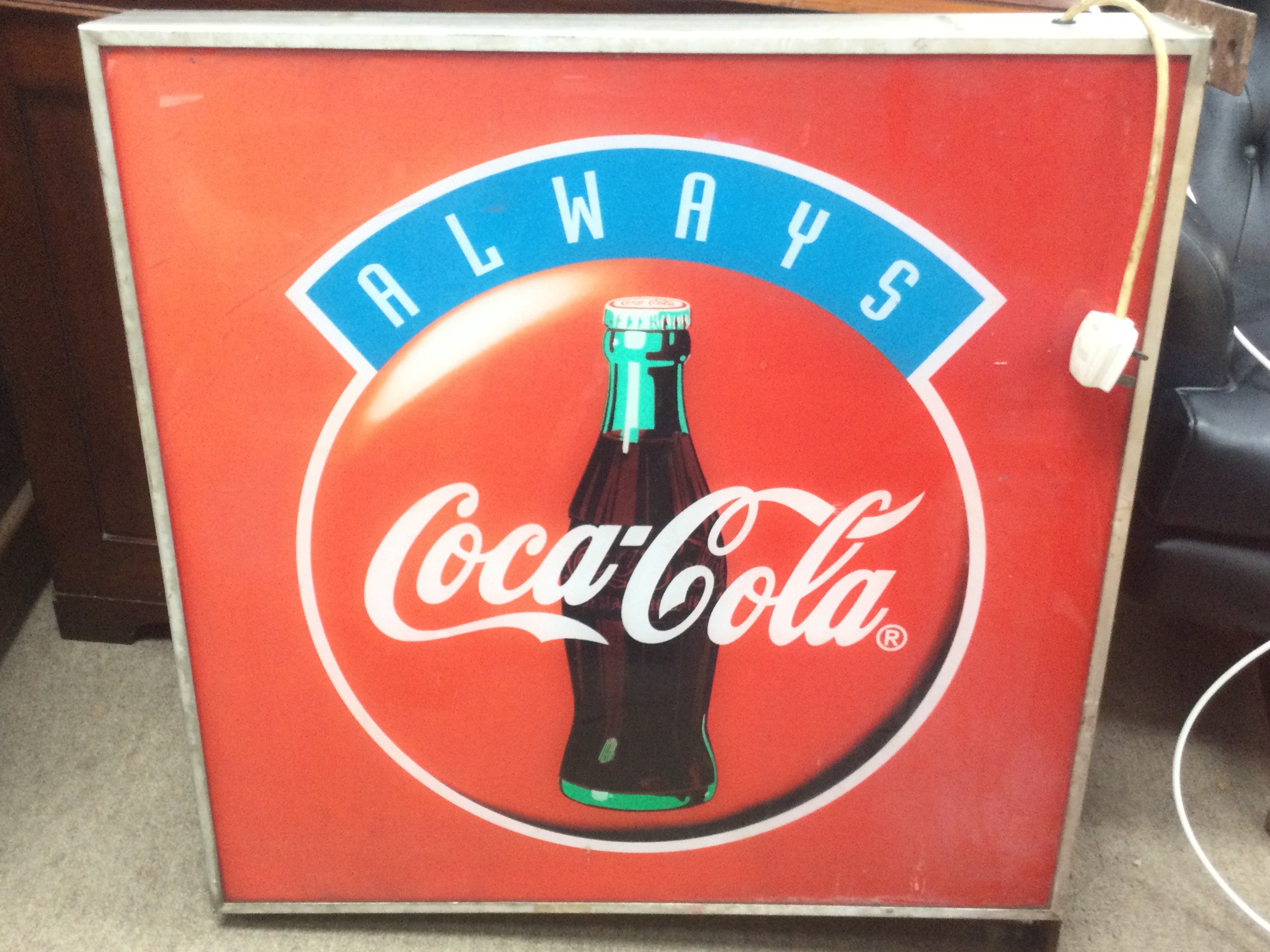 A vintage double sided Coca Cola illuminating advertising sign, dimensions 75x75. This lot cannot be posted