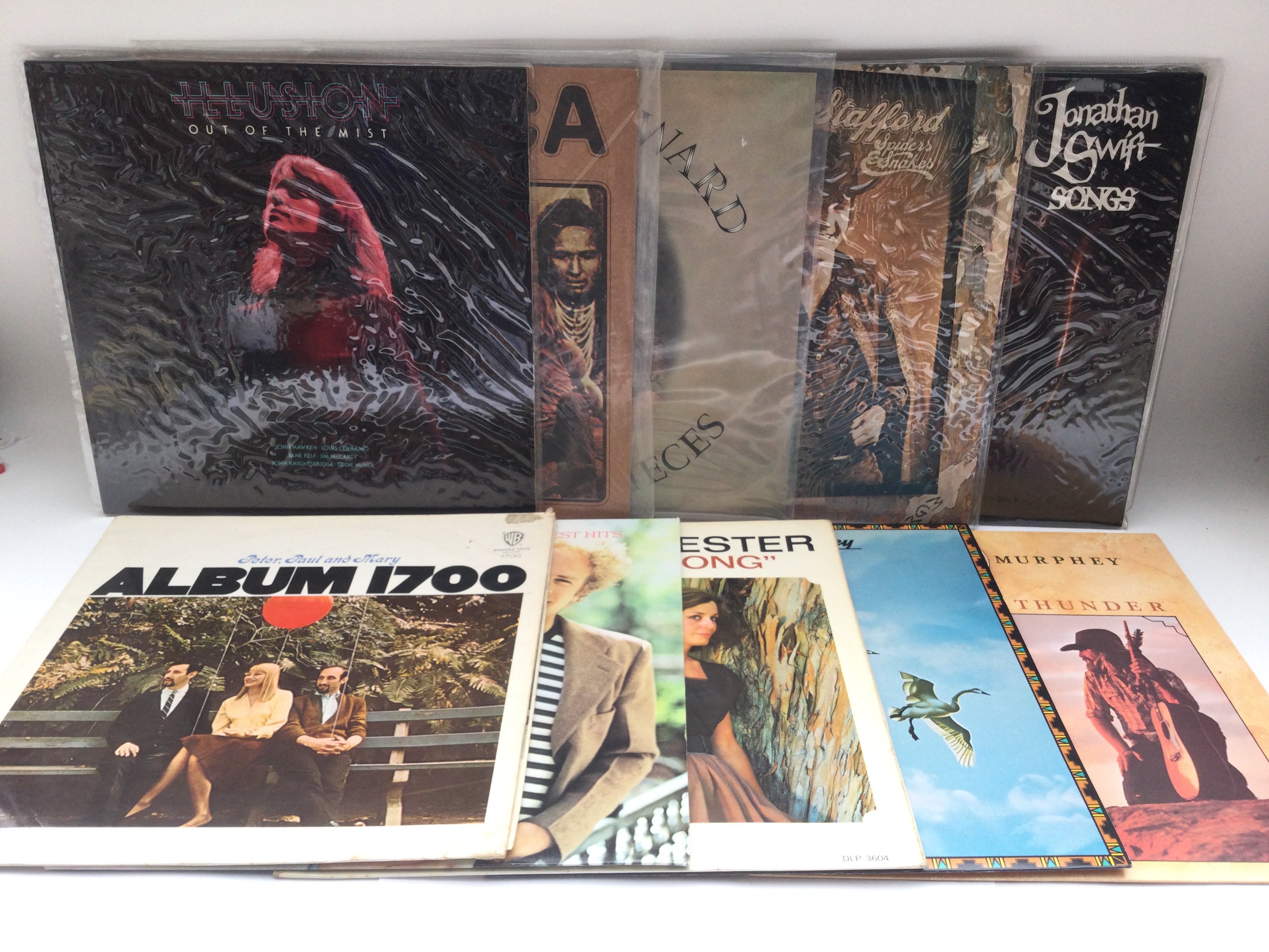 Ten folk rock LPs by various artists including Michael Murphey, Jonathan Swift, Jim Stafford and others.