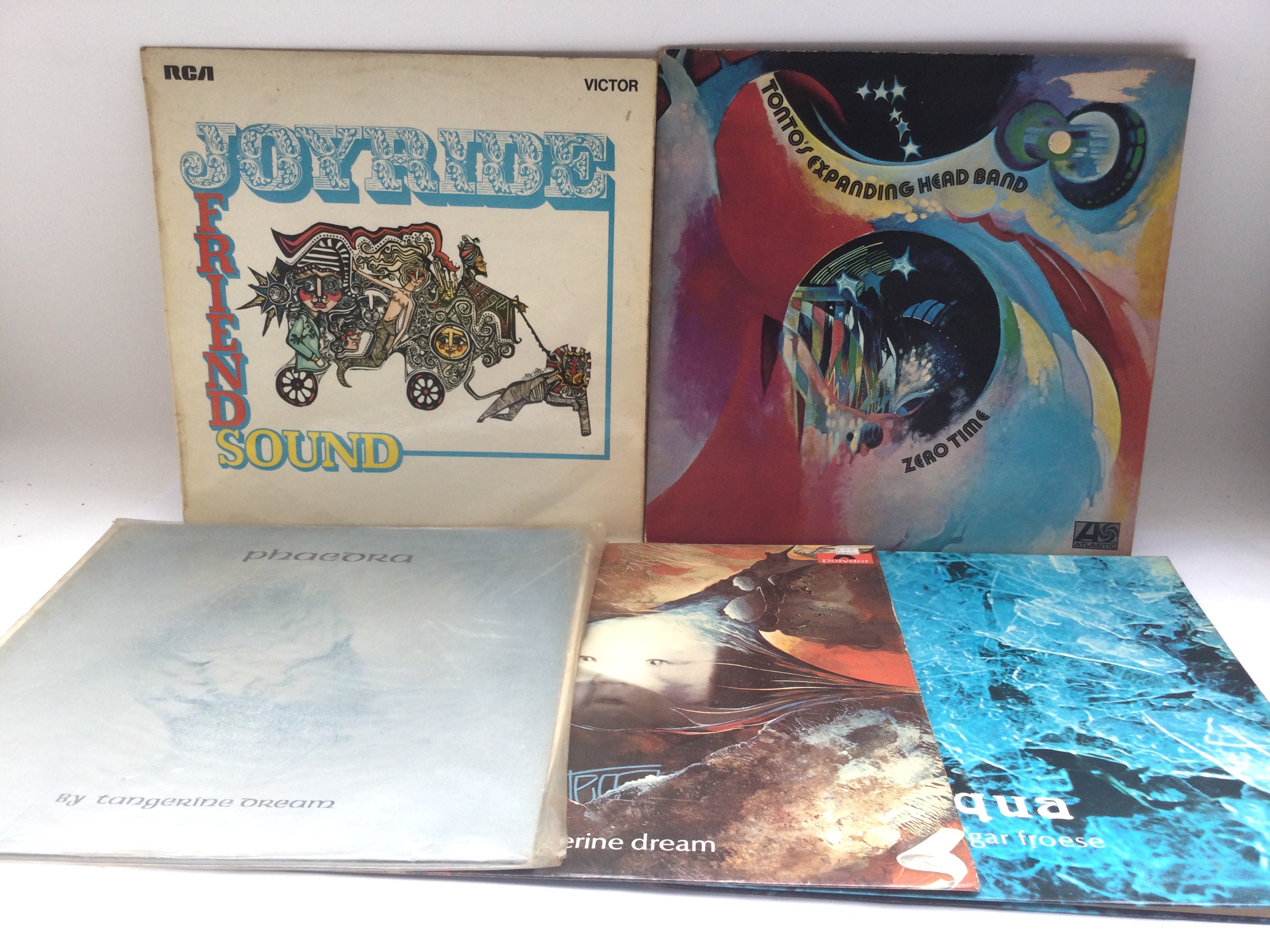 Five progressive rock / ambient LPs by Tangerine Dream, Joyride, Edgar Froese and Tonto's Expanding Head Band.