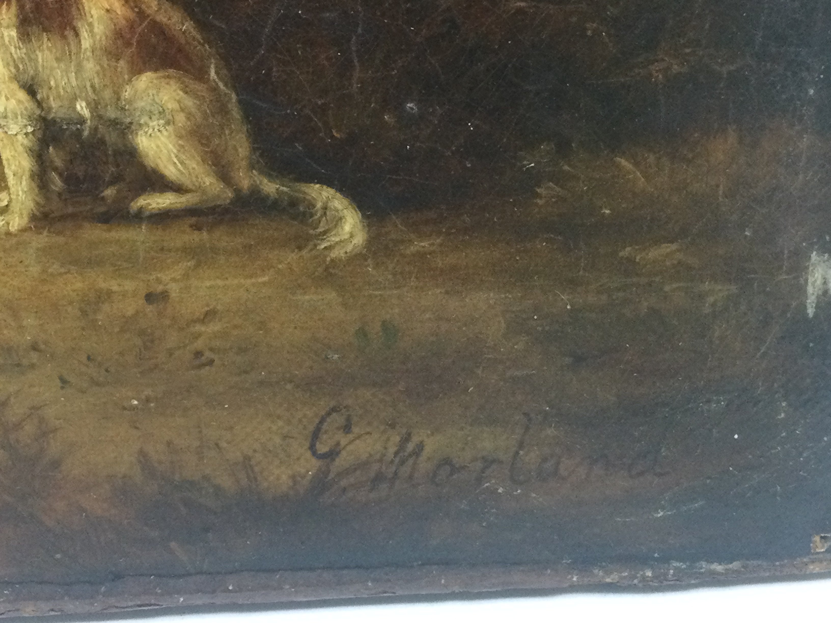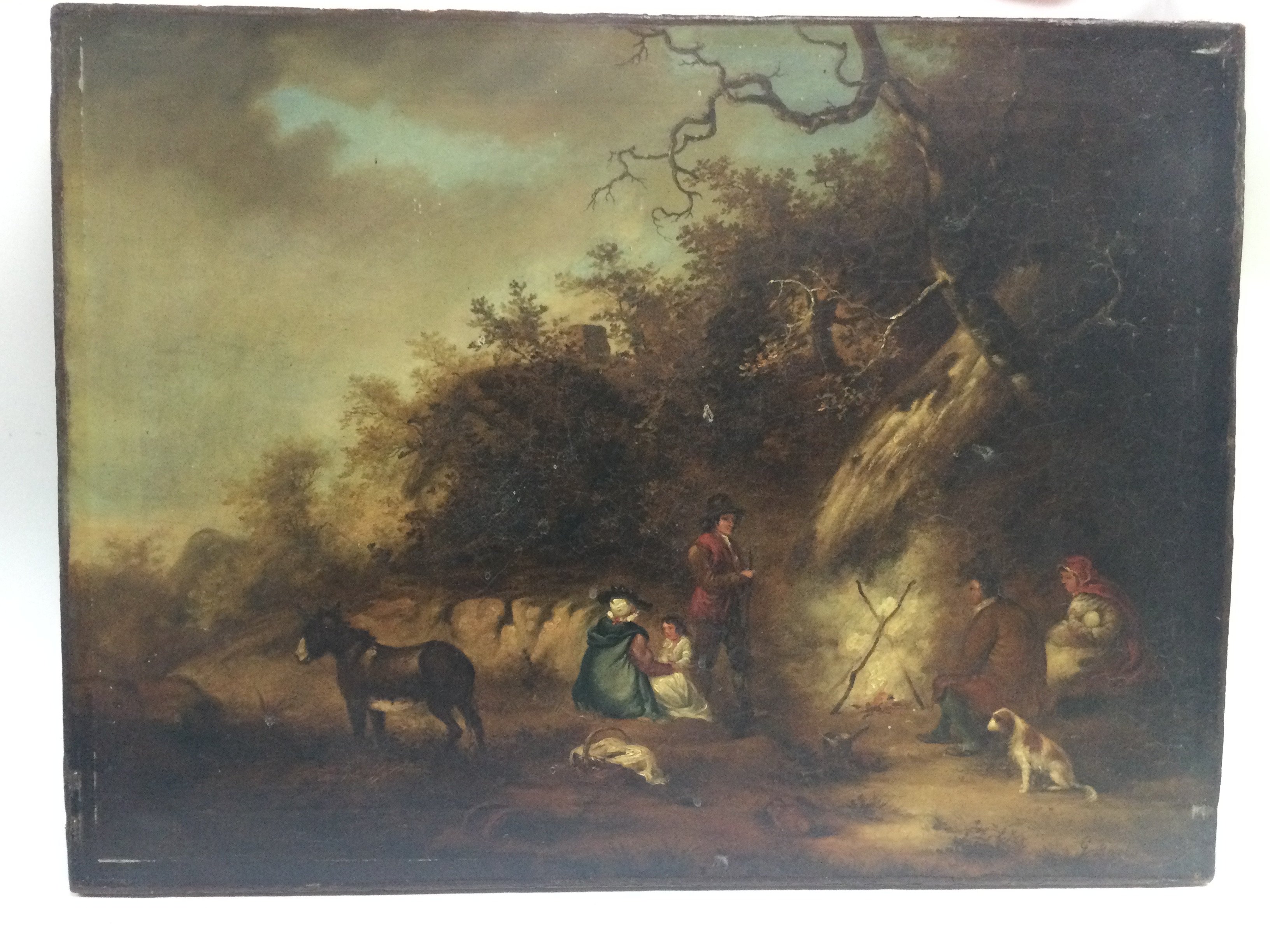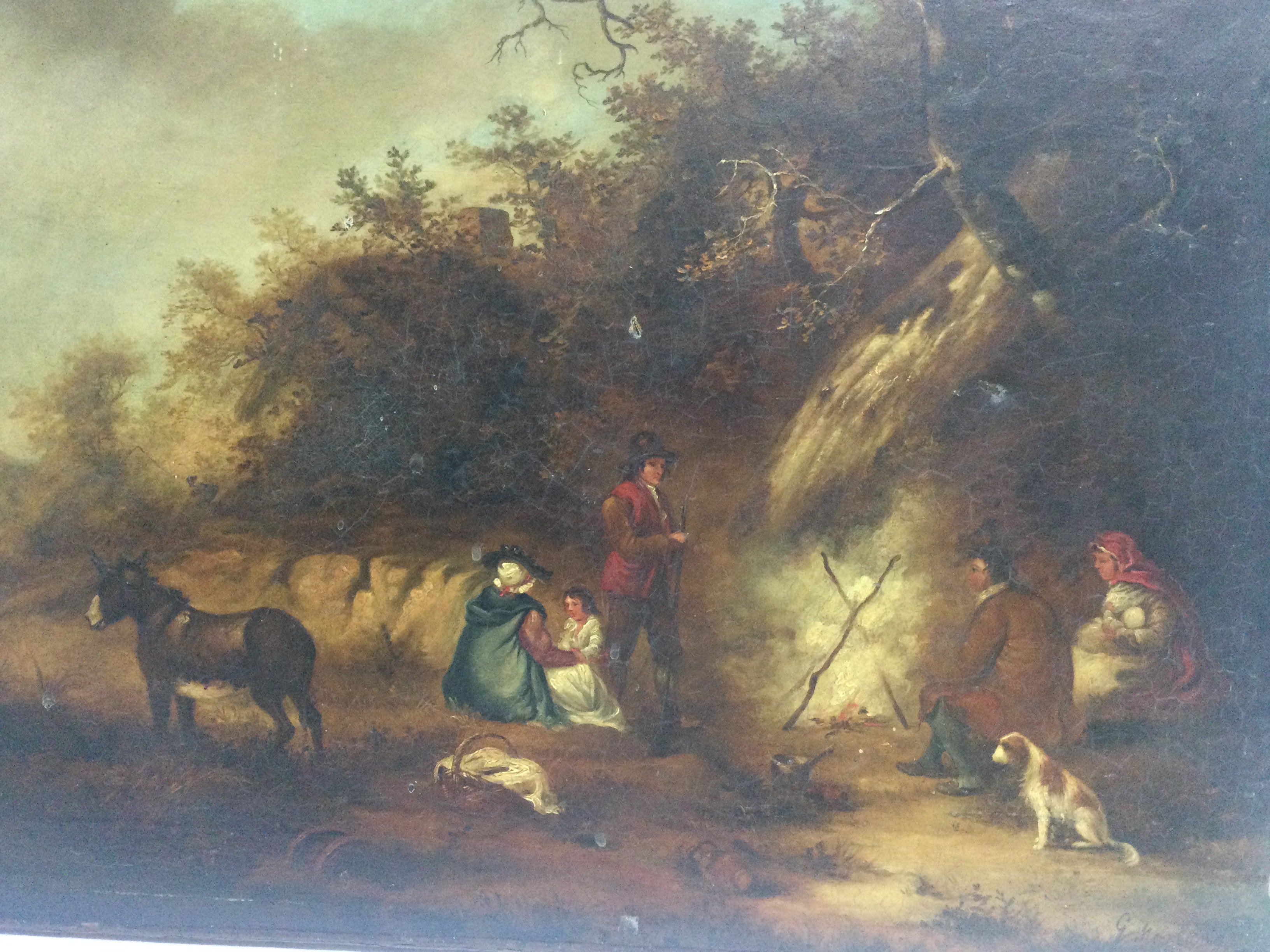 G.Moreland (1763-1804) Oil on canvas depicting a woodland camp scene , dimensions approximately 60x46cm. This lot cannot be posted