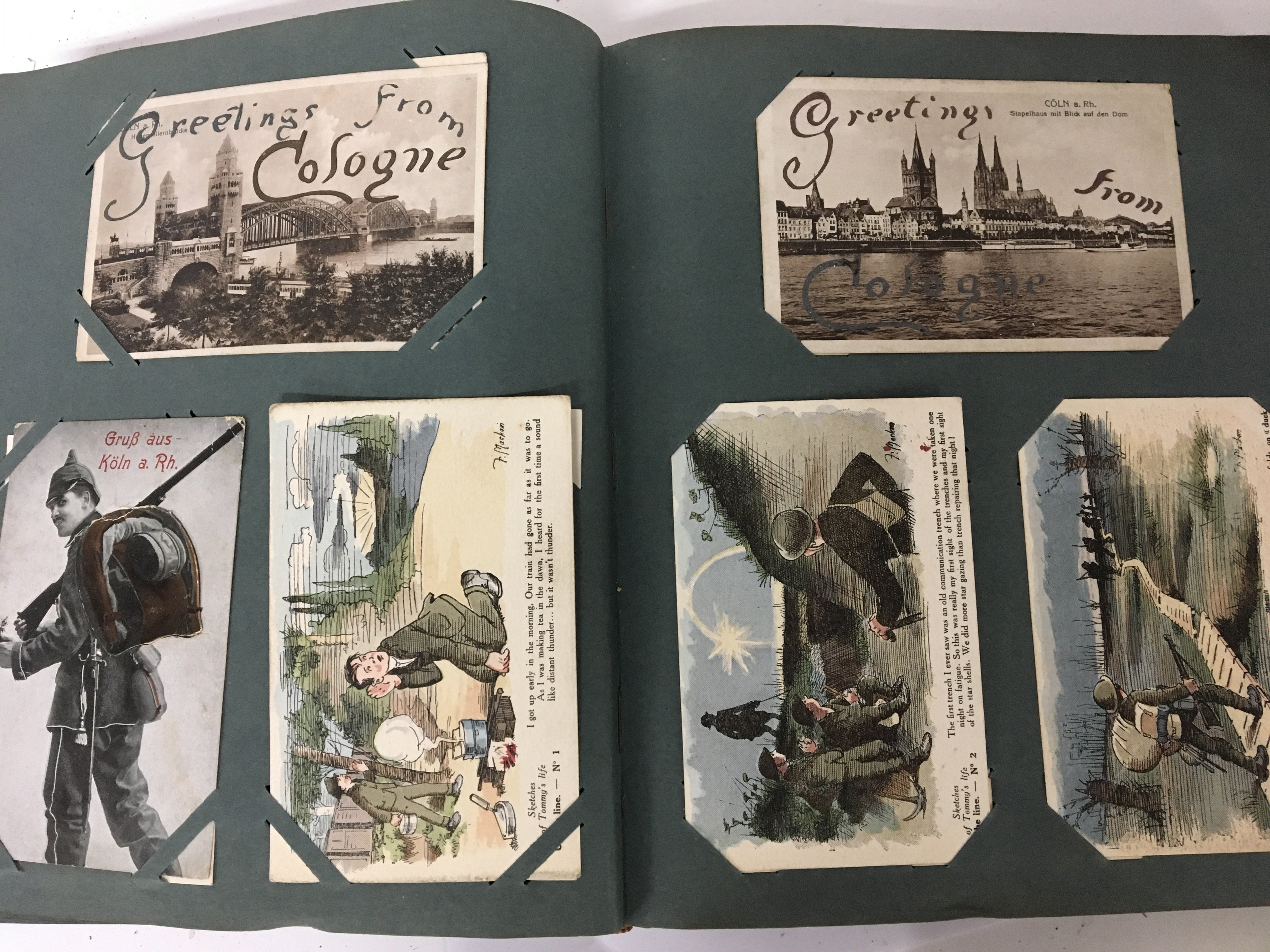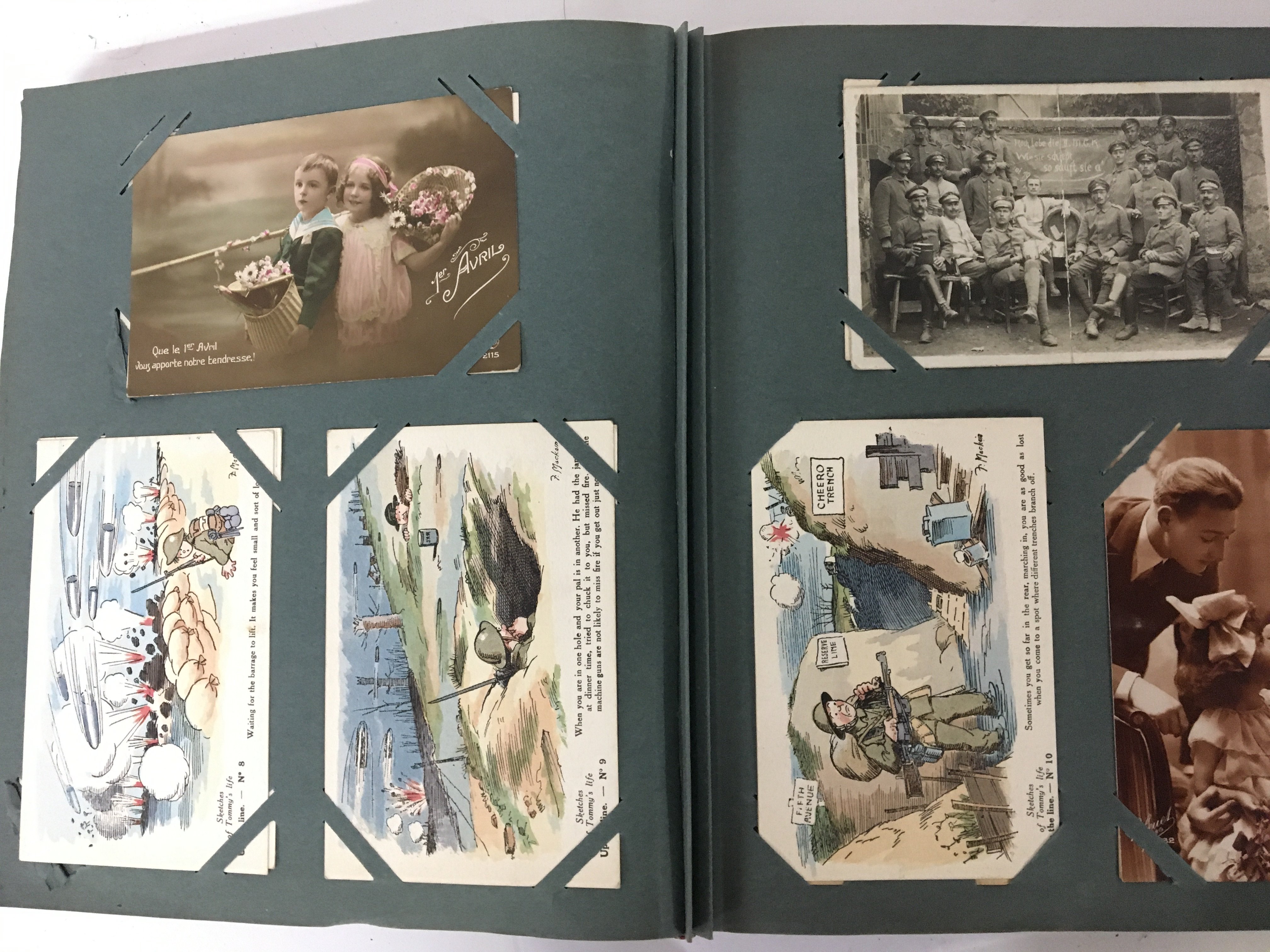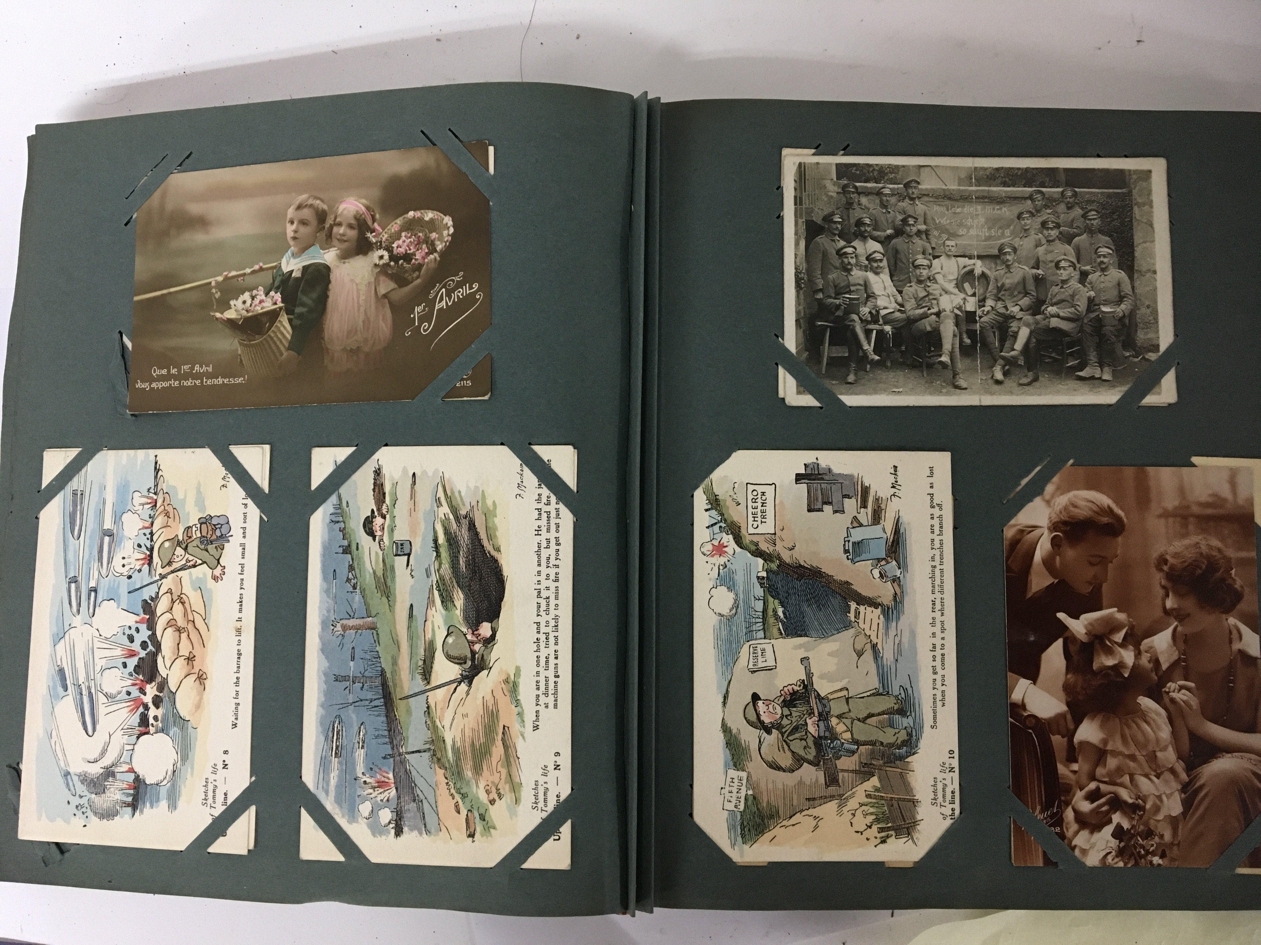 An album containing a good selection of late 19th and early 20th century postcards including Military cards. and others.
