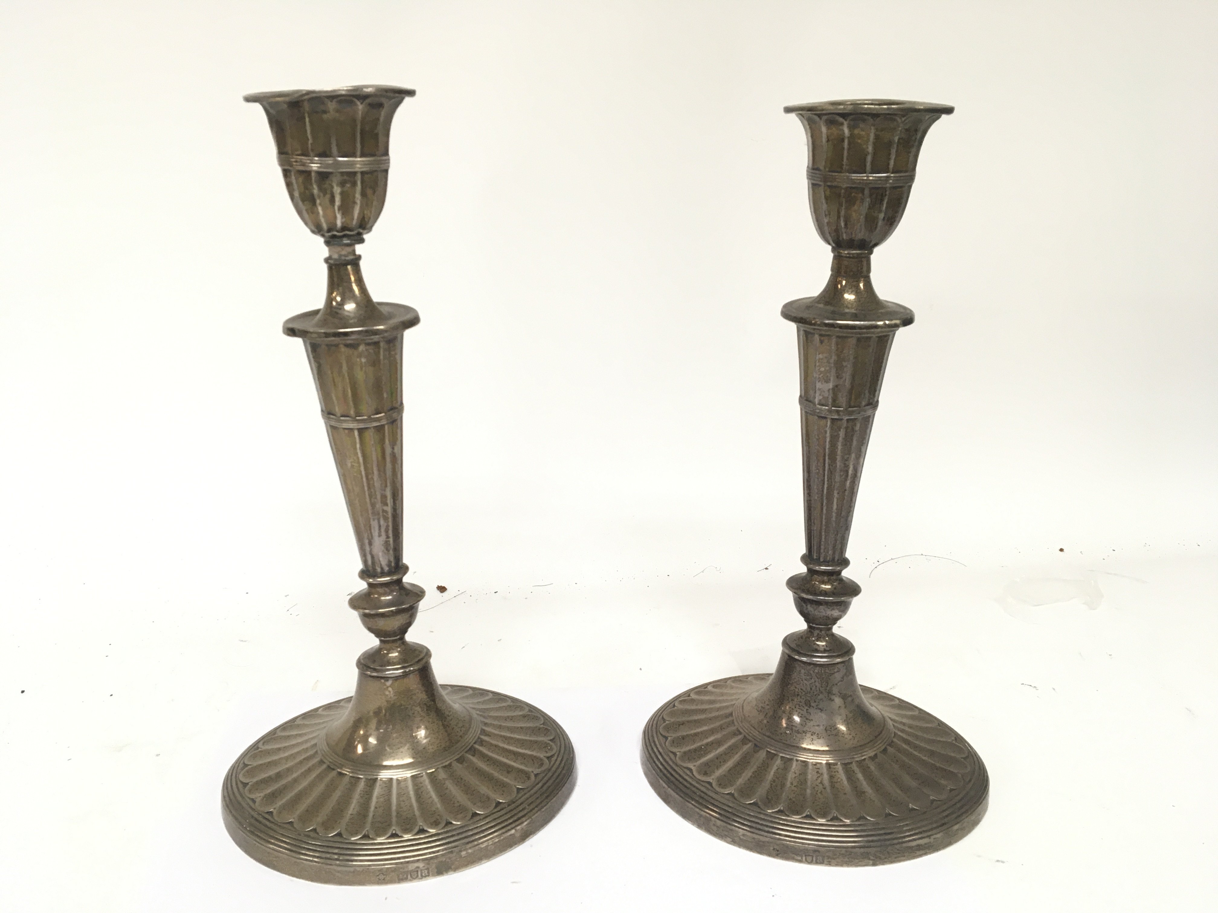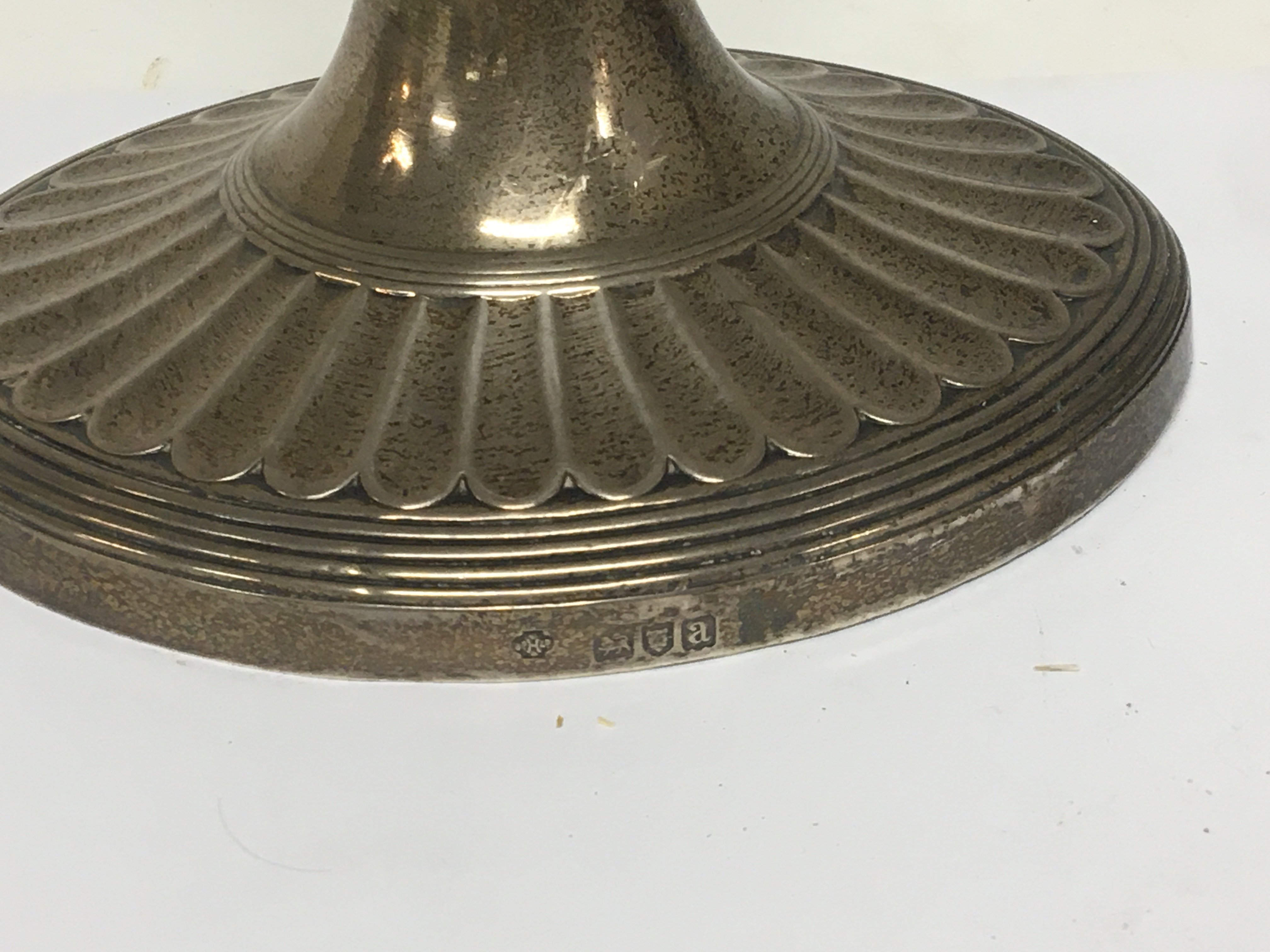 A pair of Neo classical design George III style silver candle sticks with oval loaded base London hallmarks.