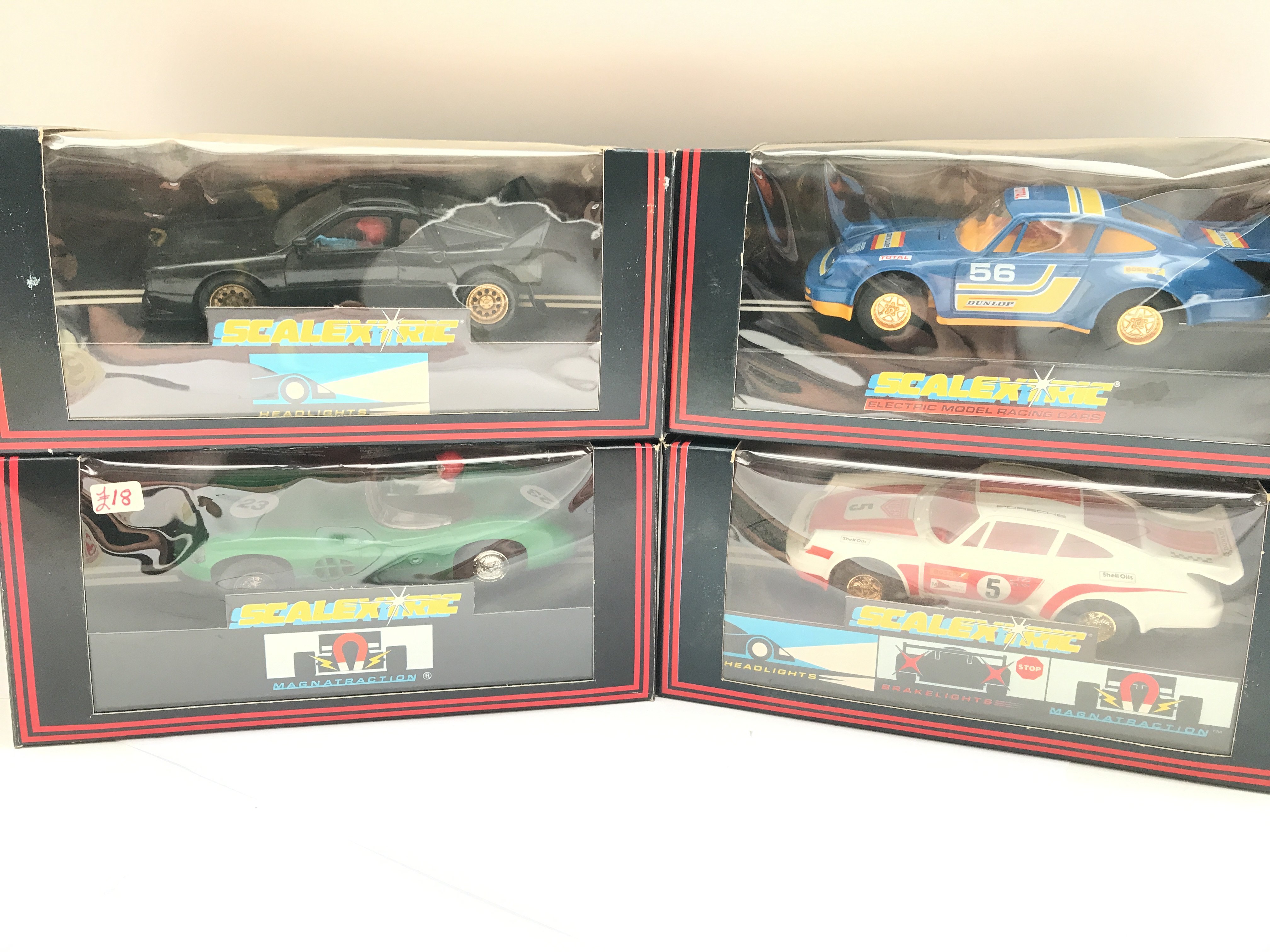 4 Boxed Scalextric Cars. Including a Martini Lancia.a Aston Martin.etc.