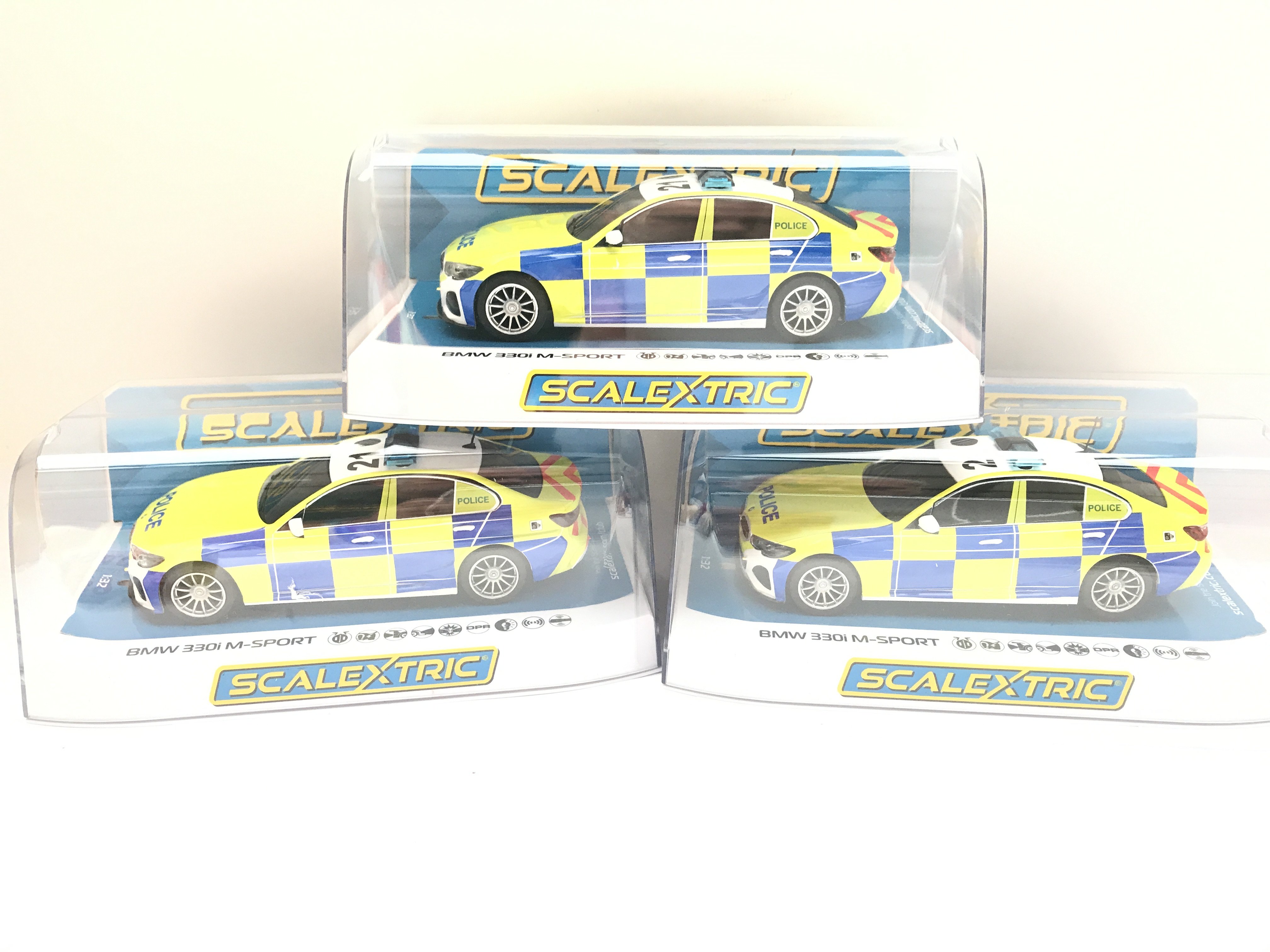 3 X Boxed Scalextric BMW 330i M-Sports Police Cars.