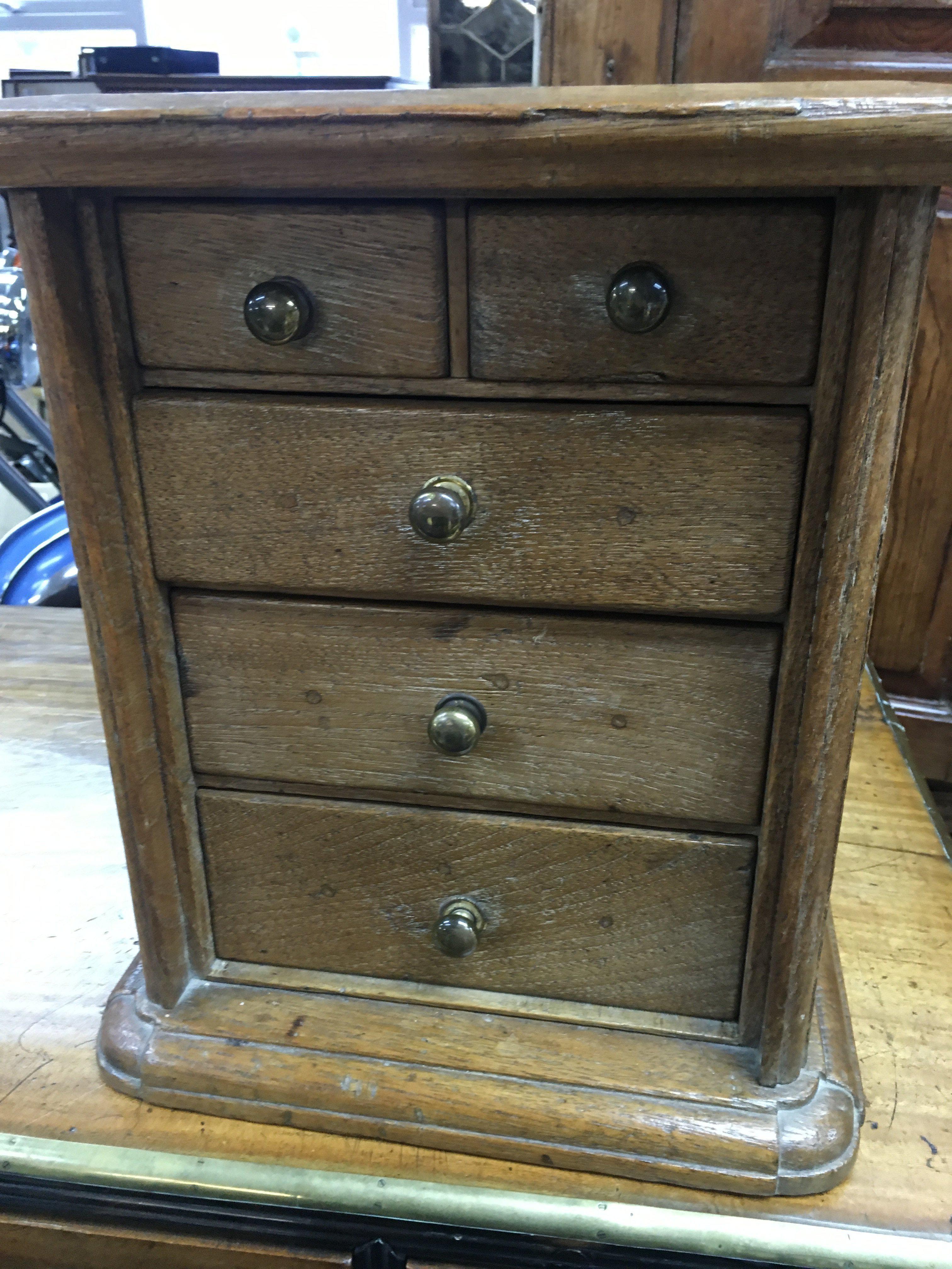 A small oak collector’s cabinet fitted with five drawers.