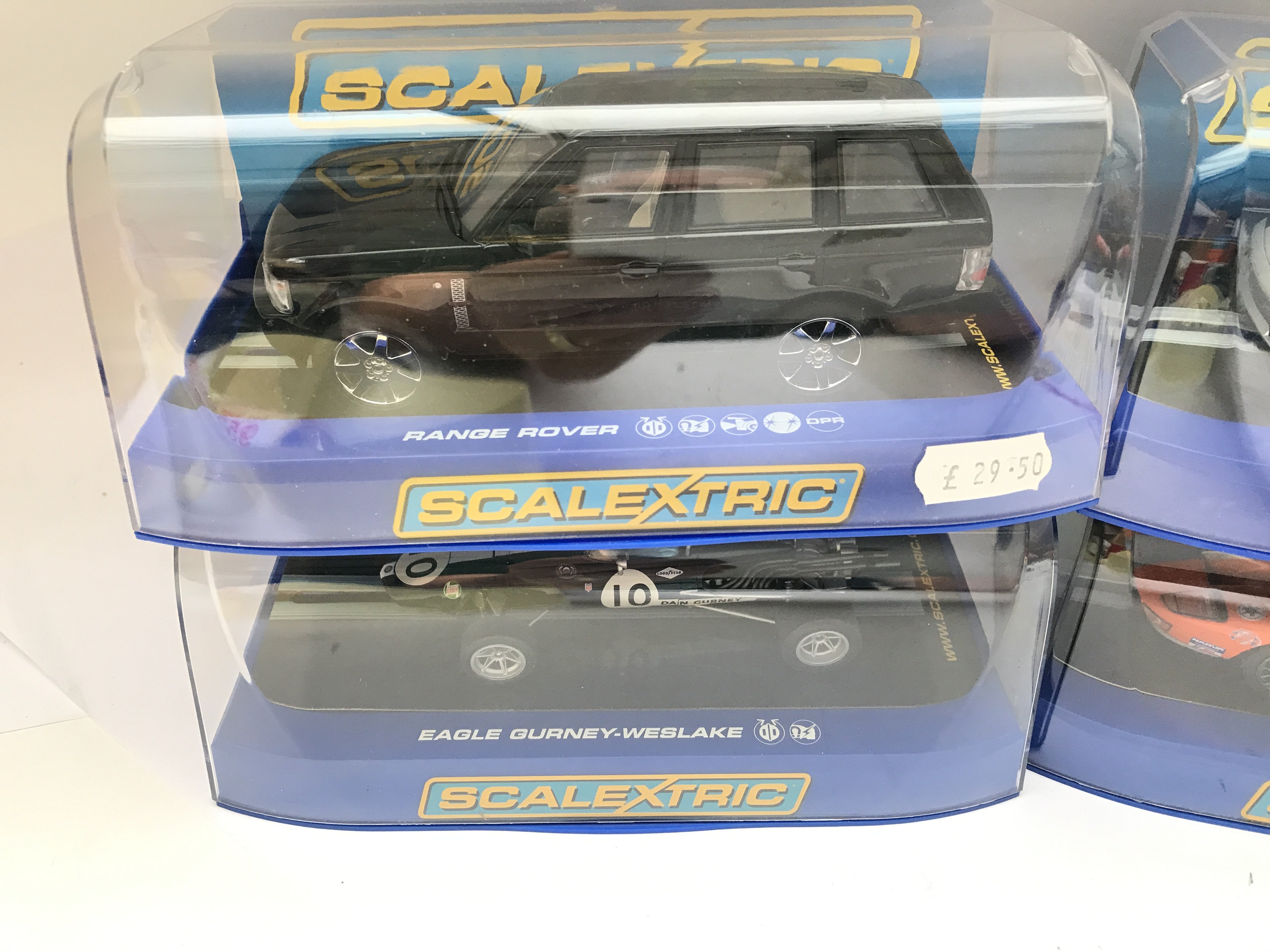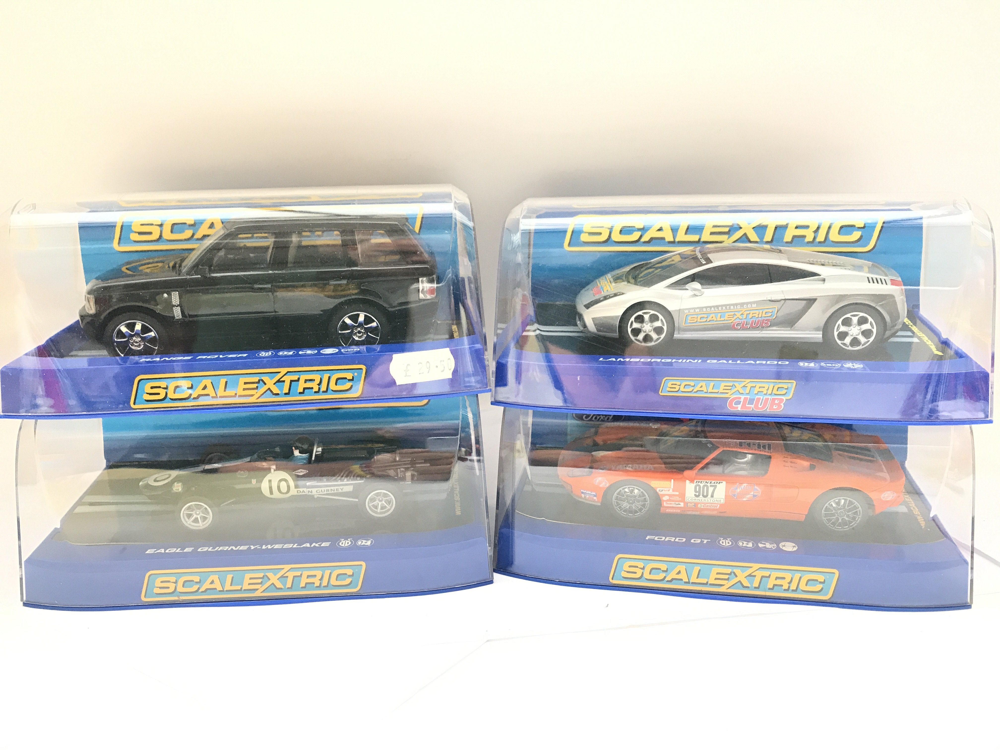 4 X Boxed Scalextric Vehicles. Including a Range Rover. A Lamborghini Gallardo.a Eagle Gurney-Weslake and a Ford GT.