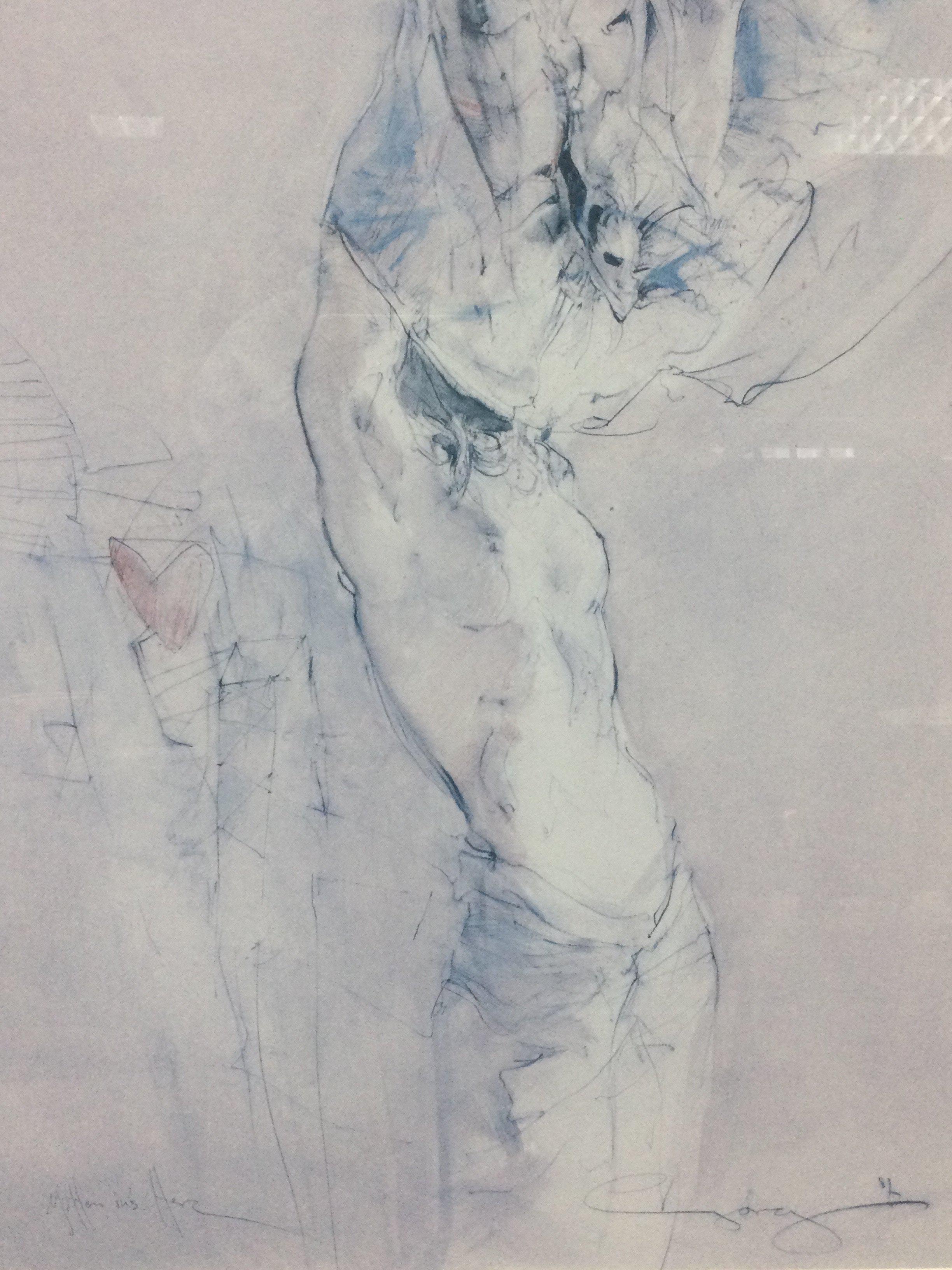 A Jurgen Gorg Framed Lithograph titled Mitten ins Herz ( frame dimensions 77x90cm) and a framed contemporary still life painting