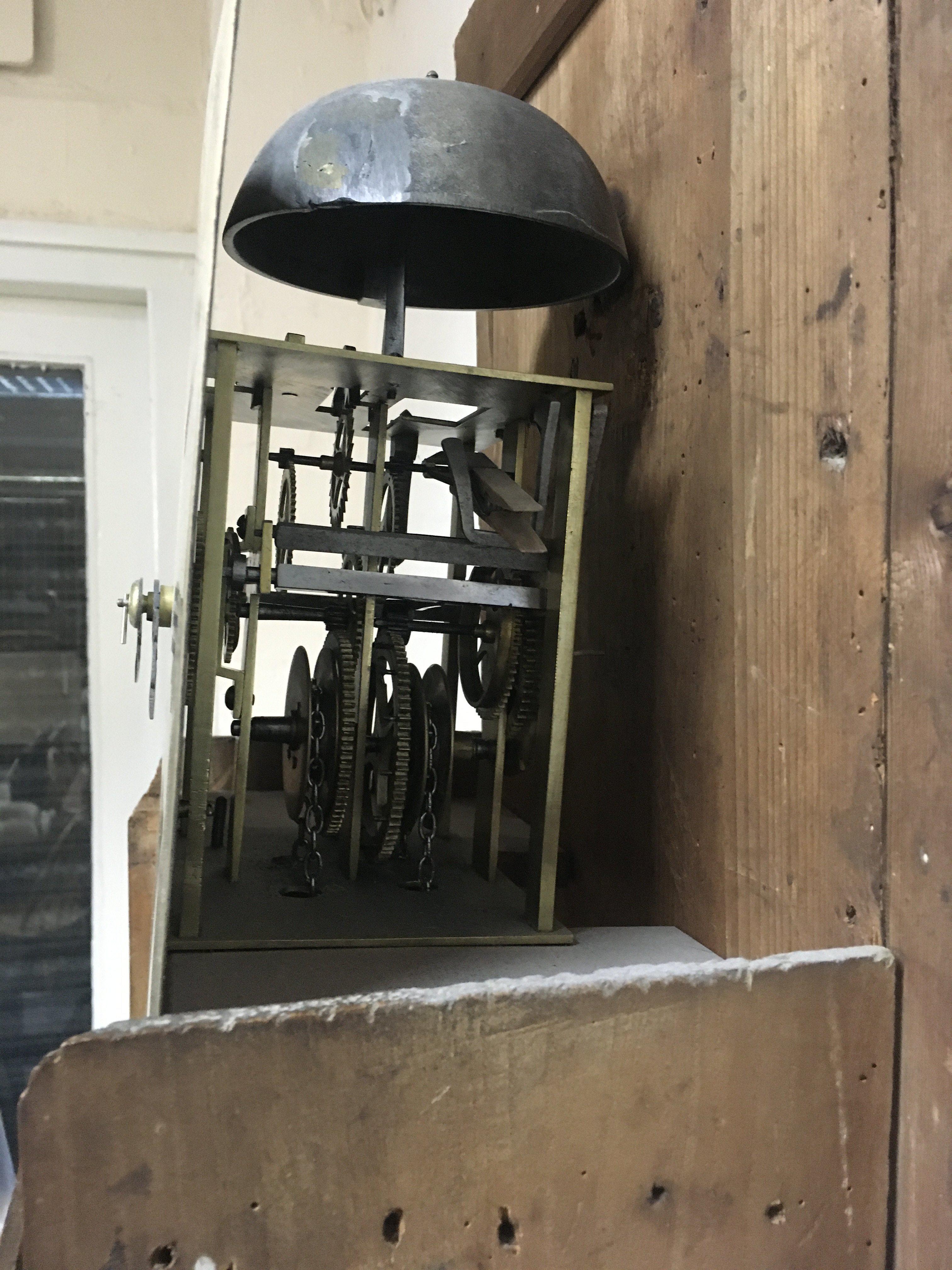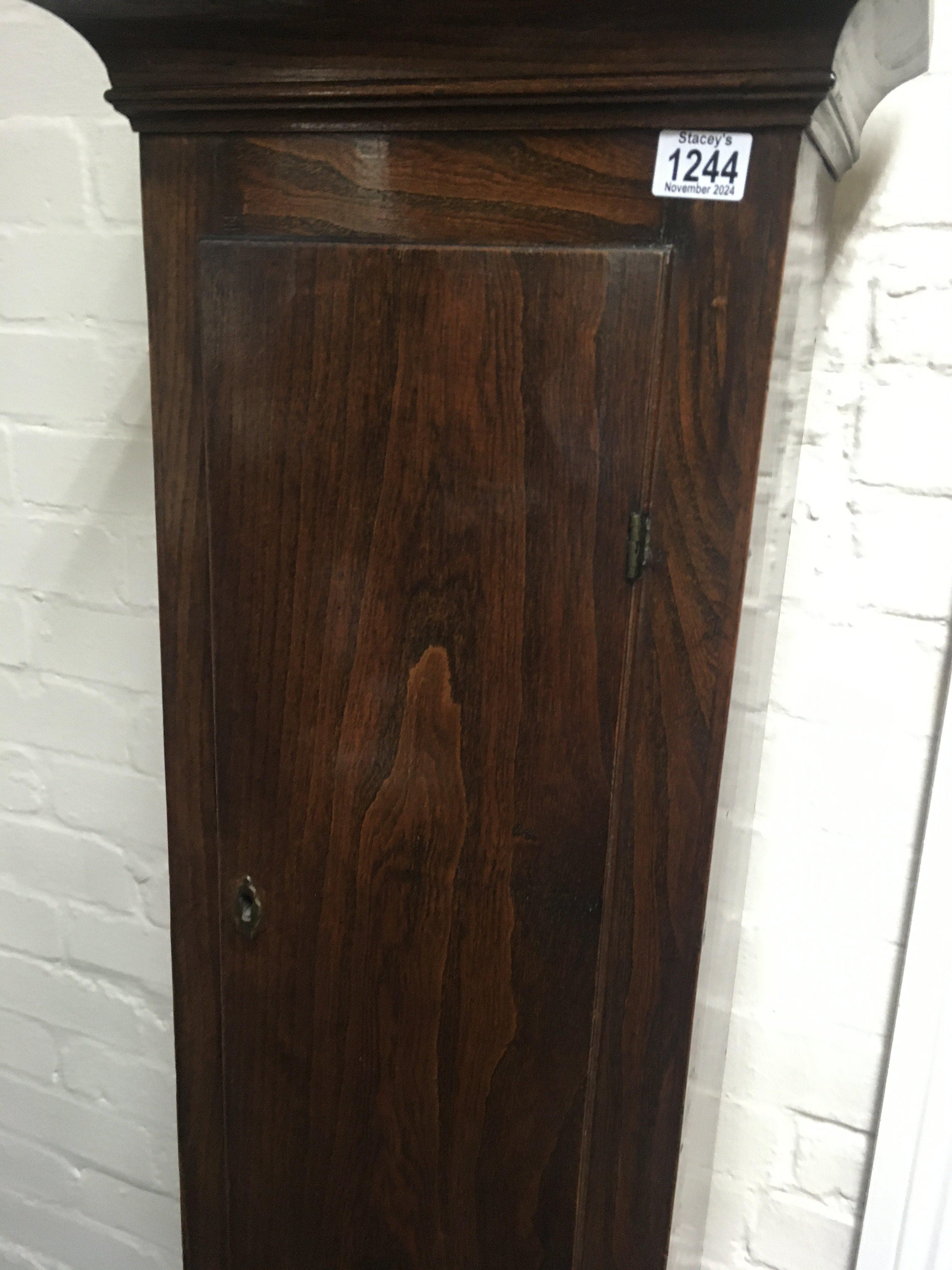 A oak 30 hour long oak long case clock the square dial with Roman numerals maker Thomas Harris .