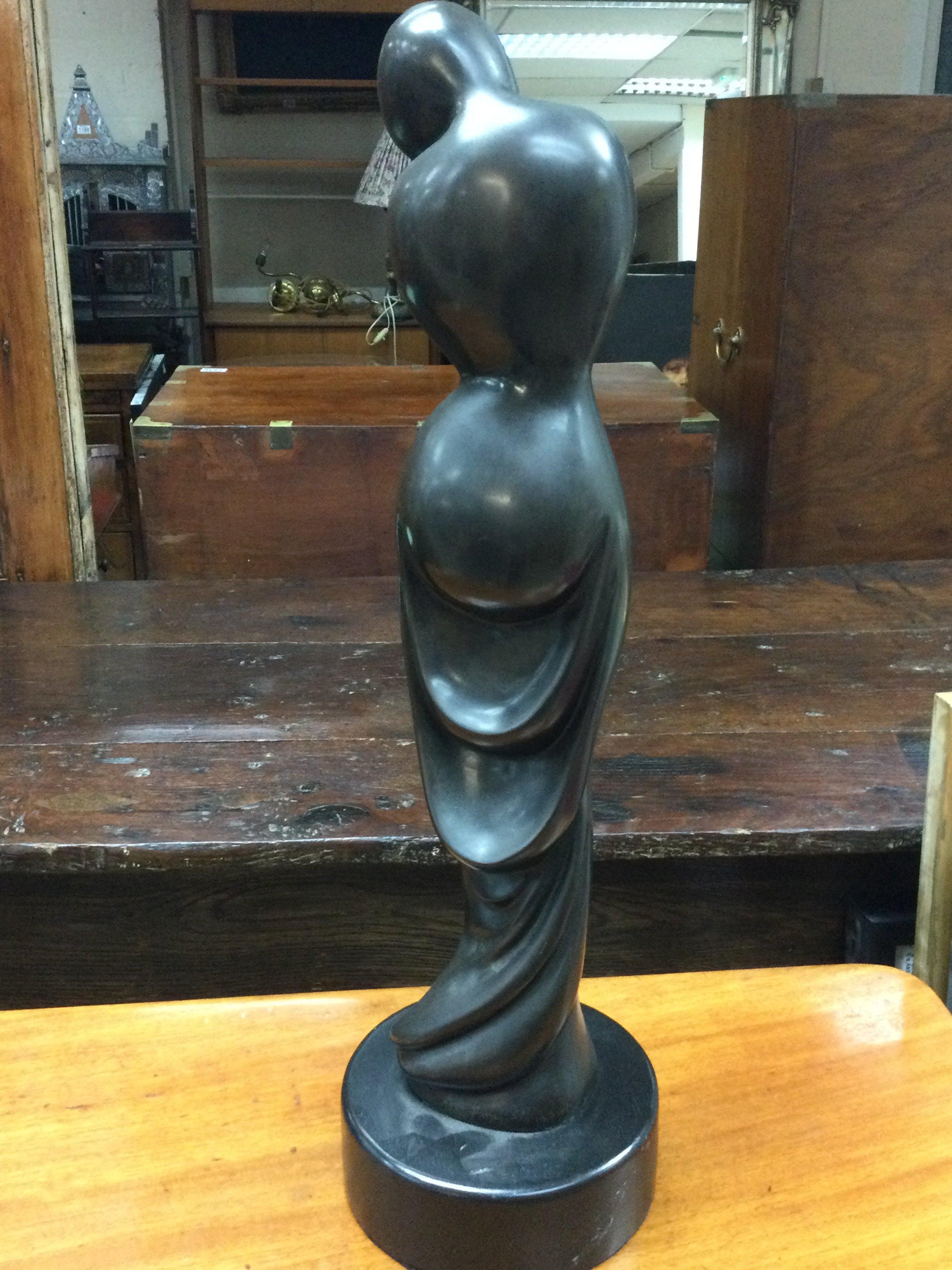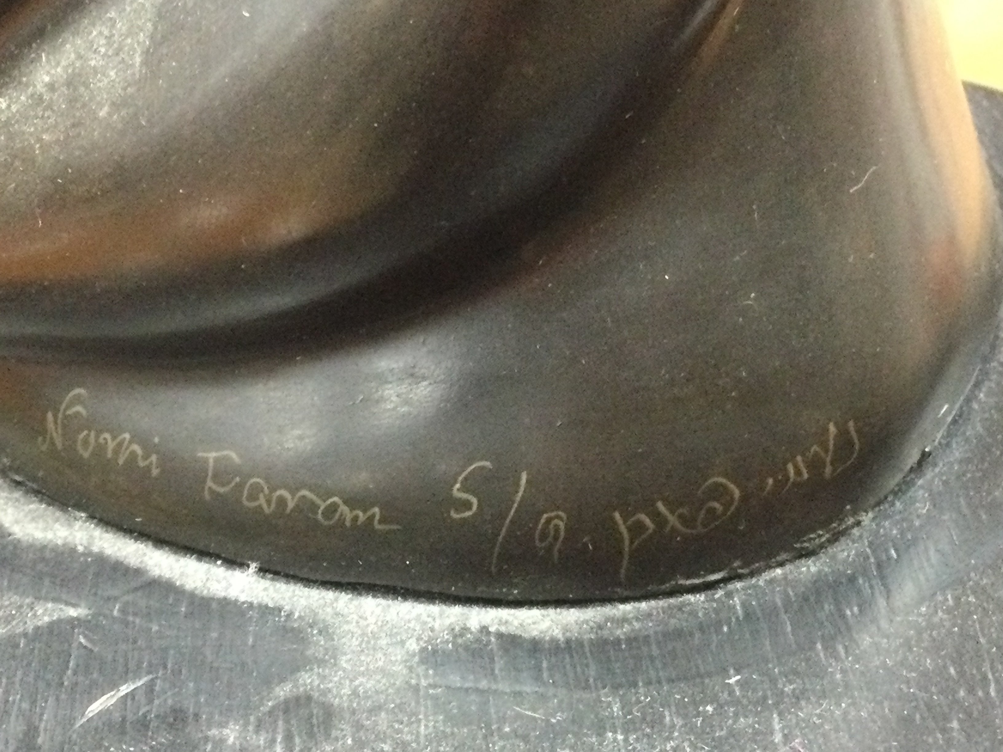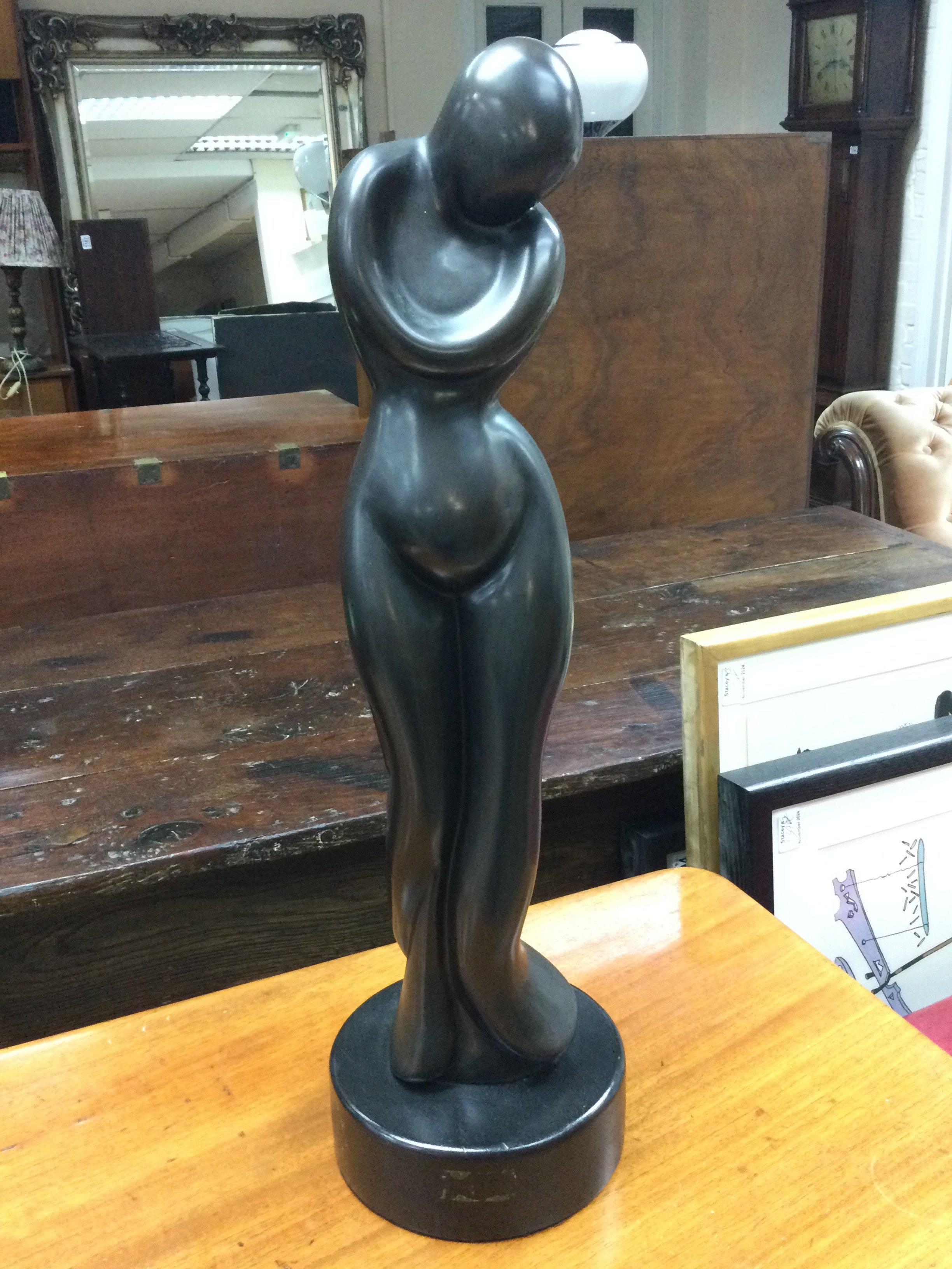 A limited edition modern bronze of a female form on a circular marble base indistinctly signed , 62cm tall. This lot cannot be posted