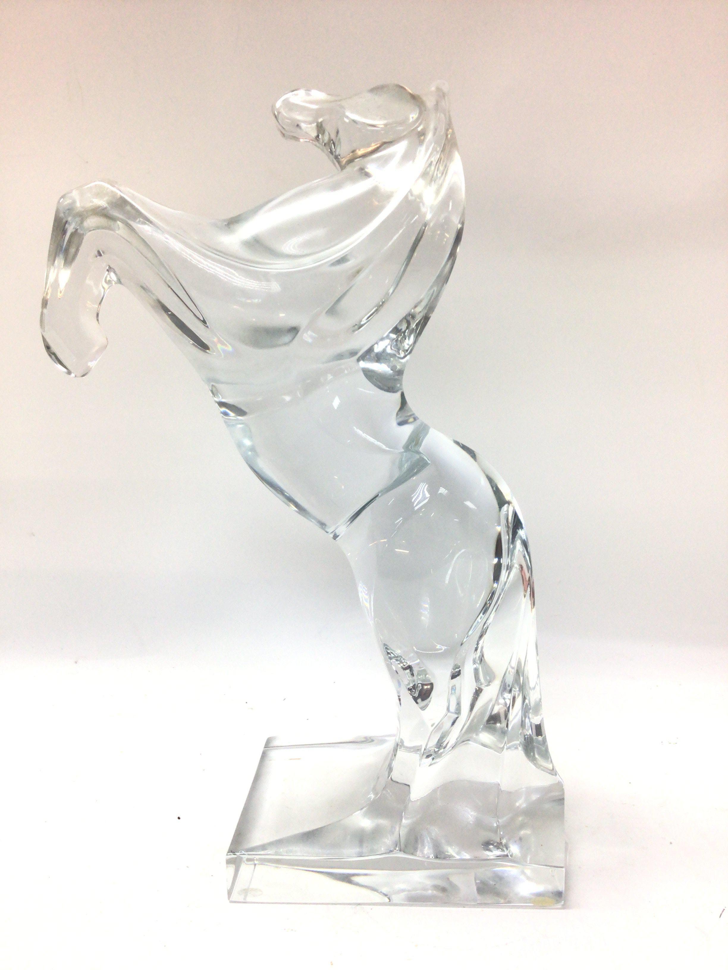 A Daum France translucent moulded glass Prancing Horse figure , 32cm tall approximately. No obvious damage or restoration. This lot cannot be posted
