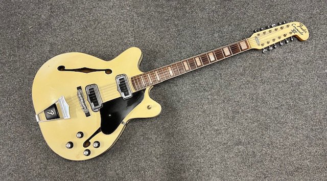 A 1967 Fender Coronado XII twelve string electric guitar in Olympic White with binding. All original parts and original pick guard. Good condition overall with some play-wear and marking to paintwork. No case