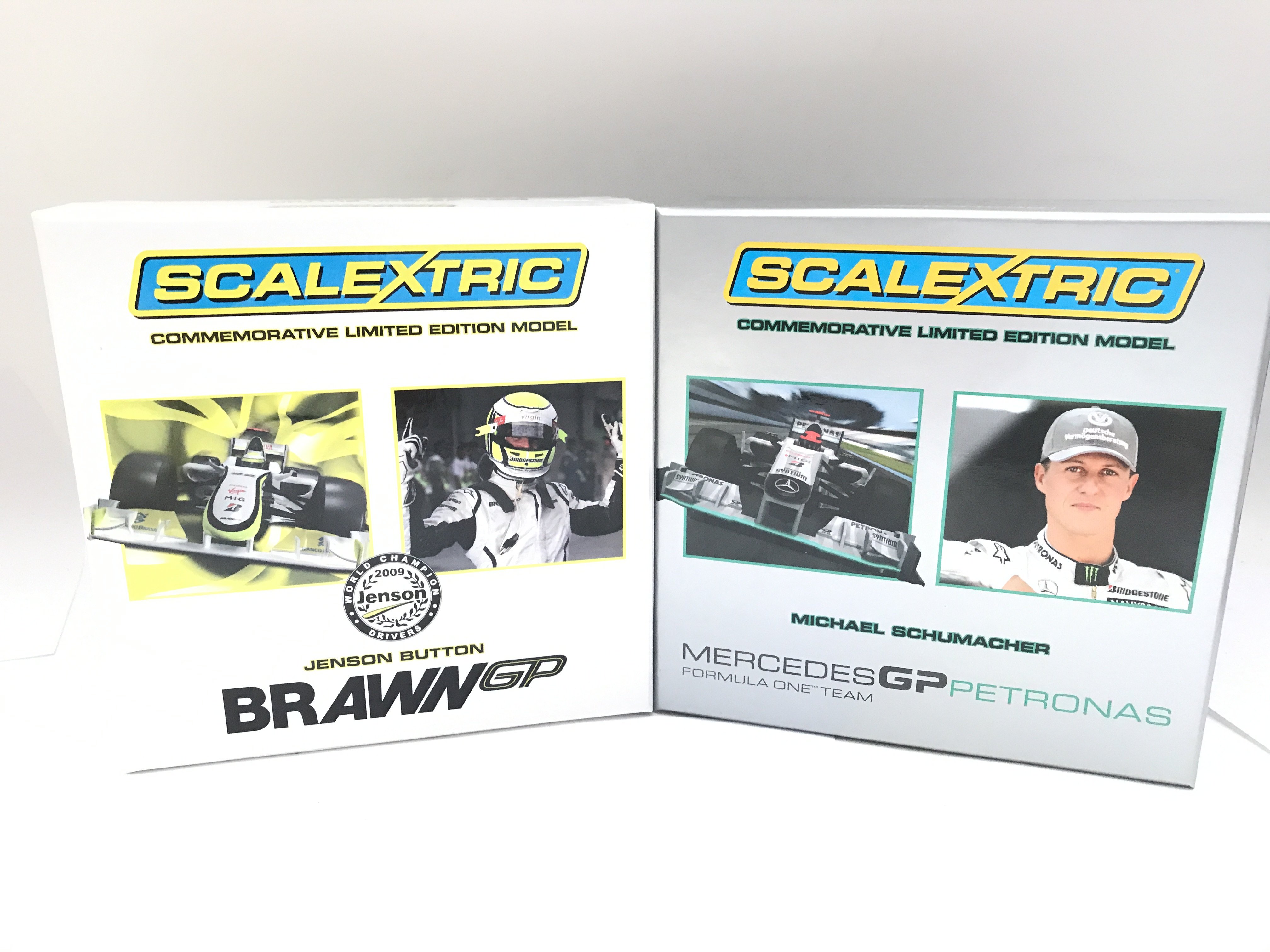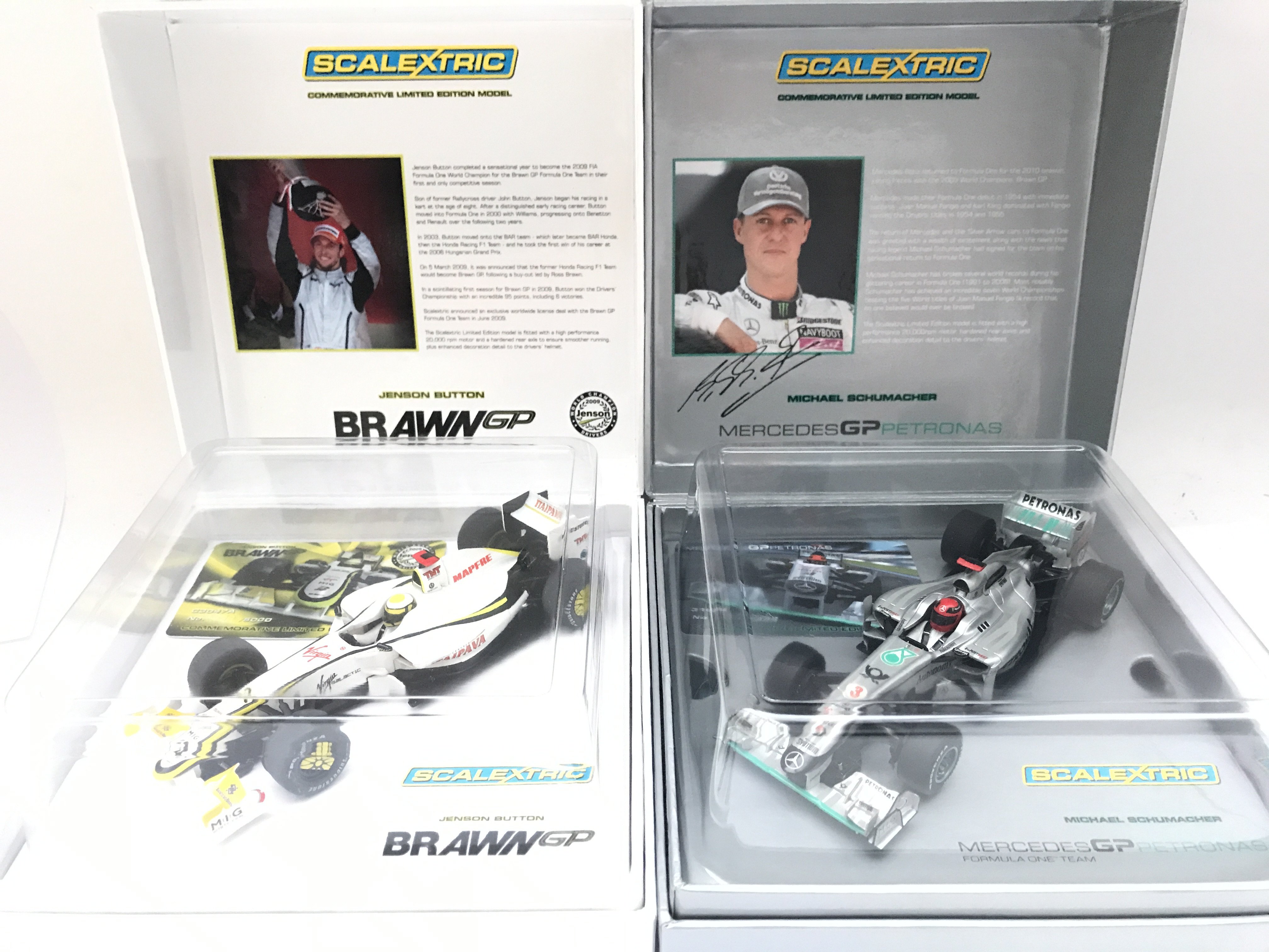 2 X Boxed Scalextric Commemorative Limited Editions. Michael Schumacher and Jenson Button.