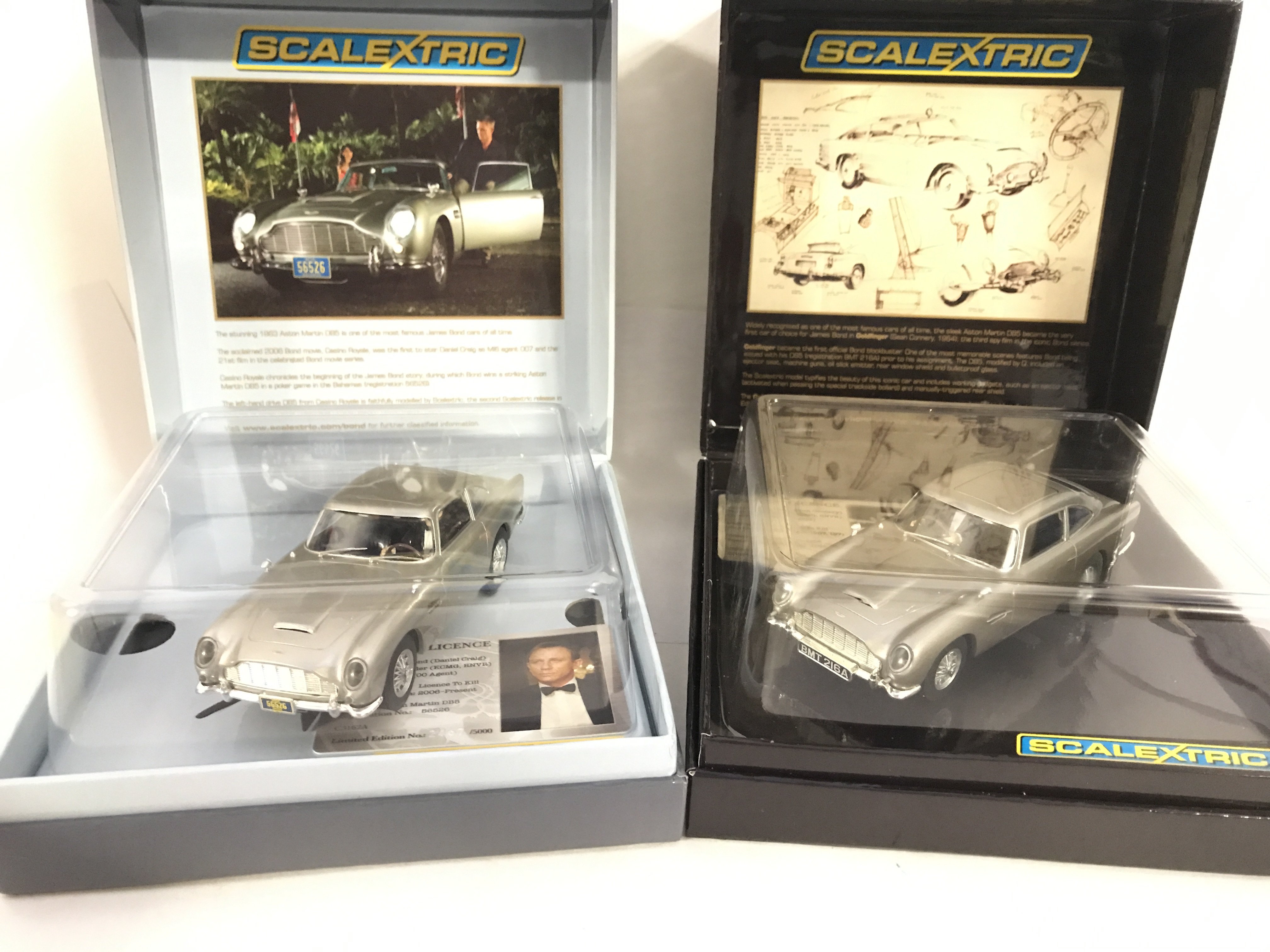 2 Boxed Scalextric James Bond Cars. Both Aston Martins D.B.5s from Casino Royal and Goldfinger.