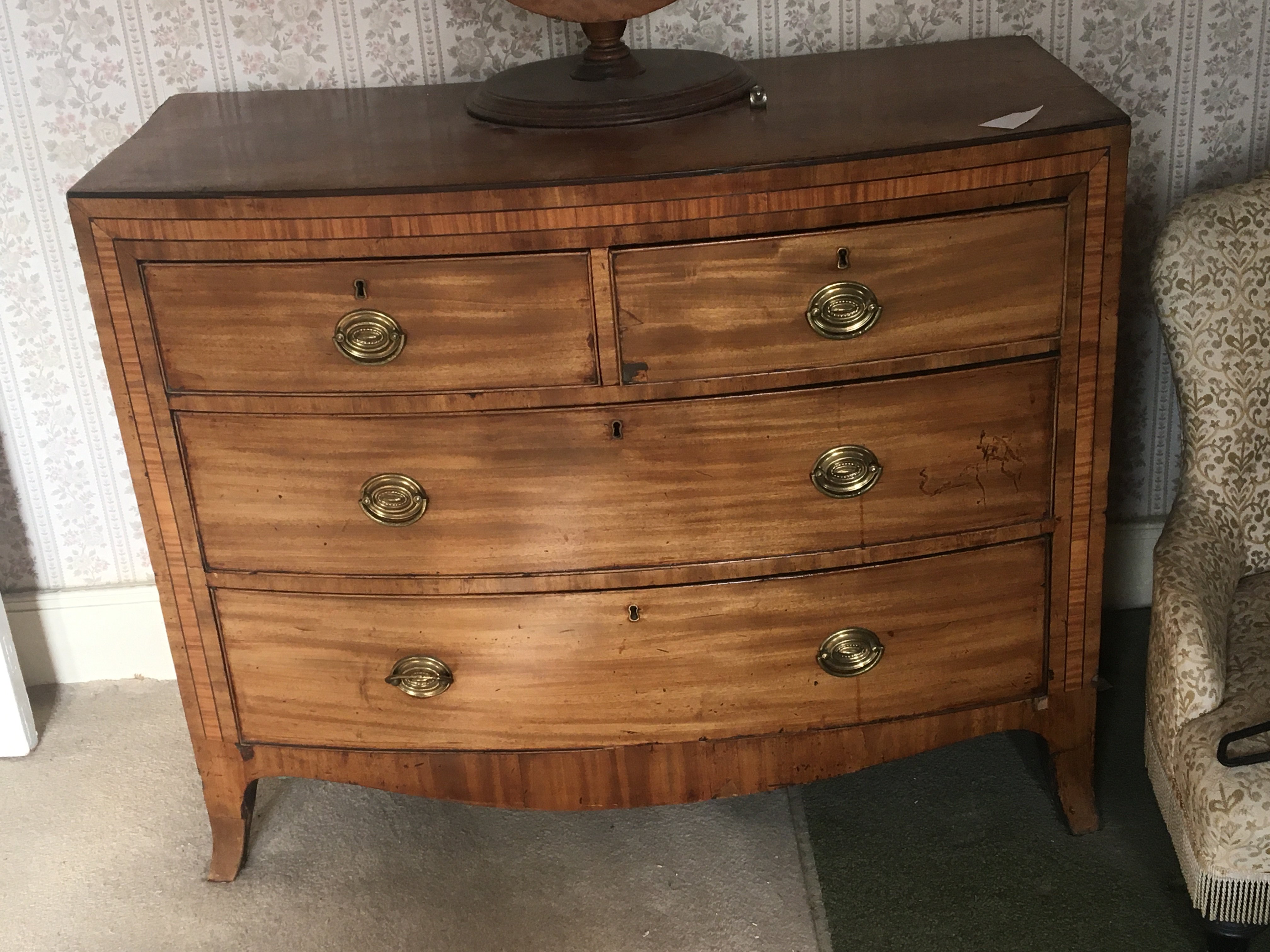 A late George III chest of drawers fitted with two short and two long drawers with satinwood banding and bracket feet. 107x52cm