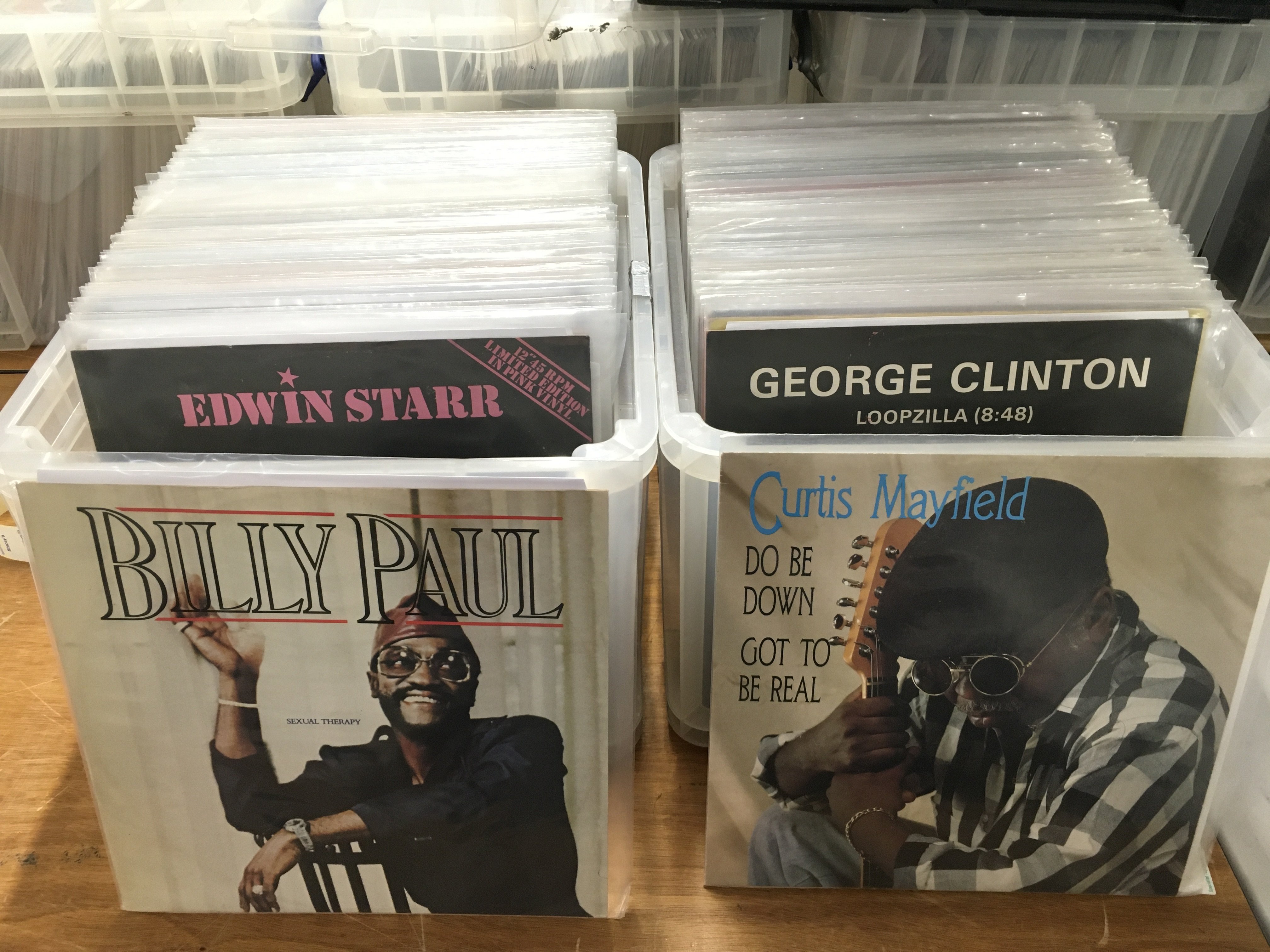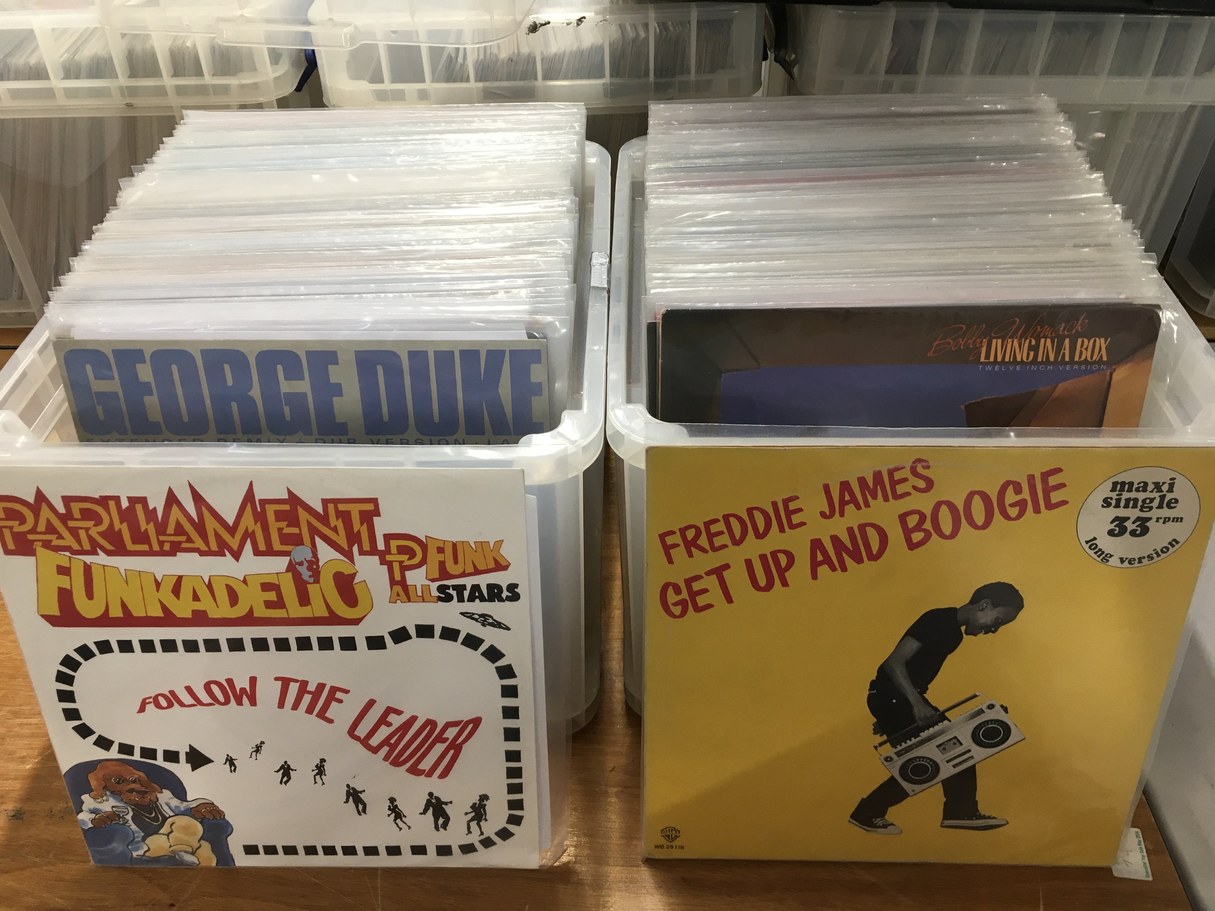 Two boxes of soul, funk and disco 12" singles by various artists including Funkadelic, George Duke, Bobby Womack and many more.