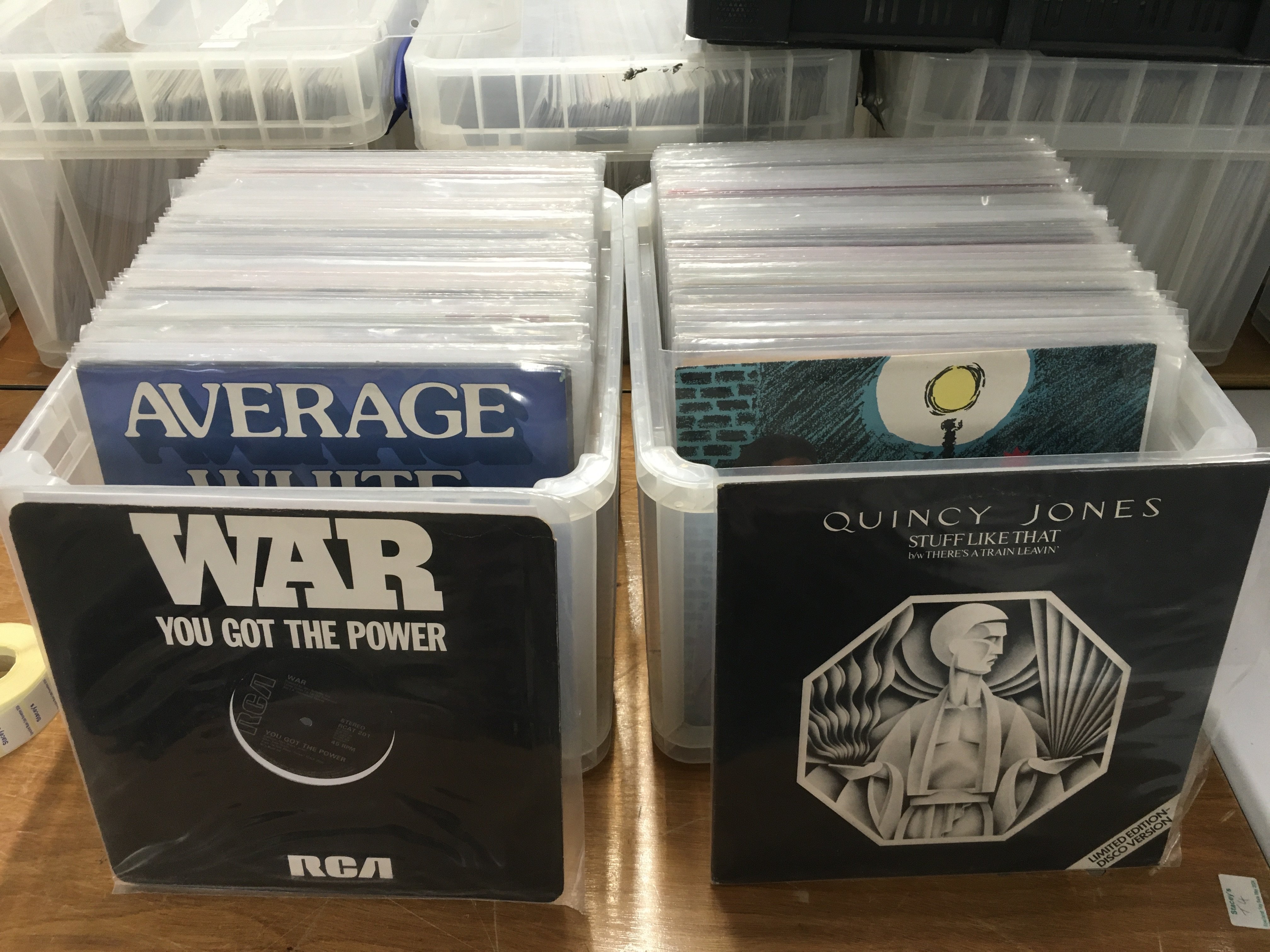 Two boxes of soul, funk and disco 12" singles by various artists including George Clinton, Johnny Guitar Watson, George Benson and many more.