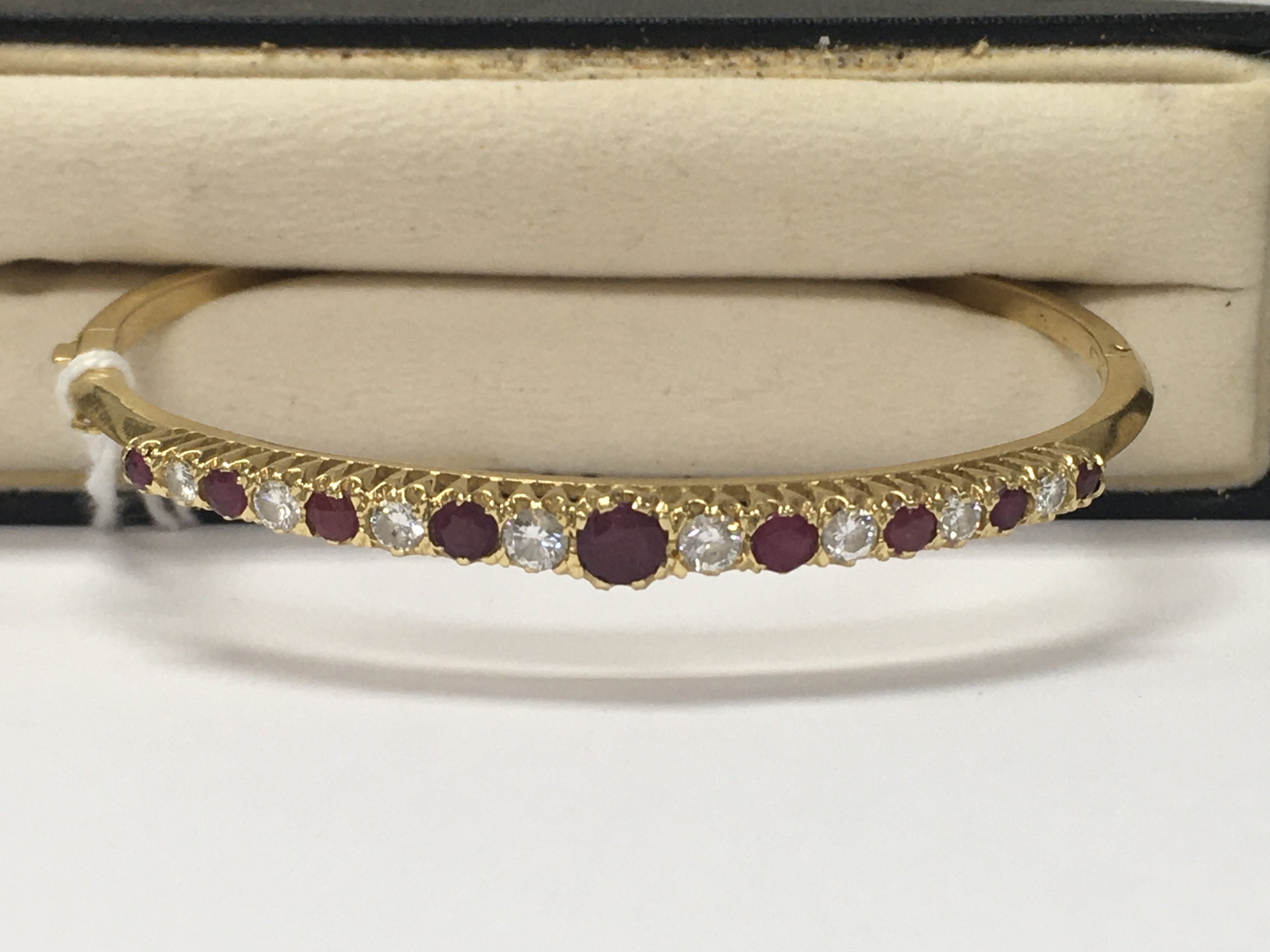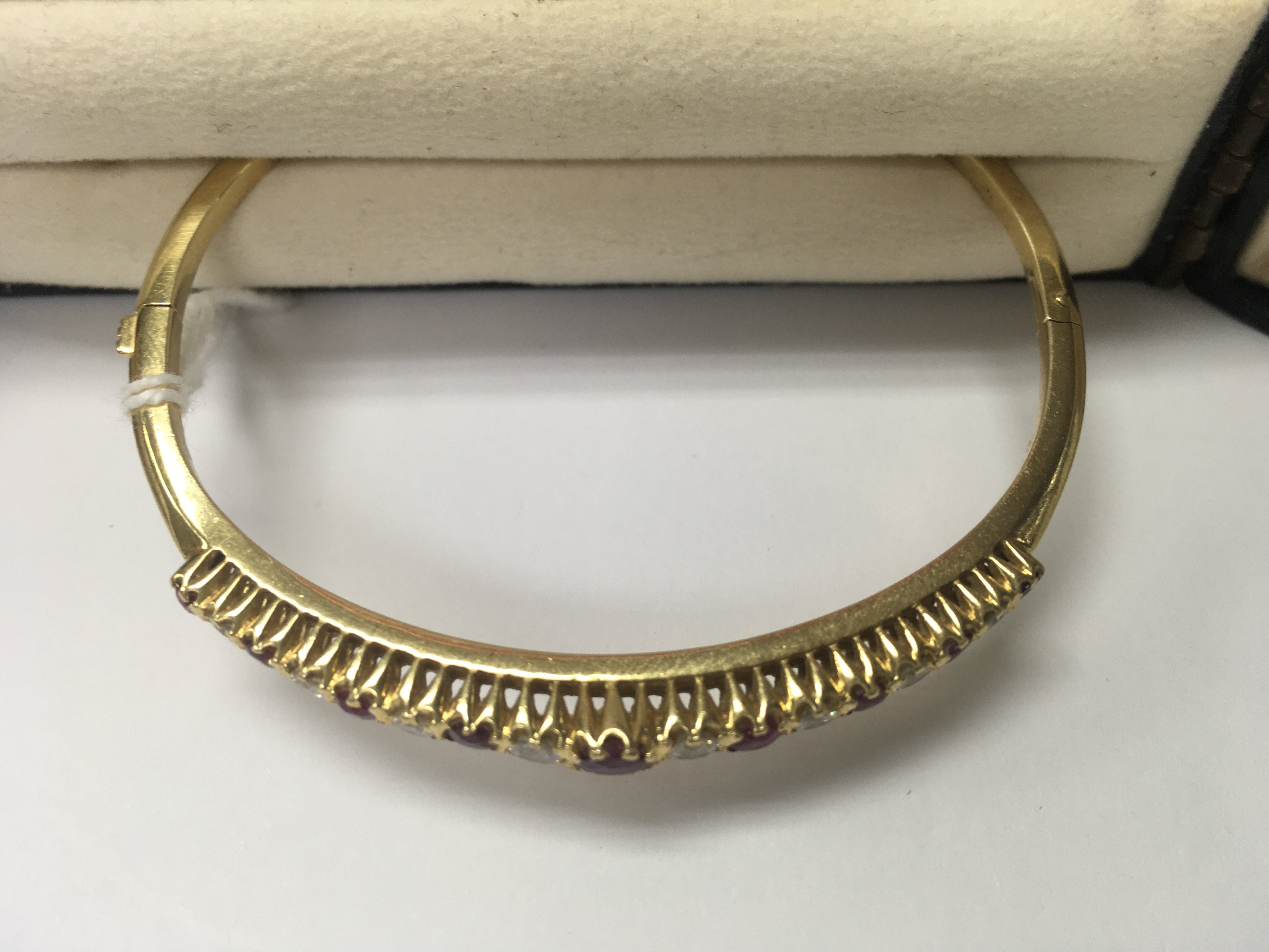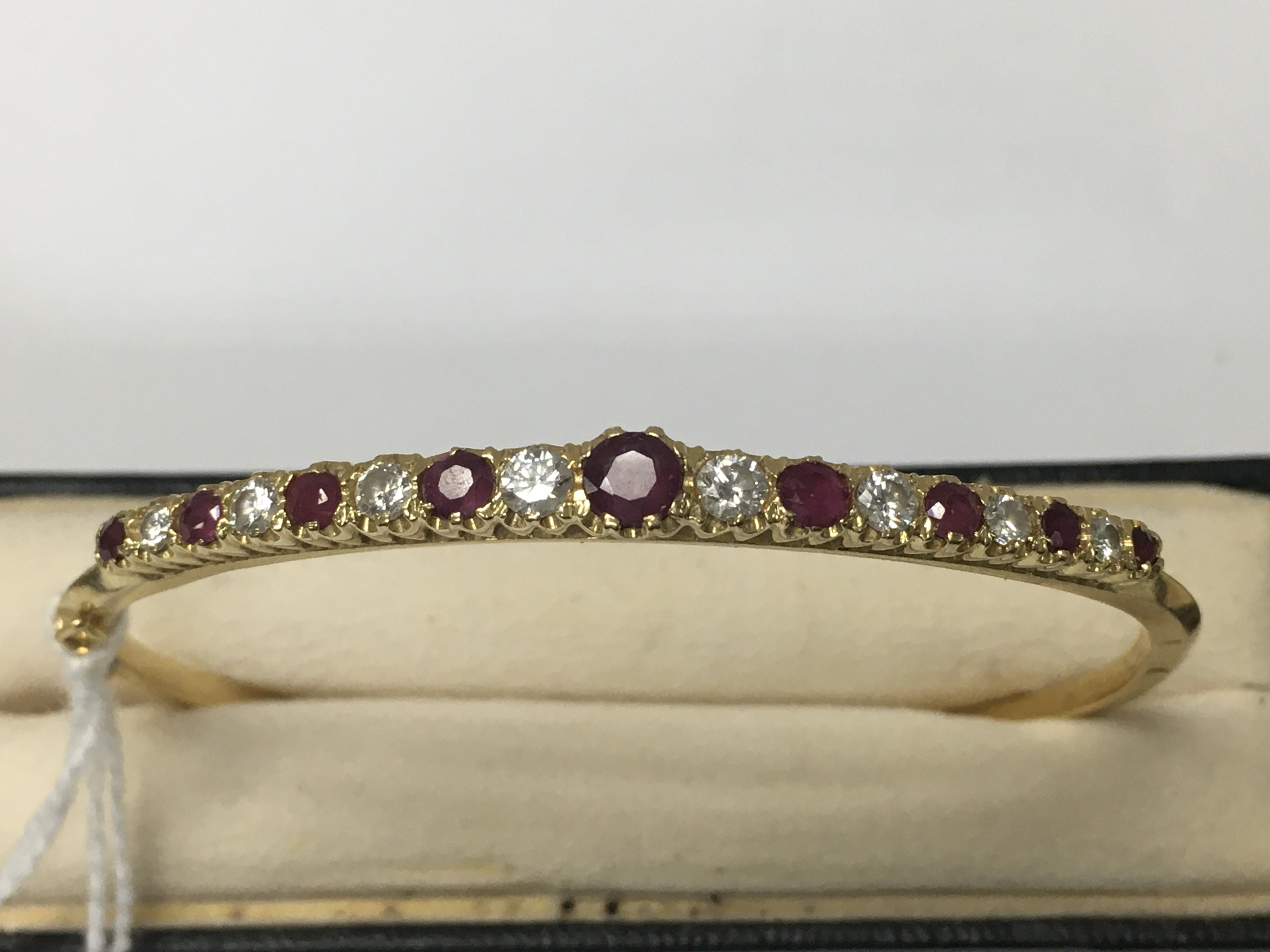 A 18 ct bracelet inset with ruby and diamond total weight 15.48 grams fitted in original box .